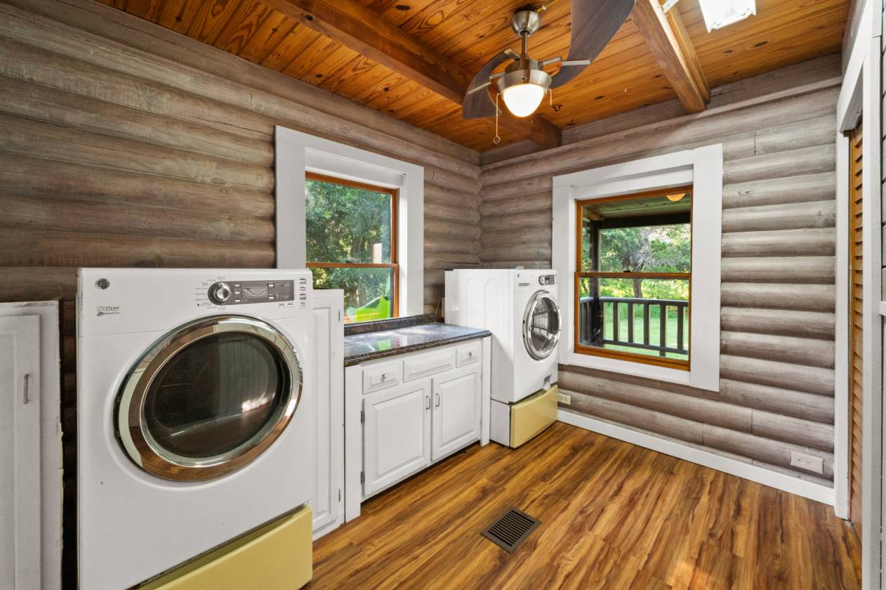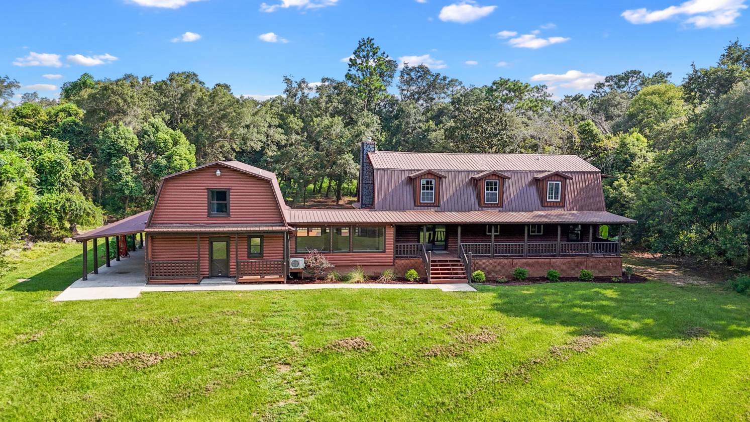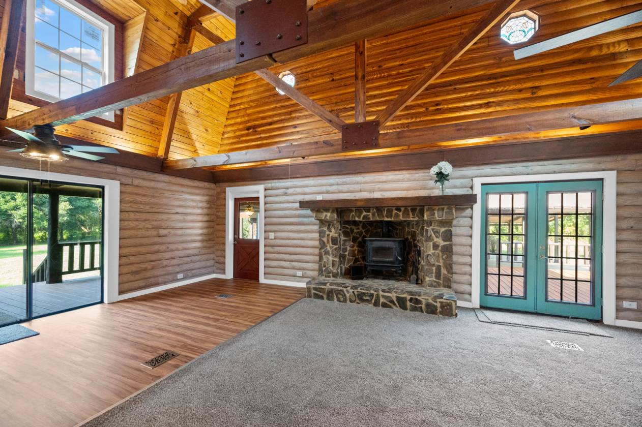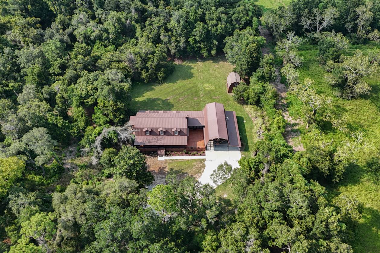 Price Reduction. Invite everyone over to this Gulf Coast Log Cabin home that is minutes from area beaches, boat launches, and great schools. With acreage to play on, 1700' square feet of decks and 1500 sq' of covered parking for your toys. Home is built like a fortress with real logs and massive wooden beams throughout that support an open floor plan with huge wooden trusses that support 20' tongue and groove ceilings. Home has almost 400' of sought after US 98 road frontage and sits 500' down a new asphalt/rock private drive lined with beautiful live oaks. Features: 2017 metal roof, new paint inside and out, new flooring, 3 new mini spits, new landscaping/irrigation, attached mother-in-law suite/income, 19' x 21' sunroom/rec., huge flagstone fireplace, 2 story shed with stairs, ...Also, options are available to reduce home to a 5 acre parcel or new owner can sell 1 of the 2 5ac parcels. New survey available. Owner recently spent 30k trimming oaks/tree work and clearing/mulching underbrush. Plenty of wildlife and future fun...The comps are excellent and the seller is ready. Reduced price! Buyer to verify all information during due diligence.