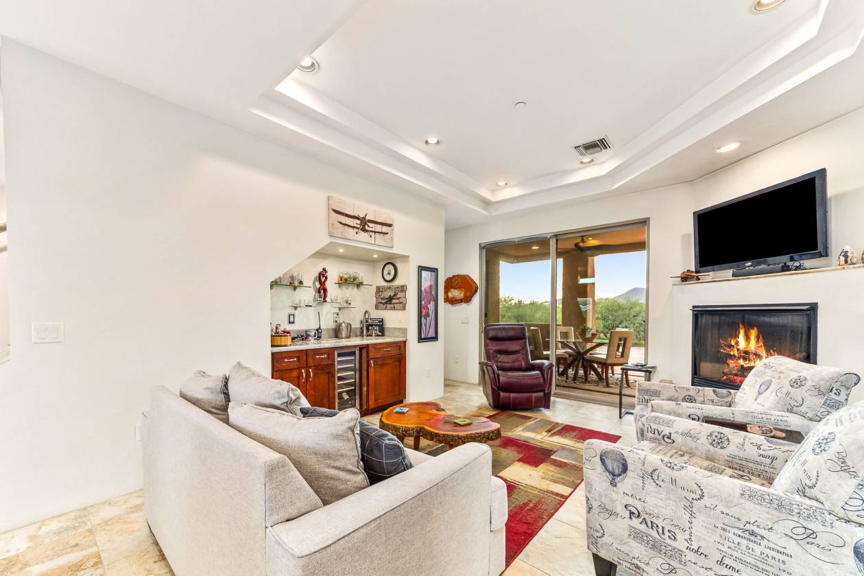 Welcome to your dream home in the exclusive La Cholla Airpark, where luxury meets aviation lifestyle in the heart of Oro Valley, Arizona with easy access to shopping, high end dining, and outdoor recreation. This is a rare opportunity to own this stunning custom-built move-in ready residence, situated on a pristine and ultra-private 8.9-acre lot, features 1,661 SF, 3BD, 2BTH, and 2-car covered garage with stunning views and sprawling lush desert in all directions. With a custom chandelier, coffered ceilings, a striking 3-color paint scheme, solid core doors, and canned lighting, the home is perfectly designed for both relaxation and entertainment. The kitchen provides a perfect blend for hosting or everyday indulgence with dual electric/gas ovens, a large gas cooktop, self-closing cabinetry, and a juice bar. Unwind in the upgraded bathrooms featuring premium Koehler toilets, a 2-person jacuzzi tub, and a downstairs 2-person tiled shower. Dual sliding doors open to a spacious patio with ceiling fans, colored concrete, and a flameless gas fireplace. A gas BBQ and pre-installed gas pipe for a future pizza oven elevate the outdoor living space. Stay comfortable with a new, high-SEER A/C system featuring remotely controlled dual thermostats. Adjacent to the home is a professionally designed and compacted dirt pad, where you can build your dream hanger and taxi your plane from your home to the private airstrip, where a 4500' long paved and lighted runway awaits your departure. Whether you’re an aviator or simply seeking a one-of-a-kind desert retreat, this home delivers unmatched quality and style. Schedule a private tour of this extraordinary property and experience the La Cholla Airpark lifestyle for yourself!