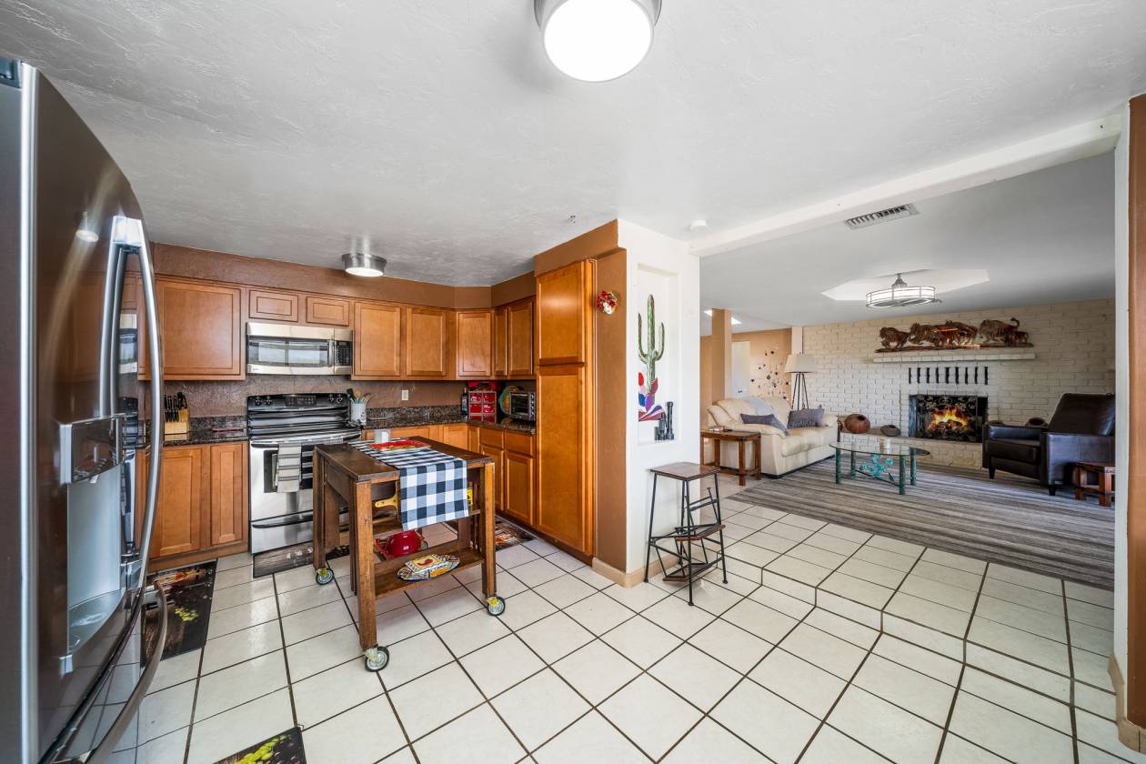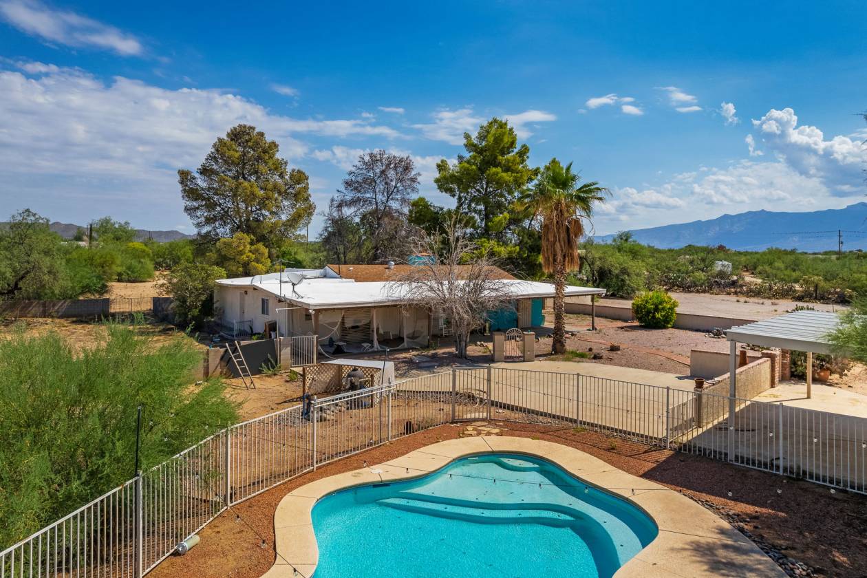 Freedom to Live Wide Open! If you're ready for more space and fewer restrictions, this 4 bedroom, 2 bathroom ranch home on 3.61 acres, zoned for horses with no HOA, offers a straightforward way of living with room to do what you enjoy. With 2,028 sqft on a single level, the home gives you comfortable living inside, while outside you'll find space for recreation vehicles, a horse setup, or a workshop. The property includes a fenced pool for cooling off in summer, Mountain Views inside & out, a dual-purpose carport/ramada for shaded gatherings, multiple patios and a working fountain that adds a touch of charm.