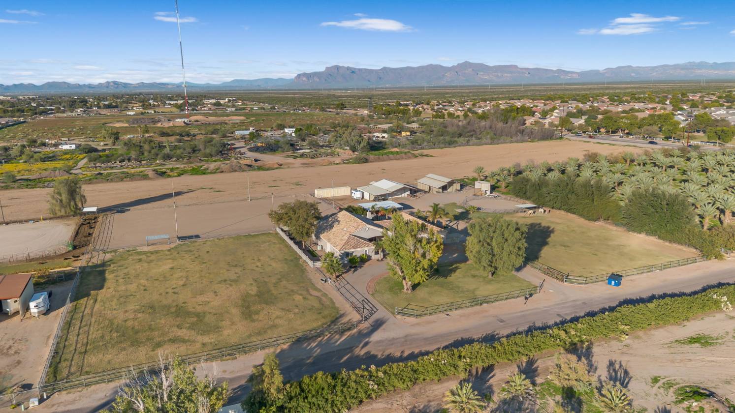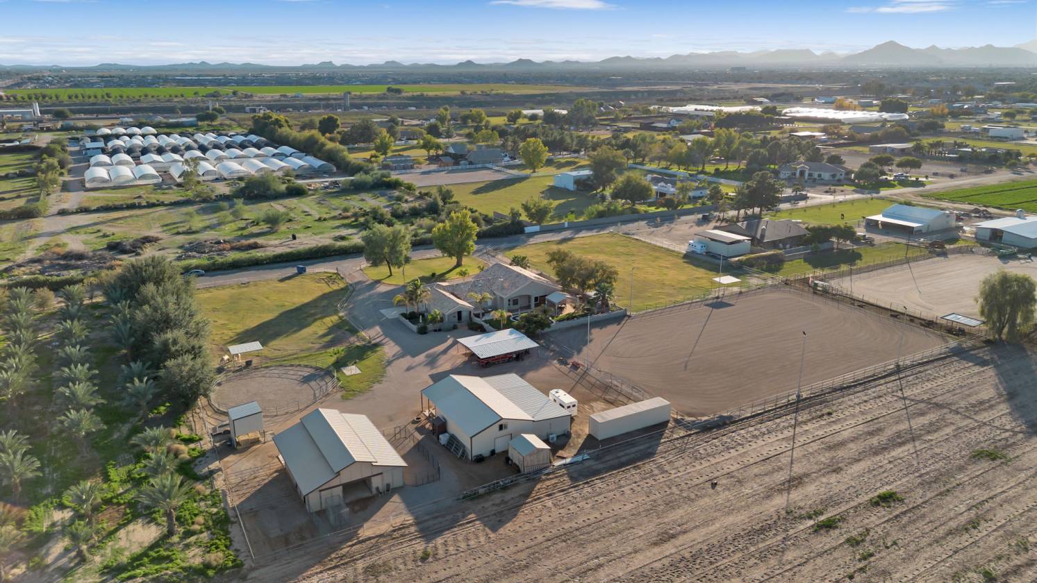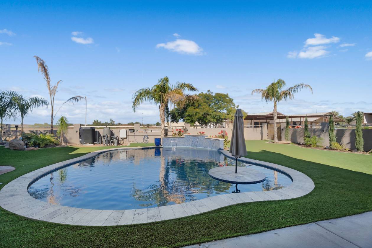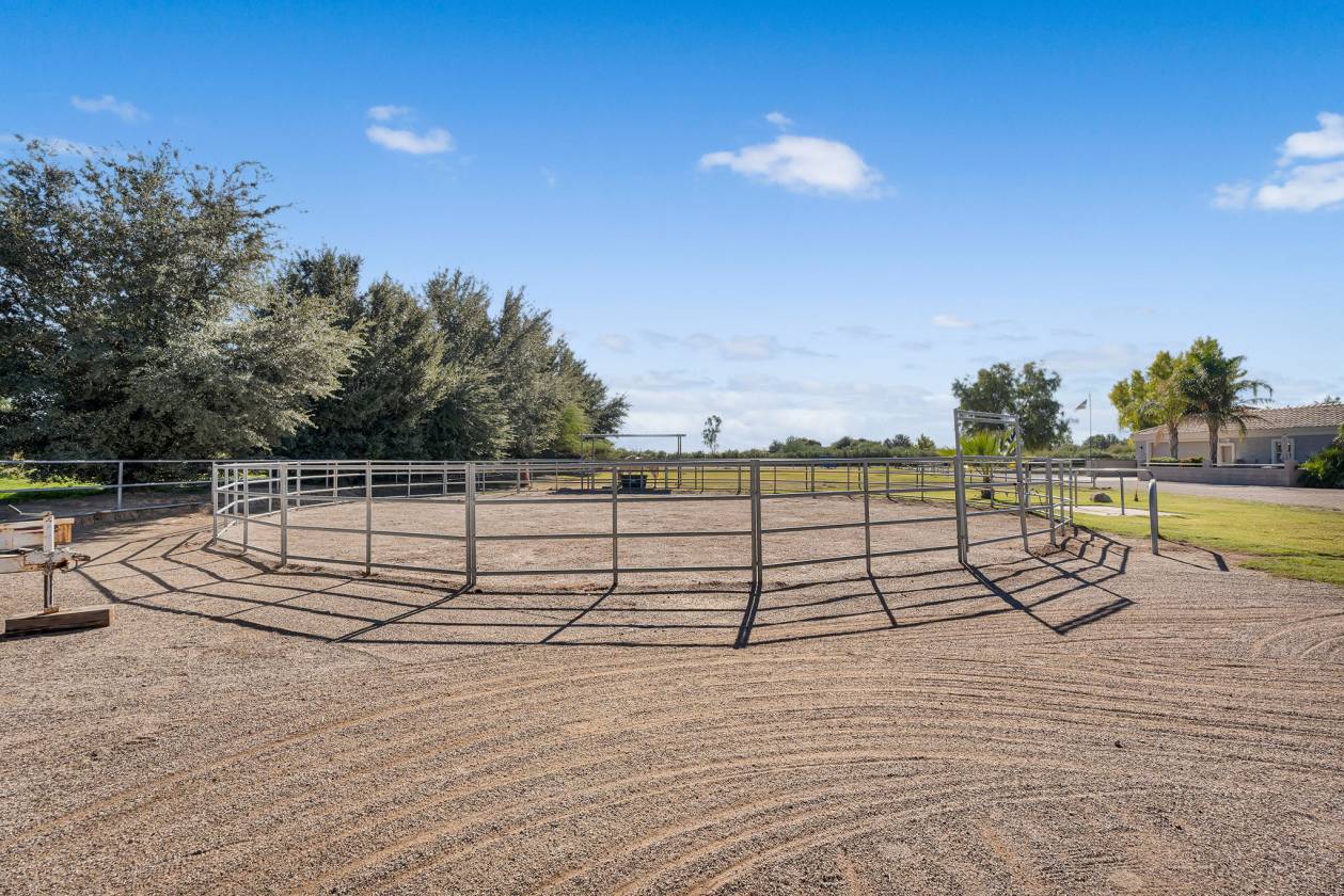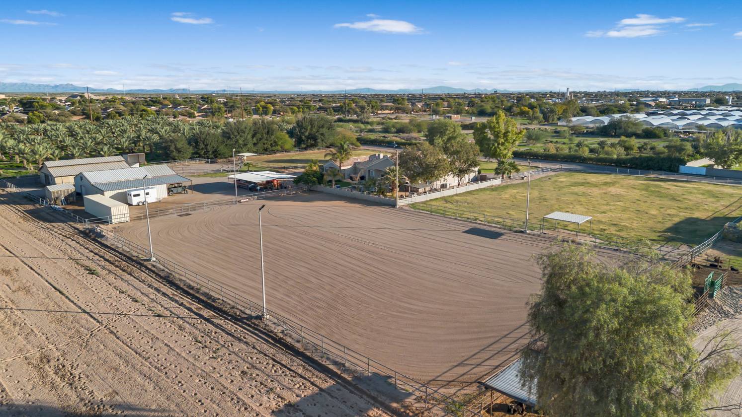 Casita, Pool, Shop & Barn, Arena & Flood Irrigated Pastures. Main home offers vaulted T&G ceiling, 12x24 tile laid in herringbone, remodeled kitch w/ Viking 8 burner gas stove (2 ovens) Sub Zero Refrig/Freezer & granite. Split primary suite w/ updated bath, slipper tub, sep shower & lg walk-in closet. Casita has full kitch, RO, bath, walk-in closet & private courtyard - ideal for guests, multigen living or trainer. Outdoor living boasts heated/chilled Pebble Sheen pool w/ Baja shelf, spa, turf, gazebo w/ misters, BBQ area & bar. Horse amenities incl Barnmaster barn (5 stalls w/ runs, mats, auto waters, fly system), tack/feed room, 2 pastures, lg arena w/ upgraded footing & lights, round pen, wash rack & hay storage. 50x30 insulated shop w/ 220, car lift & cooled office in shop. 3.3 Acres Main House: 3 bedrooms, 2 bath + office (casita has 1 bedroom, 1 bath) Vaulted ceilings (wood tongue in groove) ceiling in Main living room Large Updated (and extended) Kitchen (in 2021) Neutral 12" X 24" Porcelain Tile laid in Herringbone pattern throughout (2019) Updated Interior Bronzed handles, doorknobs and hinges throughout house (2019-2020) Updated Brushed Nickel faucets, light fixtures in bathrooms (2021) Cast Iron "Jotul" Fireplace in Living room, wood burning Kitchen (Extended and Fully Updated end of 2020-2021) High end Viking 8 burner gas stove (2 ovens) Sub Zero Refrigerator/Freezer (built in) In-counter new microwave New Dishwasher All new Cream colored Cabinets w/upper cabinets to ceiling Granite Counters with New backsplash Large Granite Center Island 5' X 6' (all cabinet and drawer storage underneath) Stainless Steel Farm Sink 32" X 20" Kitchen/Dining area have neutral electronic shades (3 Day Blinds) added 2023 Walk-in Pantry w/ Glass Door Large Master Bedroom 15' X 20' Bedroom 2 (13' X 13') Bedroom 3 (13' X 13') Office (13' X 13') w/ outdoor entrance/exit Large En Suite Bathroom Updated (2021) New flooring, cabinetry, granite counters Double sinks Added vanity area separate from double sink area w/ outlets, lighting, drawers Victoria+Albert Slipper Tub ($5K upgrade) Separate Shower Large Master Walk-in Closet (8' X 12') Laundry Room (12' X 11') Casita - approx 500 sq ft (Updated 2021-2022) New flooring and granite counters (kitchen and bath) 12" X 24" Porcelain Tile laid in Herringbone pattern throughout Walk-in Closet with shelving (room for small stackable washer/dryer) 2 ceiling fans New AC Unit for Casita added in 2023 Blockwall Courtyard added with landscaping, pavers (2021) Full Kitchen Solid wood cabinetry Granite Counters oven/range Microwave Full refrigerator/freezer Dishwasher Reverse Osmosis System Matching granite island for prep Full Bathroom w/ linen closet, drawers/cabinets for storage Fits: King size bed, 2 nightstands, dresser (in walk-in closet), 2 recliners, end table, dinette set w/2 chairs Entrance with Porch and separate entrance/exit to garage Backyard/Front Yard Mature Landscaping: Over 20 Trees/Palms, Fruit Trees (Ruby Red Grapefruit, Orange, Mexican Lime, Pomegranate), Plus: Cana Lillies, Sago Palms, Lantana, Sage, Rosemary, Bottle Brush, Jasmine, Boxwood, Torch bougainvillea, Mediterranean palms Custom Design Pool (added in 2023-2024) Heater/Chiller (Jandy) $8K Upgrade 13,440 gallons Upgraded "Dolphin Sigma Robotic Cleaner" Upgraded "Pebble Sheen" Interior Finish Large Baja Lounging deck Circular seating with glass tiled/Travertine Table w/ Umbrella Travertine perimeter 7 Person Jacuzzi (VitaSpa) New vinyl top (2025) Backyard Turf and Landscaping (2022-2023) Large Gazebo (17' X 14') (w/ Electric, Misters), flagstone flooring Backyard "Bar" area (seats 6) w/ Sink, window, Custom Concrete Slab Counter (2023) Covered dedicated BBQ area (12' X 19') (added 2025) Natural Gas Flagstone Fire Pit with circular seating 2 Separate Drip Irrigation systems Circular drive (chip sealed) Blockwall, pavered Front courtyard (added in 2019) Backyard Extended and block wall added in (2019-2020) Separate fenced "dog run" on west side of home with shade and water (20' X 56') Horse Amenities 5 stall Barn Master Barn - 12' X 12' stalls w/large outdoor runs All stalls are matted, with auto waters and fans Professional Fly Spray System 12' X 12' concrete tack/feed room with water and electricity Wired for Sound (speakers convey) Concrete Barn Aisle and porch with overhang (added 2020) 60' sand Round Pen with sprinkler Concrete Wash Rack 214' X 140' Riding Arena $7K sand footing (added in 2020) 5 (400W Commercial Area) LED Arena Lights added in 2019 Shaded Hay Shed (added 2023) approx 14' X 14' (fits a squeeze of delivered hay) 3 Irrigated Pastures East side Pasture approx 204' X 140' West side Pasture approx 166' X 130' Shades (one in each pasture) Shop 50' X 30' Shop Main Shop is 30' X 30' Concrete Slab pad Fully Insulated (including ceiling) LED lighting 2 separate 60 amp mains 2 - 220V Outlets (one on each side of shop) $5K of Electrical run in 2022 Plumbed for high volume air compressor (compressor does not convey) 10,000 lb Hydraulic Car lift (Rotary) Shop/Office space 30' X 20' (added 2023) Heated and Cooled (Mister Cool mini-split rated for 2000 sq ft) Fully spray foam insulated, sheet rock finished Industrial-grade Vinyl Flooring LED Recessed Lighting (dimmable) Other Notables: Property is fully fenced with 3 rail fencing Extra Large Sliding door updated in 2023 (8' X 8') One of only a few homes in the neighborhood with natural gas 6' upgraded Baseboards 600 sq ft Shop Office is perfect for a small home based business, homeschooling classroom, Hobby/craft area, "man cave" or entertaining area 12 ceiling fans throughout Water Softener System 2 Reverse Osmosis Systems (in Main House Kitchen and Casita Kitchen) High Pressure Mister System throughout backyard (in ground too) Oversized 2 car garage (26' X 26') fits oversize vehicles Additional 40' X 35' shaded structure with water and electrical (currently used for parking tractors, side by side, riding lawn mower and extra vehicle