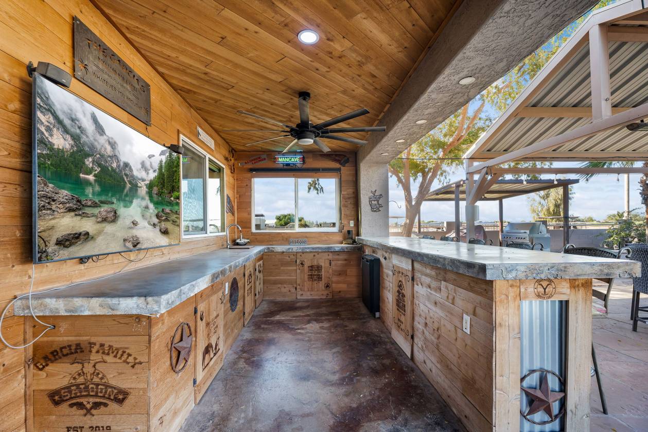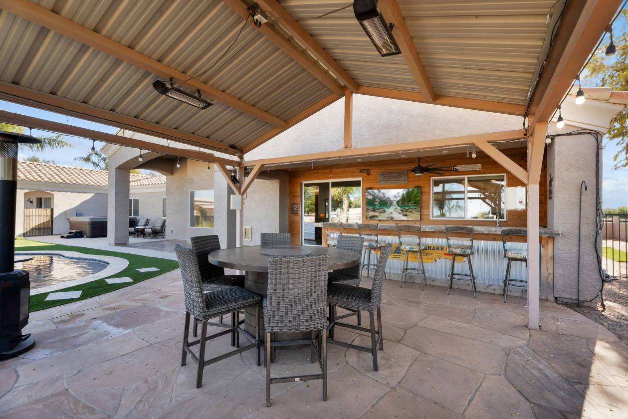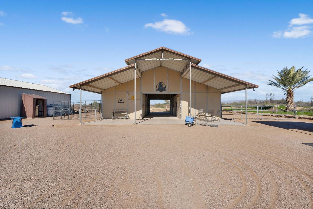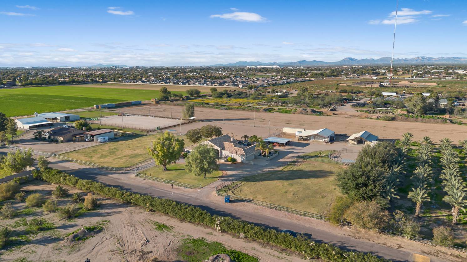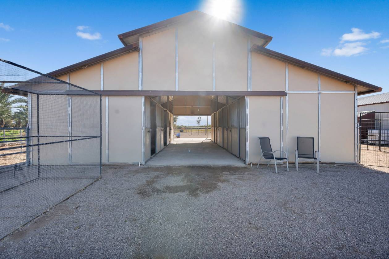 Casita, Pool, Shop & Barn, Arena & Flood Irrigated Pastures. Main home offers vaulted T&G ceiling, 12x24 tile laid in herringbone, remodeled kitch w/ Viking 8 burner gas stove (2 ovens) Sub Zero Refrig/Freezer & granite. Split primary suite w/ updated bath, slipper tub, sep shower & lg walk-in closet. Casita has full kitch, RO, bath, walk-in closet & private courtyard - ideal for guests, multigen living or trainer. Outdoor living boasts heated/chilled Pebble Sheen pool w/ Baja shelf, spa, turf, gazebo w/ misters, BBQ area & bar. Horse amenities incl Barnmaster barn (5 stalls w/ runs, mats, auto waters, fly system), tack/feed room, 2 pastures, lg arena w/ upgraded footing & lights, round pen, wash rack & hay storage. 50x30 insulated shop w/ 220, car lift & cooled office in shop. 3.3 Acres Main House: 3 bedrooms, 2 bath + office (casita has 1 bedroom, 1 bath) Vaulted ceilings (wood tongue in groove) ceiling in Main living room Large Updated (and extended) Kitchen (in 2021) Neutral 12" X 24" Porcelain Tile laid in Herringbone pattern throughout (2019) Updated Interior Bronzed handles, doorknobs and hinges throughout house (2019-2020) Updated Brushed Nickel faucets, light fixtures in bathrooms (2021) Cast Iron "Jotul" Fireplace in Living room, wood burning Kitchen (Extended and Fully Updated end of 2020-2021) High end Viking 8 burner gas stove (2 ovens) Sub Zero Refrigerator/Freezer (built in) In-counter new microwave New Dishwasher All new Cream colored Cabinets w/upper cabinets to ceiling Granite Counters with New backsplash Large Granite Center Island 5' X 6' (all cabinet and drawer storage underneath) Stainless Steel Farm Sink 32" X 20" Kitchen/Dining area have neutral electronic shades (3 Day Blinds) added 2023 Walk-in Pantry w/ Glass Door Large Master Bedroom 15' X 20' Bedroom 2 (13' X 13') Bedroom 3 (13' X 13') Office (13' X 13') w/ outdoor entrance/exit Large En Suite Bathroom Updated (2021) New flooring, cabinetry, granite counters Double sinks Added vanity area separate from double sink area w/ outlets, lighting, drawers Victoria+Albert Slipper Tub ($5K upgrade) Separate Shower Large Master Walk-in Closet (8' X 12') Laundry Room (12' X 11') Casita - approx 500 sq ft (Updated 2021-2022) New flooring and granite counters (kitchen and bath) 12" X 24" Porcelain Tile laid in Herringbone pattern throughout Walk-in Closet with shelving (room for small stackable washer/dryer) 2 ceiling fans New AC Unit for Casita added in 2023 Blockwall Courtyard added with landscaping, pavers (2021) Full Kitchen Solid wood cabinetry Granite Counters oven/range Microwave Full refrigerator/freezer Dishwasher Reverse Osmosis System Matching granite island for prep Full Bathroom w/ linen closet, drawers/cabinets for storage Fits: King size bed, 2 nightstands, dresser (in walk-in closet), 2 recliners, end table, dinette set w/2 chairs Entrance with Porch and separate entrance/exit to garage Backyard/Front Yard Mature Landscaping: Over 20 Trees/Palms, Fruit Trees (Ruby Red Grapefruit, Orange, Mexican Lime, Pomegranate), Plus: Cana Lillies, Sago Palms, Lantana, Sage, Rosemary, Bottle Brush, Jasmine, Boxwood, Torch bougainvillea, Mediterranean palms Custom Design Pool (added in 2023-2024) Heater/Chiller (Jandy) $8K Upgrade 13,440 gallons Upgraded "Dolphin Sigma Robotic Cleaner" Upgraded "Pebble Sheen" Interior Finish Large Baja Lounging deck Circular seating with glass tiled/Travertine Table w/ Umbrella Travertine perimeter 7 Person Jacuzzi (VitaSpa) New vinyl top (2025) Backyard Turf and Landscaping (2022-2023) Large Gazebo (17' X 14') (w/ Electric, Misters), flagstone flooring Backyard "Bar" area (seats 6) w/ Sink, window, Custom Concrete Slab Counter (2023) Covered dedicated BBQ area (12' X 19') (added 2025) Natural Gas Flagstone Fire Pit with circular seating 2 Separate Drip Irrigation systems Circular drive (chip sealed) Blockwall, pavered Front courtyard (added in 2019) Backyard Extended and block wall added in (2019-2020) Separate fenced "dog run" on west side of home with shade and water (20' X 56') Horse Amenities 5 stall Barn Master Barn - 12' X 12' stalls w/large outdoor runs All stalls are matted, with auto waters and fans Professional Fly Spray System 12' X 12' concrete tack/feed room with water and electricity Wired for Sound (speakers convey) Concrete Barn Aisle and porch with overhang (added 2020) 60' sand Round Pen with sprinkler Concrete Wash Rack 214' X 140' Riding Arena $7K sand footing (added in 2020) 5 (400W Commercial Area) LED Arena Lights added in 2019 Shaded Hay Shed (added 2023) approx 14' X 14' (fits a squeeze of delivered hay) 3 Irrigated Pastures East side Pasture approx 204' X 140' West side Pasture approx 166' X 130' Shades (one in each pasture) Shop 50' X 30' Shop Main Shop is 30' X 30' Concrete Slab pad Fully Insulated (including ceiling) LED lighting 2 separate 60 amp mains 2 - 220V Outlets (one on each side of shop) $5K of Electrical run in 2022 Plumbed for high volume air compressor (compressor does not convey) 10,000 lb Hydraulic Car lift (Rotary) Shop/Office space 30' X 20' (added 2023) Heated and Cooled (Mister Cool mini-split rated for 2000 sq ft) Fully spray foam insulated, sheet rock finished Industrial-grade Vinyl Flooring LED Recessed Lighting (dimmable) Other Notables: Property is fully fenced with 3 rail fencing Extra Large Sliding door updated in 2023 (8' X 8') One of only a few homes in the neighborhood with natural gas 6' upgraded Baseboards 600 sq ft Shop Office is perfect for a small home based business, homeschooling classroom, Hobby/craft area, "man cave" or entertaining area 12 ceiling fans throughout Water Softener System 2 Reverse Osmosis Systems (in Main House Kitchen and Casita Kitchen) High Pressure Mister System throughout backyard (in ground too) Oversized 2 car garage (26' X 26') fits oversize vehicles Additional 40' X 35' shaded structure with water and electrical (currently used for parking tractors, side by side, riding lawn mower and extra vehicle