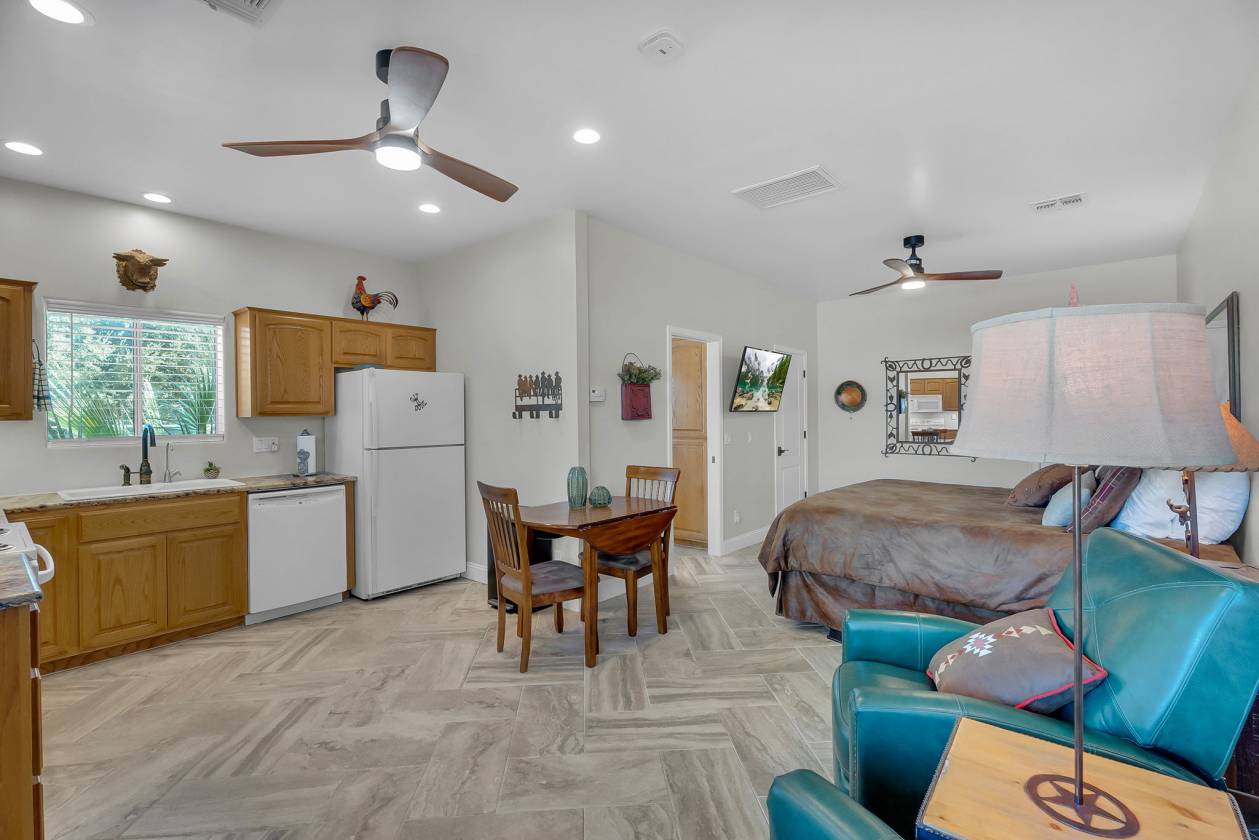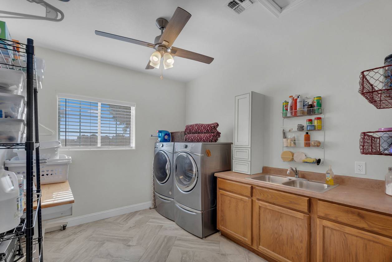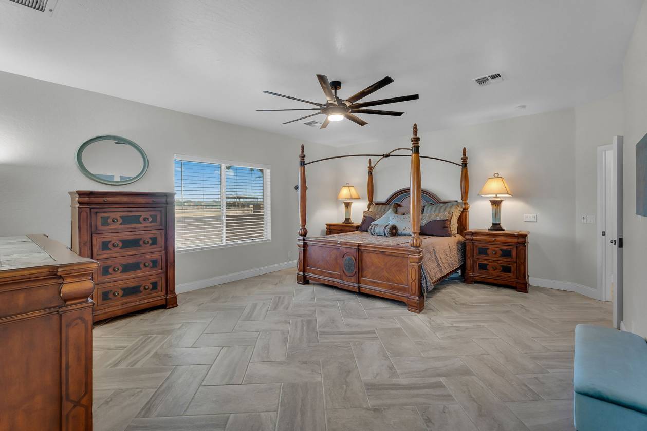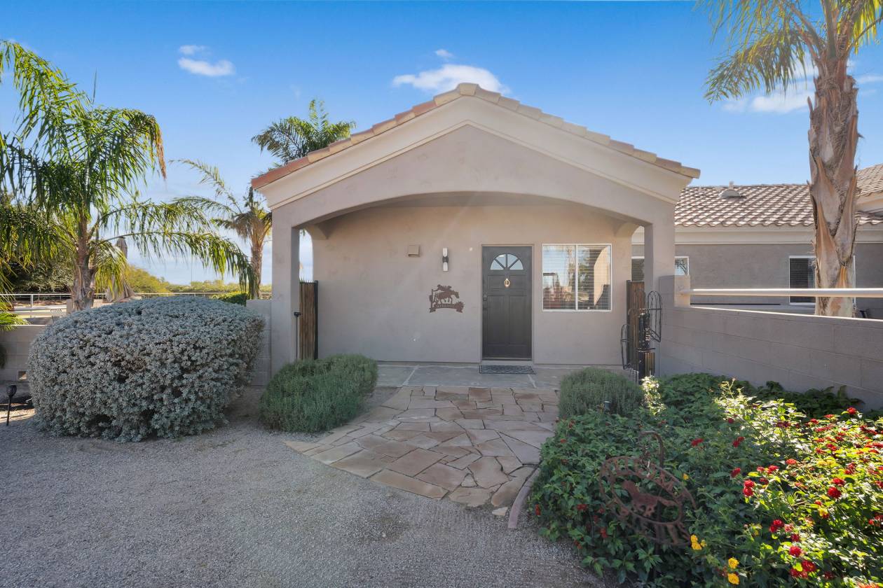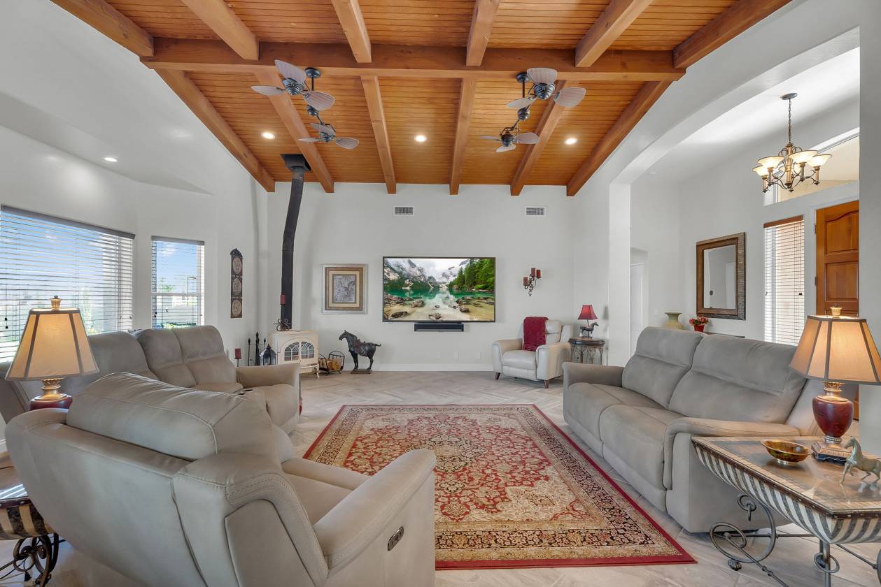 Casita, Pool, Shop & Barn, Arena & Flood Irrigated Pastures. Main home offers vaulted T&G ceiling, 12x24 tile laid in herringbone, remodeled kitch w/ Viking 8 burner gas stove (2 ovens) Sub Zero Refrig/Freezer & granite. Split primary suite w/ updated bath, slipper tub, sep shower & lg walk-in closet. Casita has full kitch, RO, bath, walk-in closet & private courtyard - ideal for guests, multigen living or trainer. Outdoor living boasts heated/chilled Pebble Sheen pool w/ Baja shelf, spa, turf, gazebo w/ misters, BBQ area & bar. Horse amenities incl Barnmaster barn (5 stalls w/ runs, mats, auto waters, fly system), tack/feed room, 2 pastures, lg arena w/ upgraded footing & lights, round pen, wash rack & hay storage. 50x30 insulated shop w/ 220, car lift & cooled office in shop. 3.3 Acres Main House: 3 bedrooms, 2 bath + office (casita has 1 bedroom, 1 bath) Vaulted ceilings (wood tongue in groove) ceiling in Main living room Large Updated (and extended) Kitchen (in 2021) Neutral 12" X 24" Porcelain Tile laid in Herringbone pattern throughout (2019) Updated Interior Bronzed handles, doorknobs and hinges throughout house (2019-2020) Updated Brushed Nickel faucets, light fixtures in bathrooms (2021) Cast Iron "Jotul" Fireplace in Living room, wood burning Kitchen (Extended and Fully Updated end of 2020-2021) High end Viking 8 burner gas stove (2 ovens) Sub Zero Refrigerator/Freezer (built in) In-counter new microwave New Dishwasher All new Cream colored Cabinets w/upper cabinets to ceiling Granite Counters with New backsplash Large Granite Center Island 5' X 6' (all cabinet and drawer storage underneath) Stainless Steel Farm Sink 32" X 20" Kitchen/Dining area have neutral electronic shades (3 Day Blinds) added 2023 Walk-in Pantry w/ Glass Door Large Master Bedroom 15' X 20' Bedroom 2 (13' X 13') Bedroom 3 (13' X 13') Office (13' X 13') w/ outdoor entrance/exit Large En Suite Bathroom Updated (2021) New flooring, cabinetry, granite counters Double sinks Added vanity area separate from double sink area w/ outlets, lighting, drawers Victoria+Albert Slipper Tub ($5K upgrade) Separate Shower Large Master Walk-in Closet (8' X 12') Laundry Room (12' X 11') Casita - approx 500 sq ft (Updated 2021-2022) New flooring and granite counters (kitchen and bath) 12" X 24" Porcelain Tile laid in Herringbone pattern throughout Walk-in Closet with shelving (room for small stackable washer/dryer) 2 ceiling fans New AC Unit for Casita added in 2023 Blockwall Courtyard added with landscaping, pavers (2021) Full Kitchen Solid wood cabinetry Granite Counters oven/range Microwave Full refrigerator/freezer Dishwasher Reverse Osmosis System Matching granite island for prep Full Bathroom w/ linen closet, drawers/cabinets for storage Fits: King size bed, 2 nightstands, dresser (in walk-in closet), 2 recliners, end table, dinette set w/2 chairs Entrance with Porch and separate entrance/exit to garage Backyard/Front Yard Mature Landscaping: Over 20 Trees/Palms, Fruit Trees (Ruby Red Grapefruit, Orange, Mexican Lime, Pomegranate), Plus: Cana Lillies, Sago Palms, Lantana, Sage, Rosemary, Bottle Brush, Jasmine, Boxwood, Torch bougainvillea, Mediterranean palms Custom Design Pool (added in 2023-2024) Heater/Chiller (Jandy) $8K Upgrade 13,440 gallons Upgraded "Dolphin Sigma Robotic Cleaner" Upgraded "Pebble Sheen" Interior Finish Large Baja Lounging deck Circular seating with glass tiled/Travertine Table w/ Umbrella Travertine perimeter 7 Person Jacuzzi (VitaSpa) New vinyl top (2025) Backyard Turf and Landscaping (2022-2023) Large Gazebo (17' X 14') (w/ Electric, Misters), flagstone flooring Backyard "Bar" area (seats 6) w/ Sink, window, Custom Concrete Slab Counter (2023) Covered dedicated BBQ area (12' X 19') (added 2025) Natural Gas Flagstone Fire Pit with circular seating 2 Separate Drip Irrigation systems Circular drive (chip sealed) Blockwall, pavered Front courtyard (added in 2019) Backyard Extended and block wall added in (2019-2020) Separate fenced "dog run" on west side of home with shade and water (20' X 56') Horse Amenities 5 stall Barn Master Barn - 12' X 12' stalls w/large outdoor runs All stalls are matted, with auto waters and fans Professional Fly Spray System 12' X 12' concrete tack/feed room with water and electricity Wired for Sound (speakers convey) Concrete Barn Aisle and porch with overhang (added 2020) 60' sand Round Pen with sprinkler Concrete Wash Rack 214' X 140' Riding Arena $7K sand footing (added in 2020) 5 (400W Commercial Area) LED Arena Lights added in 2019 Shaded Hay Shed (added 2023) approx 14' X 14' (fits a squeeze of delivered hay) 3 Irrigated Pastures East side Pasture approx 204' X 140' West side Pasture approx 166' X 130' Shades (one in each pasture) Shop 50' X 30' Shop Main Shop is 30' X 30' Concrete Slab pad Fully Insulated (including ceiling) LED lighting 2 separate 60 amp mains 2 - 220V Outlets (one on each side of shop) $5K of Electrical run in 2022 Plumbed for high volume air compressor (compressor does not convey) 10,000 lb Hydraulic Car lift (Rotary) Shop/Office space 30' X 20' (added 2023) Heated and Cooled (Mister Cool mini-split rated for 2000 sq ft) Fully spray foam insulated, sheet rock finished Industrial-grade Vinyl Flooring LED Recessed Lighting (dimmable) Other Notables: Property is fully fenced with 3 rail fencing Extra Large Sliding door updated in 2023 (8' X 8') One of only a few homes in the neighborhood with natural gas 6' upgraded Baseboards 600 sq ft Shop Office is perfect for a small home based business, homeschooling classroom, Hobby/craft area, "man cave" or entertaining area 12 ceiling fans throughout Water Softener System 2 Reverse Osmosis Systems (in Main House Kitchen and Casita Kitchen) High Pressure Mister System throughout backyard (in ground too) Oversized 2 car garage (26' X 26') fits oversize vehicles Additional 40' X 35' shaded structure with water and electrical (currently used for parking tractors, side by side, riding lawn mower and extra vehicle