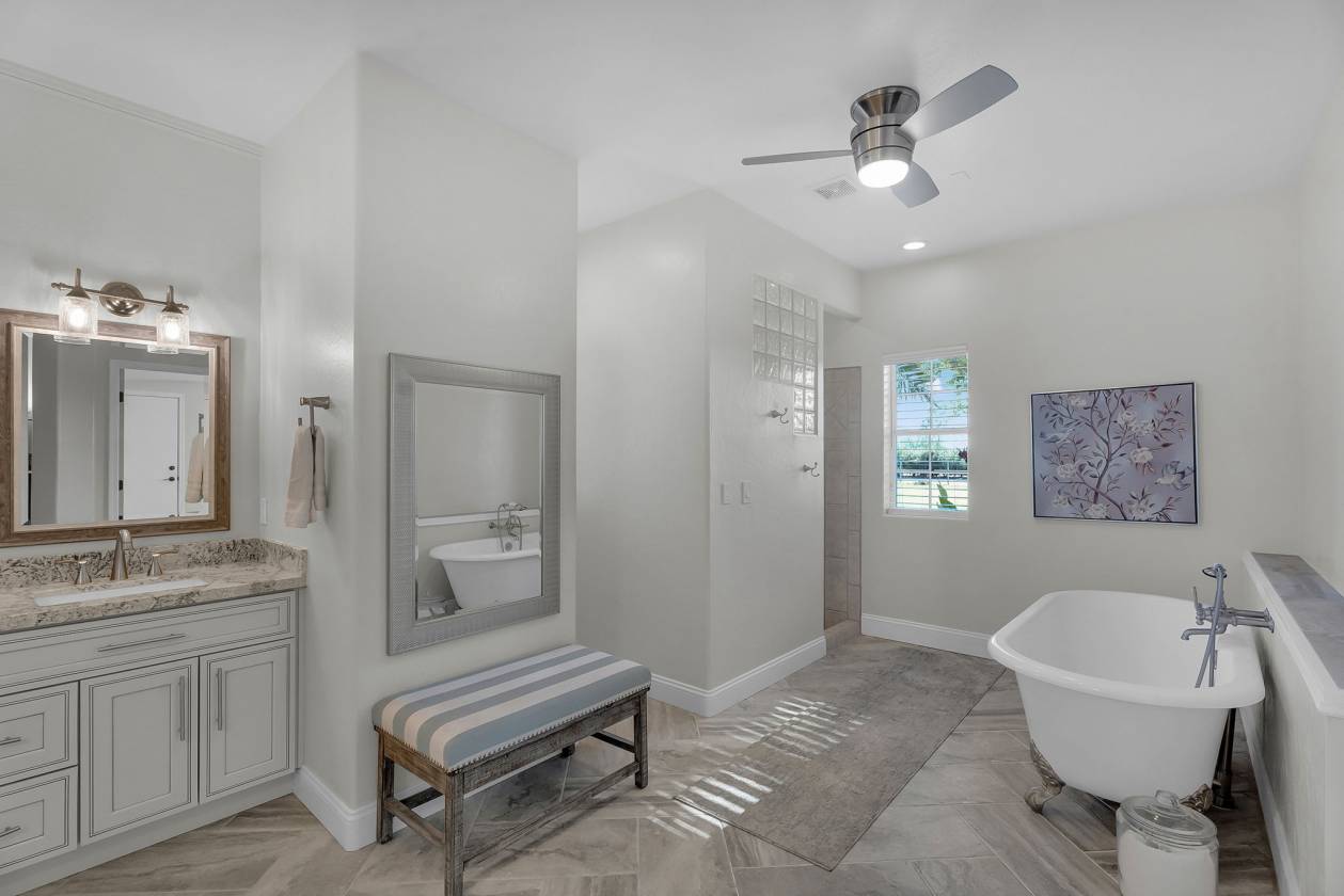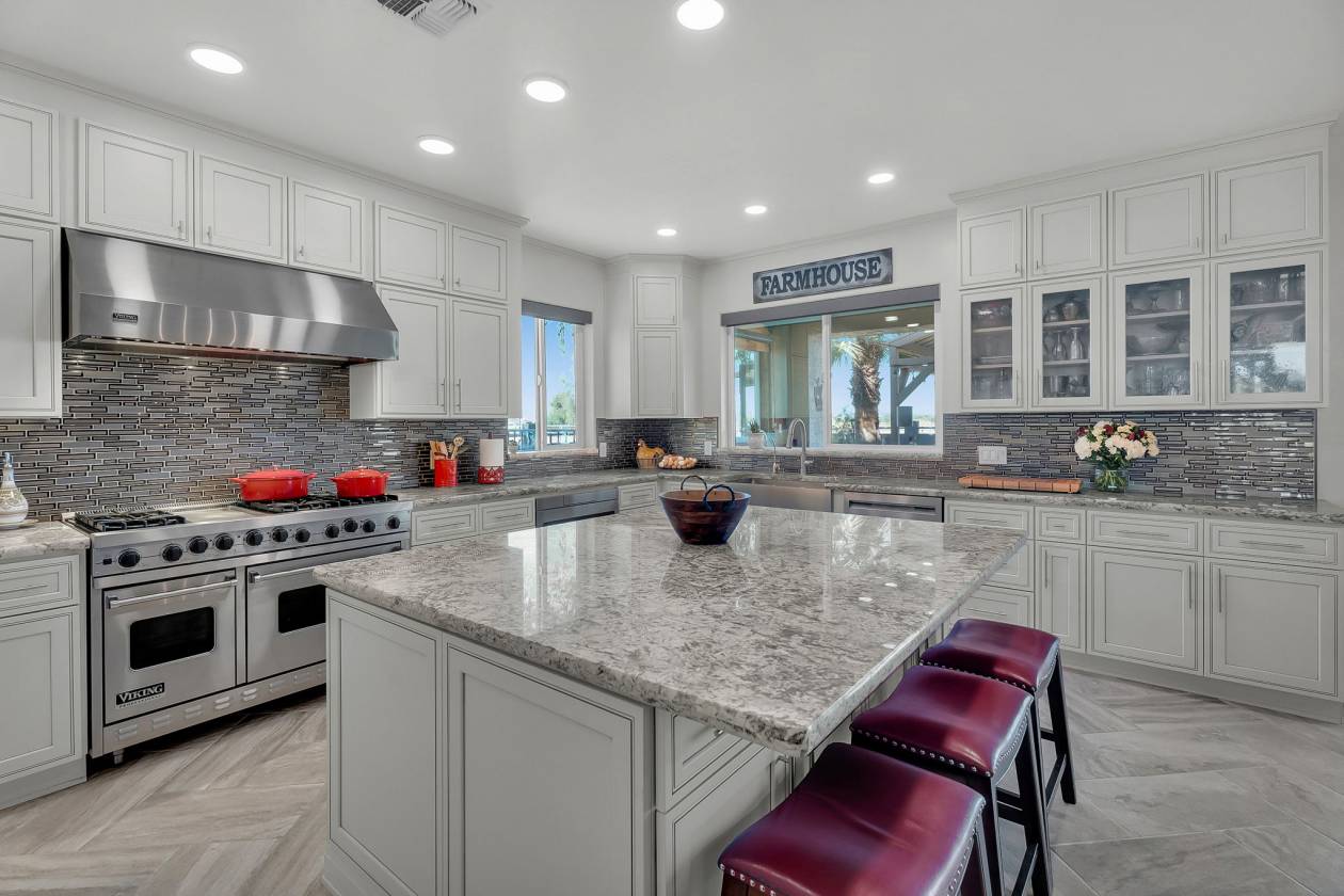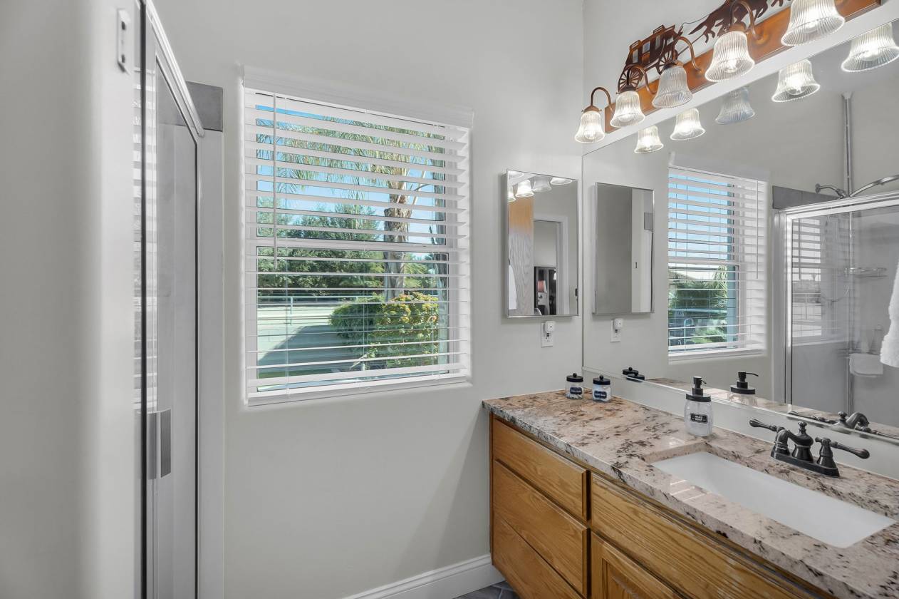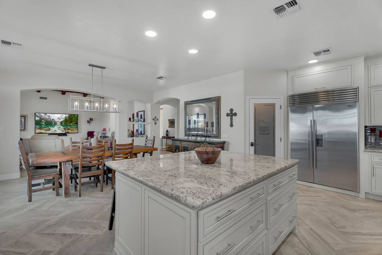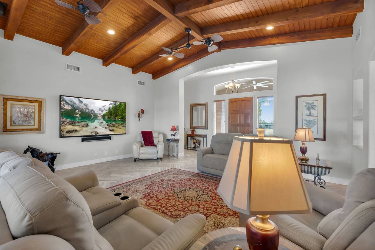 Casita, Pool, Shop & Barn, Arena & Flood Irrigated Pastures. Main home offers vaulted T&G ceiling, 12x24 tile laid in herringbone, remodeled kitch w/ Viking 8 burner gas stove (2 ovens) Sub Zero Refrig/Freezer & granite. Split primary suite w/ updated bath, slipper tub, sep shower & lg walk-in closet. Casita has full kitch, RO, bath, walk-in closet & private courtyard - ideal for guests, multigen living or trainer. Outdoor living boasts heated/chilled Pebble Sheen pool w/ Baja shelf, spa, turf, gazebo w/ misters, BBQ area & bar. Horse amenities incl Barnmaster barn (5 stalls w/ runs, mats, auto waters, fly system), tack/feed room, 2 pastures, lg arena w/ upgraded footing & lights, round pen, wash rack & hay storage. 50x30 insulated shop w/ 220, car lift & cooled office in shop. 3.3 Acres Main House: 3 bedrooms, 2 bath + office (casita has 1 bedroom, 1 bath) Vaulted ceilings (wood tongue in groove) ceiling in Main living room Large Updated (and extended) Kitchen (in 2021) Neutral 12" X 24" Porcelain Tile laid in Herringbone pattern throughout (2019) Updated Interior Bronzed handles, doorknobs and hinges throughout house (2019-2020) Updated Brushed Nickel faucets, light fixtures in bathrooms (2021) Cast Iron "Jotul" Fireplace in Living room, wood burning Kitchen (Extended and Fully Updated end of 2020-2021) High end Viking 8 burner gas stove (2 ovens) Sub Zero Refrigerator/Freezer (built in) In-counter new microwave New Dishwasher All new Cream colored Cabinets w/upper cabinets to ceiling Granite Counters with New backsplash Large Granite Center Island 5' X 6' (all cabinet and drawer storage underneath) Stainless Steel Farm Sink 32" X 20" Kitchen/Dining area have neutral electronic shades (3 Day Blinds) added 2023 Walk-in Pantry w/ Glass Door Large Master Bedroom 15' X 20' Bedroom 2 (13' X 13') Bedroom 3 (13' X 13') Office (13' X 13') w/ outdoor entrance/exit Large En Suite Bathroom Updated (2021) New flooring, cabinetry, granite counters Double sinks Added vanity area separate from double sink area w/ outlets, lighting, drawers Victoria+Albert Slipper Tub ($5K upgrade) Separate Shower Large Master Walk-in Closet (8' X 12') Laundry Room (12' X 11') Casita - approx 500 sq ft (Updated 2021-2022) New flooring and granite counters (kitchen and bath) 12" X 24" Porcelain Tile laid in Herringbone pattern throughout Walk-in Closet with shelving (room for small stackable washer/dryer) 2 ceiling fans New AC Unit for Casita added in 2023 Blockwall Courtyard added with landscaping, pavers (2021) Full Kitchen Solid wood cabinetry Granite Counters oven/range Microwave Full refrigerator/freezer Dishwasher Reverse Osmosis System Matching granite island for prep Full Bathroom w/ linen closet, drawers/cabinets for storage Fits: King size bed, 2 nightstands, dresser (in walk-in closet), 2 recliners, end table, dinette set w/2 chairs Entrance with Porch and separate entrance/exit to garage Backyard/Front Yard Mature Landscaping: Over 20 Trees/Palms, Fruit Trees (Ruby Red Grapefruit, Orange, Mexican Lime, Pomegranate), Plus: Cana Lillies, Sago Palms, Lantana, Sage, Rosemary, Bottle Brush, Jasmine, Boxwood, Torch bougainvillea, Mediterranean palms Custom Design Pool (added in 2023-2024) Heater/Chiller (Jandy) $8K Upgrade 13,440 gallons Upgraded "Dolphin Sigma Robotic Cleaner" Upgraded "Pebble Sheen" Interior Finish Large Baja Lounging deck Circular seating with glass tiled/Travertine Table w/ Umbrella Travertine perimeter 7 Person Jacuzzi (VitaSpa) New vinyl top (2025) Backyard Turf and Landscaping (2022-2023) Large Gazebo (17' X 14') (w/ Electric, Misters), flagstone flooring Backyard "Bar" area (seats 6) w/ Sink, window, Custom Concrete Slab Counter (2023) Covered dedicated BBQ area (12' X 19') (added 2025) Natural Gas Flagstone Fire Pit with circular seating 2 Separate Drip Irrigation systems Circular drive (chip sealed) Blockwall, pavered Front courtyard (added in 2019) Backyard Extended and block wall added in (2019-2020) Separate fenced "dog run" on west side of home with shade and water (20' X 56') Horse Amenities 5 stall Barn Master Barn - 12' X 12' stalls w/large outdoor runs All stalls are matted, with auto waters and fans Professional Fly Spray System 12' X 12' concrete tack/feed room with water and electricity Wired for Sound (speakers convey) Concrete Barn Aisle and porch with overhang (added 2020) 60' sand Round Pen with sprinkler Concrete Wash Rack 214' X 140' Riding Arena $7K sand footing (added in 2020) 5 (400W Commercial Area) LED Arena Lights added in 2019 Shaded Hay Shed (added 2023) approx 14' X 14' (fits a squeeze of delivered hay) 3 Irrigated Pastures East side Pasture approx 204' X 140' West side Pasture approx 166' X 130' Shades (one in each pasture) Shop 50' X 30' Shop Main Shop is 30' X 30' Concrete Slab pad Fully Insulated (including ceiling) LED lighting 2 separate 60 amp mains 2 - 220V Outlets (one on each side of shop) $5K of Electrical run in 2022 Plumbed for high volume air compressor (compressor does not convey) 10,000 lb Hydraulic Car lift (Rotary) Shop/Office space 30' X 20' (added 2023) Heated and Cooled (Mister Cool mini-split rated for 2000 sq ft) Fully spray foam insulated, sheet rock finished Industrial-grade Vinyl Flooring LED Recessed Lighting (dimmable) Other Notables: Property is fully fenced with 3 rail fencing Extra Large Sliding door updated in 2023 (8' X 8') One of only a few homes in the neighborhood with natural gas 6' upgraded Baseboards 600 sq ft Shop Office is perfect for a small home based business, homeschooling classroom, Hobby/craft area, "man cave" or entertaining area 12 ceiling fans throughout Water Softener System 2 Reverse Osmosis Systems (in Main House Kitchen and Casita Kitchen) High Pressure Mister System throughout backyard (in ground too) Oversized 2 car garage (26' X 26') fits oversize vehicles Additional 40' X 35' shaded structure with water and electrical (currently used for parking tractors, side by side, riding lawn mower and extra vehicle