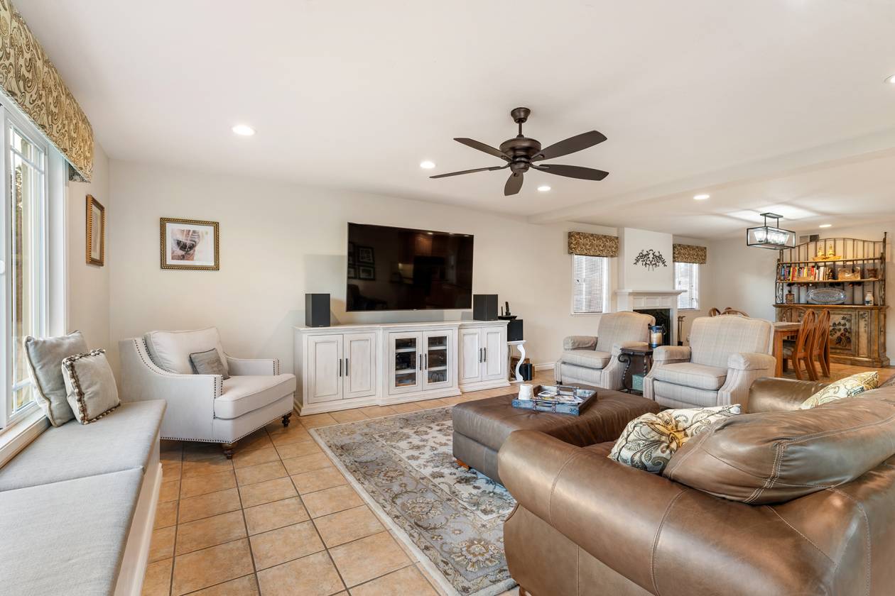 Inside, the sellers thoughtfully expanded the floor plan by adding a permitted, oversized living room right off the kitchen—perfect for hosting and gathering. The remodeled kitchen features maple wood cabinetry, granite countertops, double ovens, and premium touches like two lazy Susans, hidden storage, a warming drawer, instant hot water, a revolving spice rack, and convenient pull-out drawers.