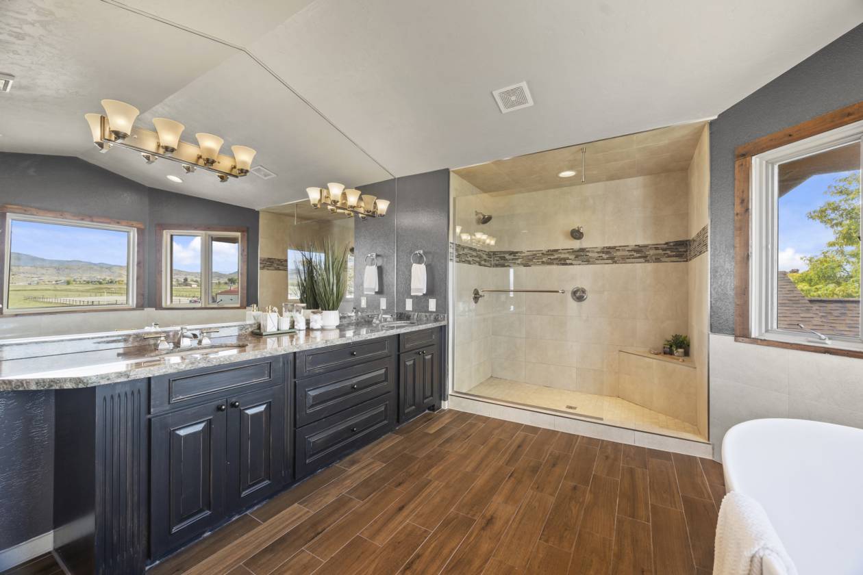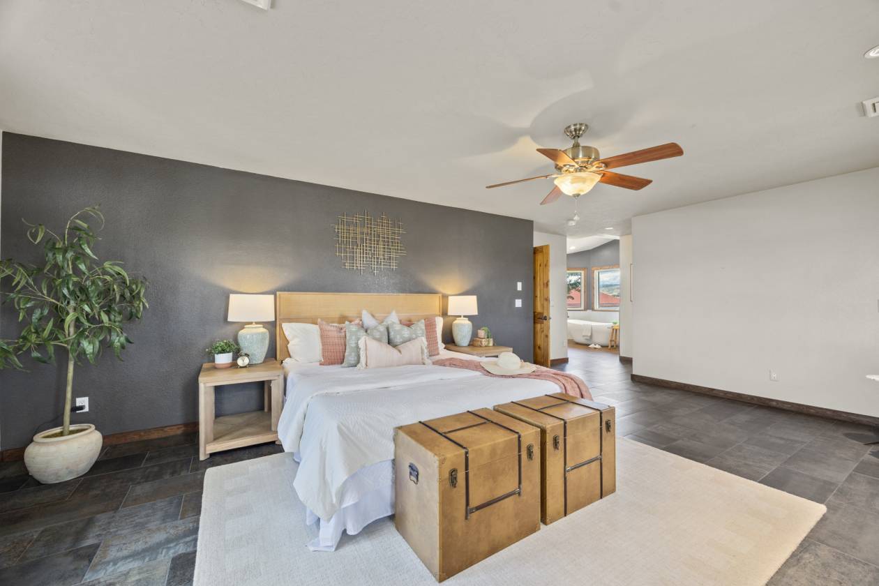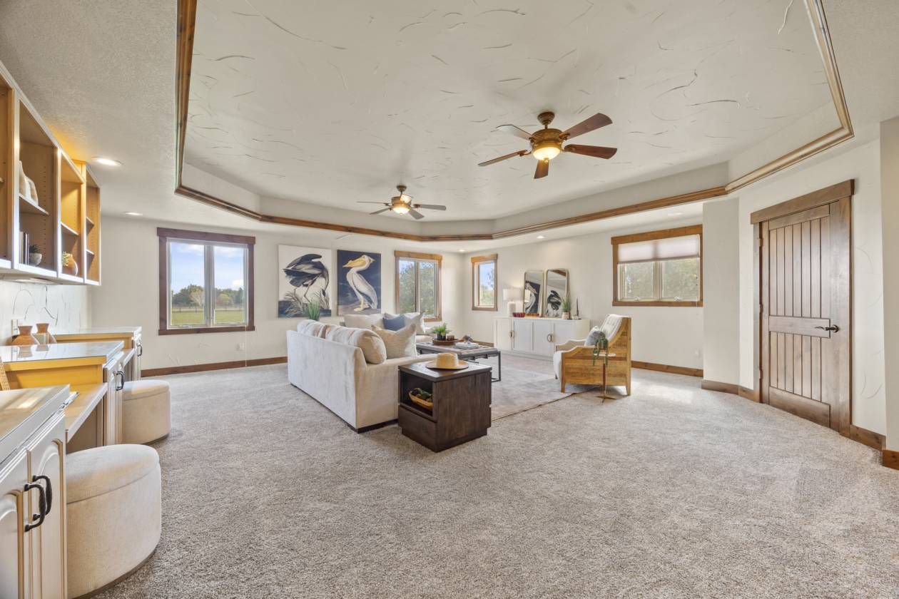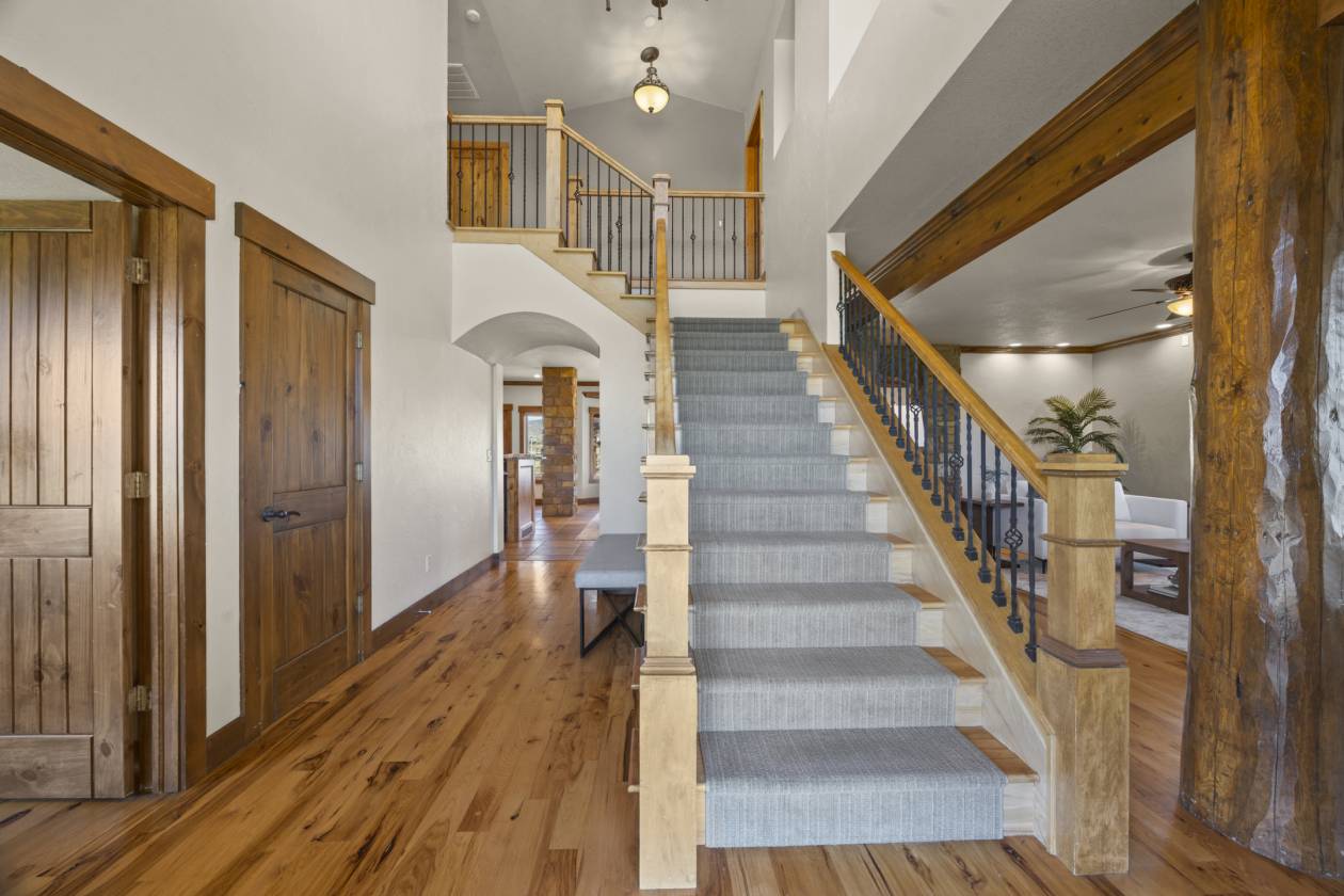 Welcome to your dream farmhouse retreat in Loveland, Colorado. This rare 4-bedroom, 3-bath horse property sits on an 8.75-acre lot with panoramic views of the Rockies. Open, light-filled layout highlighted by hardwood floors, fresh finishes, and thoughtful updates throughout. Relax by the fire in inviting living room, one of many cozy gathering areas. Across the hall find a 4th non-conforming bedroom great as a guest room or private office with nearby 3/4 bath. At the heart of the home is the gourmet kitchen-with granite countertops, stainless steel appliances, double ovens, and an oversized kitchen island. This space flows seamlessly into a large dining area with dedicated space for both eat-in and formal dining - all with gorgeous views. Whether you envision movie nights, a playroom, or a creative studio, the large recreation room offers flexibility with built-in workspaces for remote work, homework stations, or crafting projects. The sunroom is a highlight-wrapped in windows and filled with natural light, it offers breathtaking views that make it the perfect spot to watch a sunrise or sunset. Upstairs find an expansive primary suite, your private haven with a gas fireplace that adds warmth and charm and luxurious 5-piece bathroom with dual vanities, soaking tub, walk-in shower, and custom walk-in closet. Second and third bedrooms with a shared full bath complete the top floor. Step outside onto the patio with pergola and fire pit. Horse lovers will find everything they need including a 6-stall barn, arena, multiple loafing sheds and heated tack room - all with nearby trails for riding. A standout feature of this property is the huge workshop, which provides space for RV or boat storage or room for up to six additional vehicles as well as space for a home-based business, hobby workshop, or creative studio. Water rights included. Easy access to shopping, dining, schools, and healthcare, as well as quick connections to Fort Collins, Longmont, and I-25.