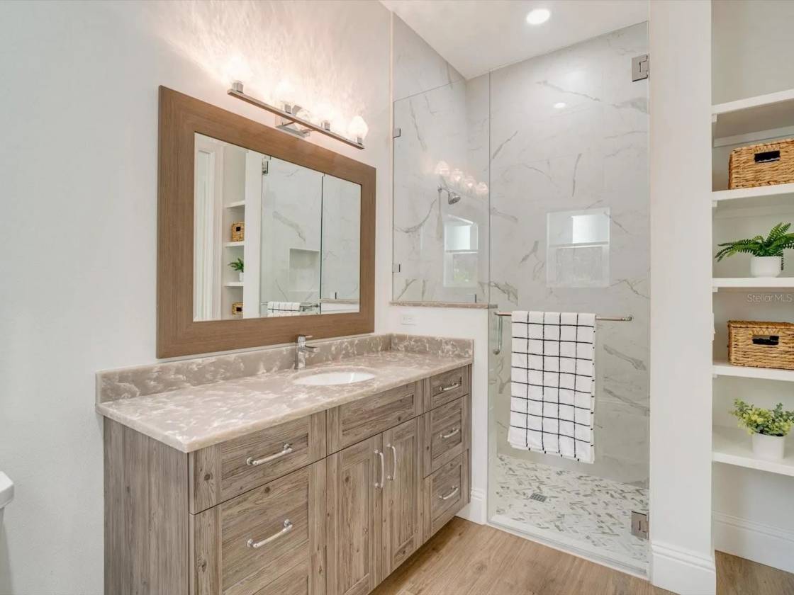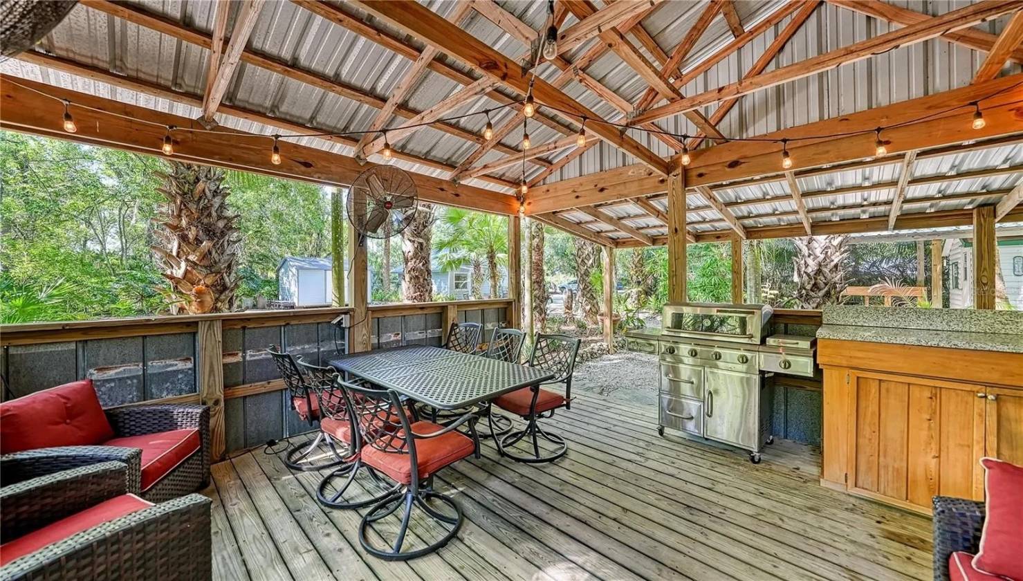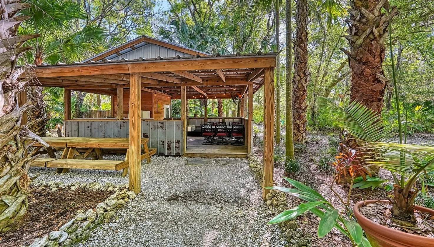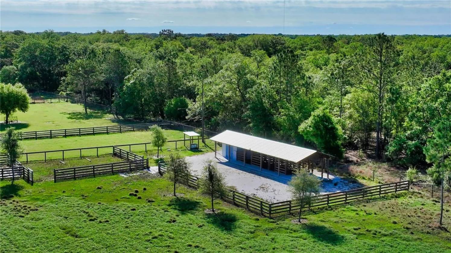 Two Florida-style barns and three shed-style barns provide an additional 12 stalls and an extra tack room, offering ample space for equine care and management.