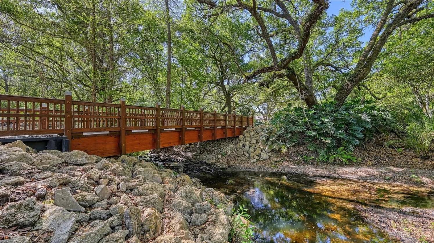 10 acres of fenced and cross-fenced pastures surround the barn complex, with an additional nine acres of pasture land featuring field fencing and a pond. The remaining semi-wooded acres are adorned with mature oak and cypress trees, private shell-lined nature trails, and a serene pond with a fountain and waterfall, offering picturesque settings for trail riding and outdoor enjoyment.