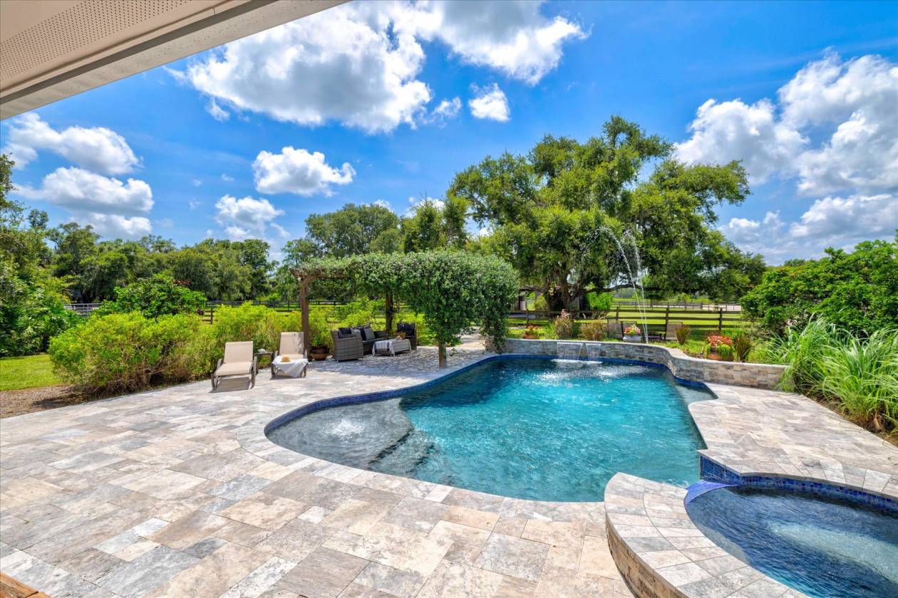 Welcome to one of Myakka Valley Ranches’ most picturesque properties, set on nearly 6 acres of manicured pastures dotted with majestic oaks and centered around a private, tranquil pond. This fully renovated estate delivers the perfect blend of rustic charm and modern luxury, designed for both relaxation and equestrian living. Step inside to discover a spacious and modern interior featuring four well-appointed bedrooms plus a dedicated home office! At the heart of the home is a brand-new kitchen, showcasing custom cabinetry, sleek countertops, and high-end appliances—ideal for both casual living and entertaining. The open floor plan flows effortlessly into spacious living areas and elegantly remodeled bathrooms, all framed by newer windows and doors that fill the space with natural light.Outside, your backyard oasis awaits—featuring a sparkling pool and spa, a soothing water feature, covered pergola and an expansive stone-paver terrace perfect for sunset gatherings. A newly finished garage adds additional flexibility, whether for storage, a workshop, or hobby space.For the equestrian enthusiast, the 2012-built four-stall barn includes two crossties and a tack room, complemented by six pristine paddocks and a half-acre riding arena. There's plenty of room for horses to roam and train in comfort and safety.If you crave the unbeatable freshness of "Farm to Table," then get ready to fall in love with ranch living! Imagine gathering eggs from your very own custom-built chicken coop, tending to happy goats in a charming pen, and harvesting sun-ripened fruits and vegetables straight from your backyard garden. This isn't just fresh—it's next-level, straight-from-the-source, can't-get-any-better-than-this!Despite the serene seclusion, this home is conveniently located just seven miles east of I-75—close enough for easy access to Sarasota, yet far enough to enjoy peaceful nights under the stars. This move-in ready retreat is a rare opportunity to enjoy the very best of country living, with every modern upgrade already in place!