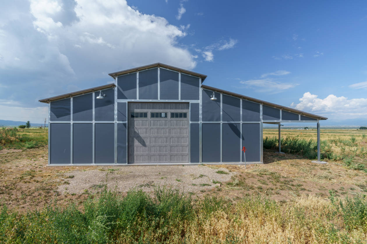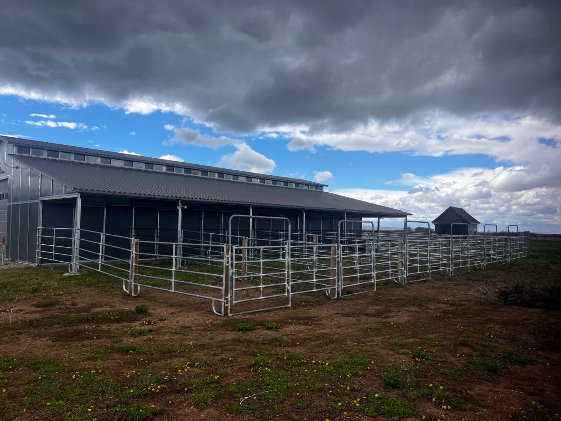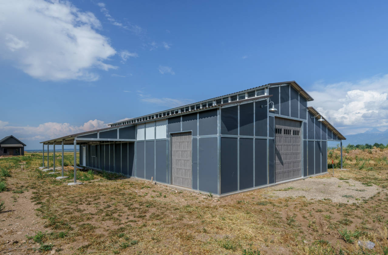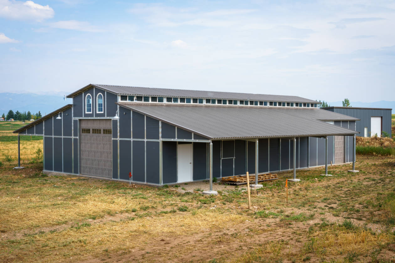 • The raised center barn is a seven stall barn 7 12x12 stalls), 6 stall have doors that would open to 12x40 pens. Beyond those pens, would have been a 100 x160 turnout area. Each stall has automated and heated Nelson waterers and rubber floor mats. The barn also has an enclosed tack room and feed room. The center aisle is 16 ft across. There is also a grooming bay that could be set up with water for a wash bay. The barn electric lighting and door openers are installed. It is wired to add fans and a heater but they are not installed. The barn is an MD Barn and designed to be fire resistant.