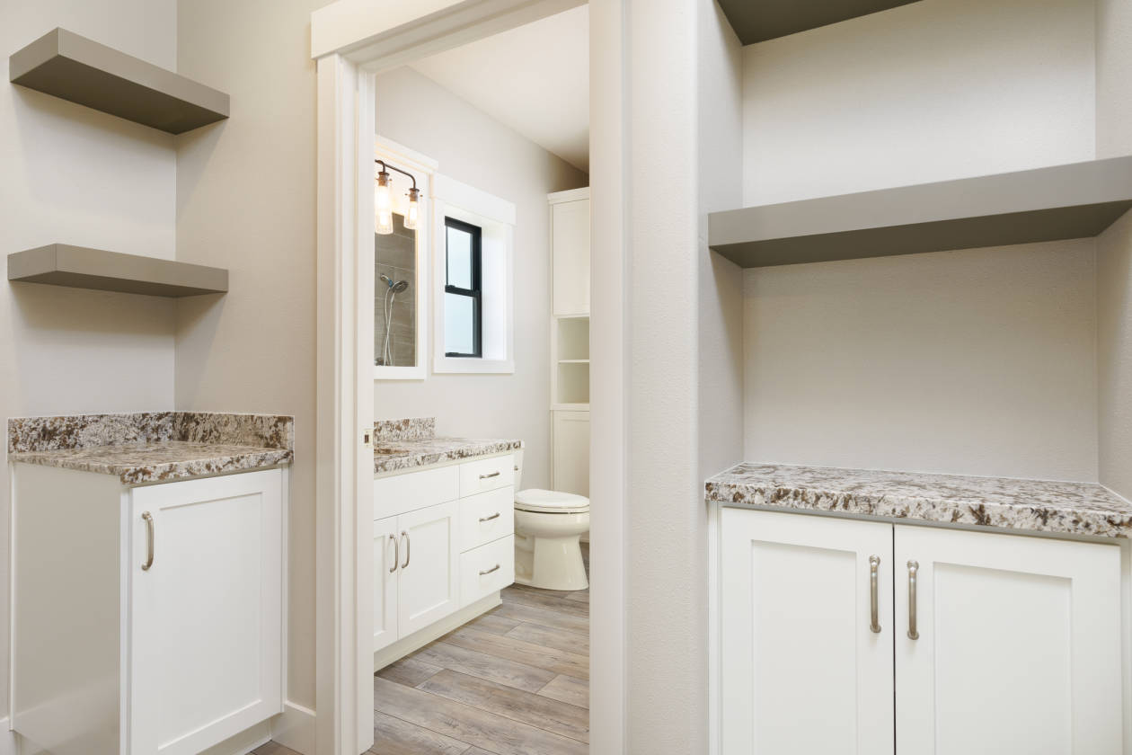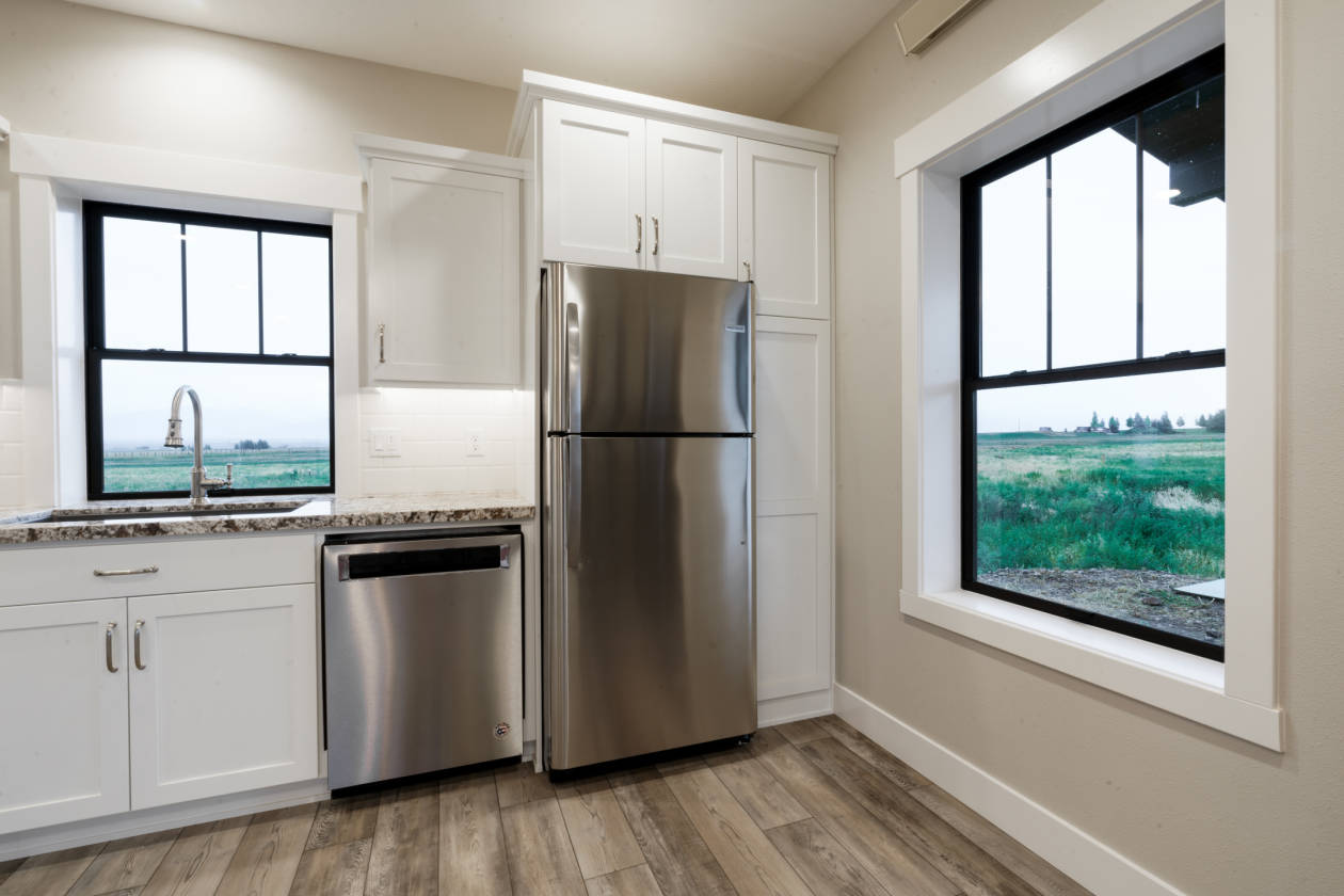 • The bunkhouse is a one bedroom, one bath 600 s.f. guest house. It includes a full kitchen with granite counters, range, built in microwave, and dishwasher. Stackable washer and dryer is included. Bunkhouse is also wired for internet and tv. Stick built on site, and a 4ft crawl space with storage.