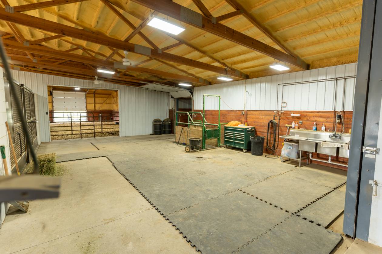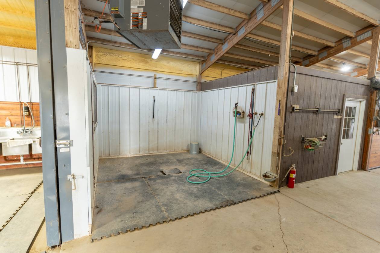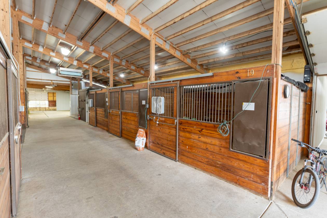 • 24 stalls with swing out feeders and rubber mats, also heat and AC