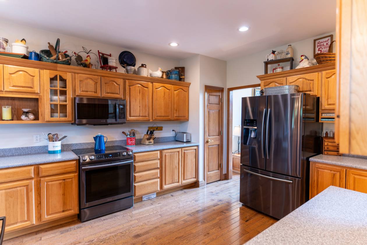 • Hickory cabinets and corian counter tops