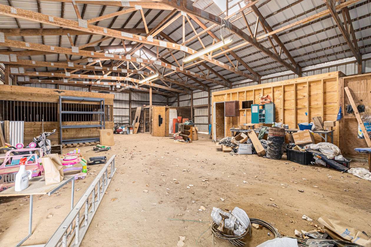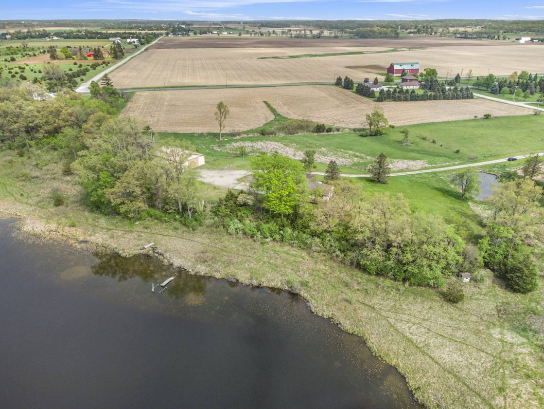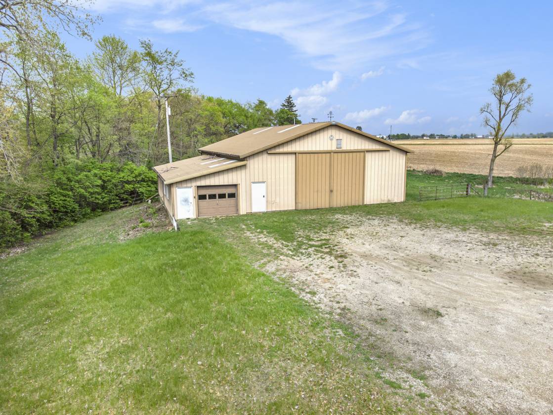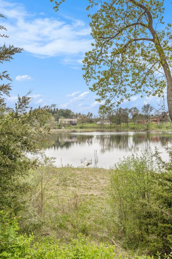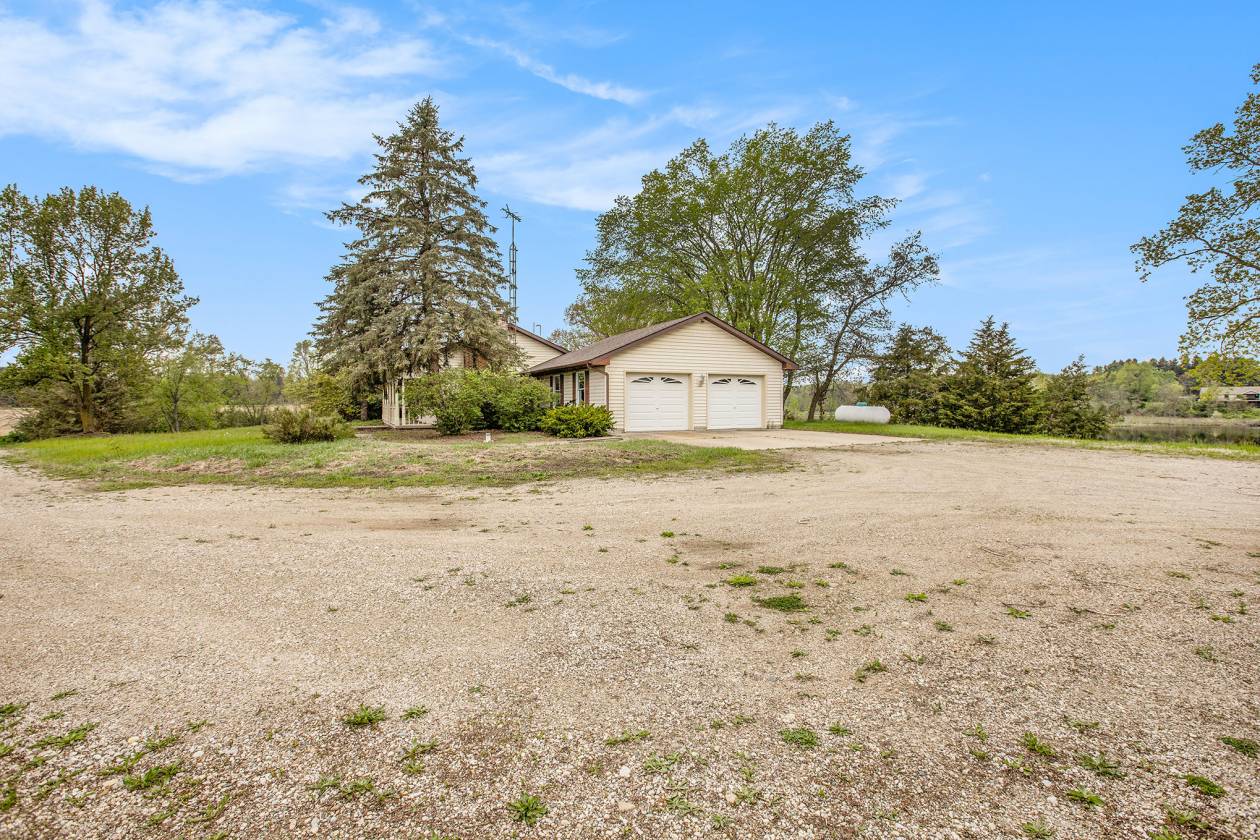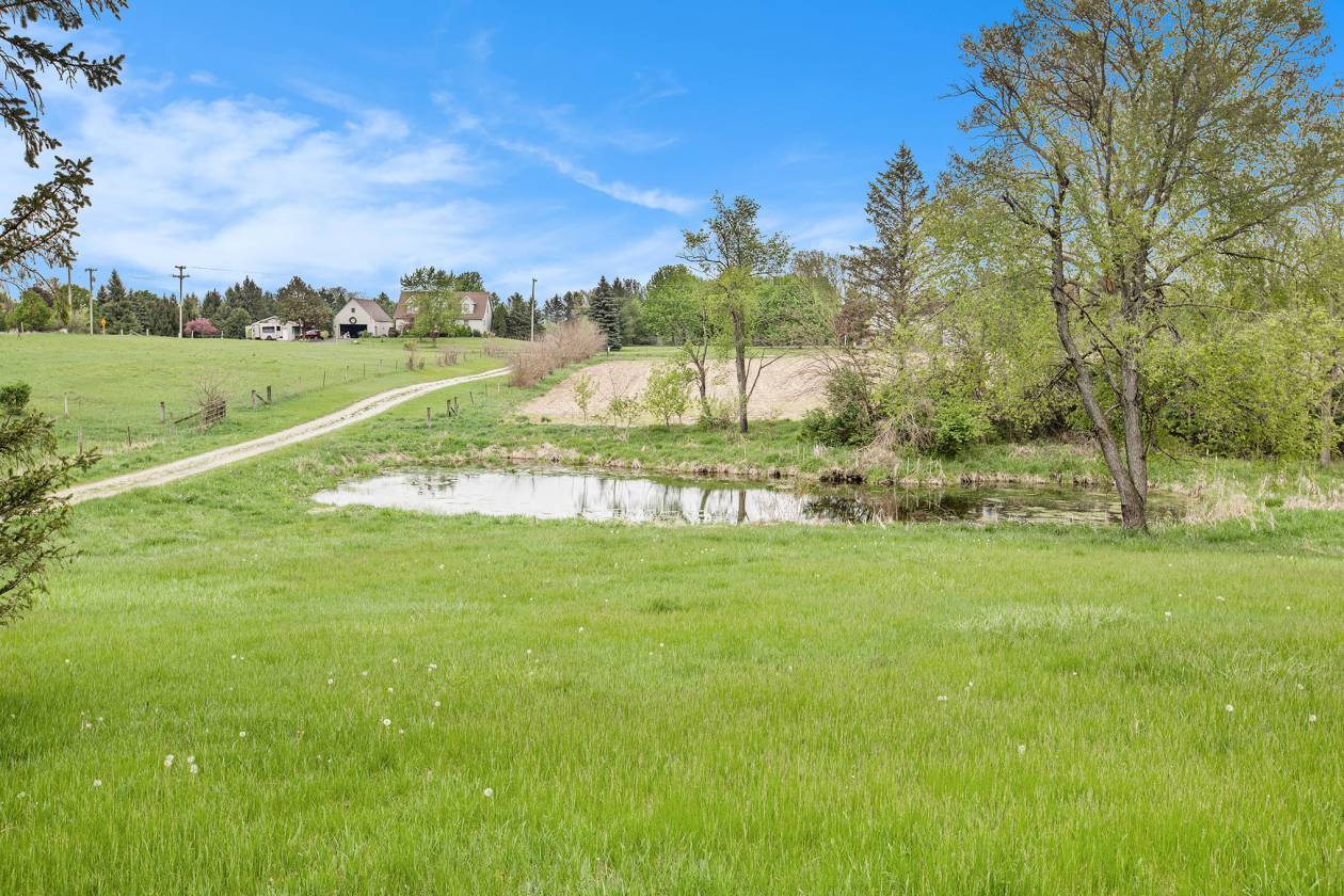 This is one-of-a-kind, incomparable property located just south of Manchester features frontage on a private lake. The panoramic water views are breathtaking from this nicely maintained ranch with 600 feet of lake frontage. Lake is electric motor only with restrictions. The property also includes a custom built 40 x 60 Morton Pole Barn with additional 16 x 45 shop space, 3 horse stalls, and multiple fenced areas for horses. The home is a 3 bedroom, 2 1/2 bath ranch and features a comfortable living room with fireplace, large kitchen and eating space, nice primary bedroom suite with attached bath, 2 good sized additional bedrooms, and a finished basement with two finished rooms.