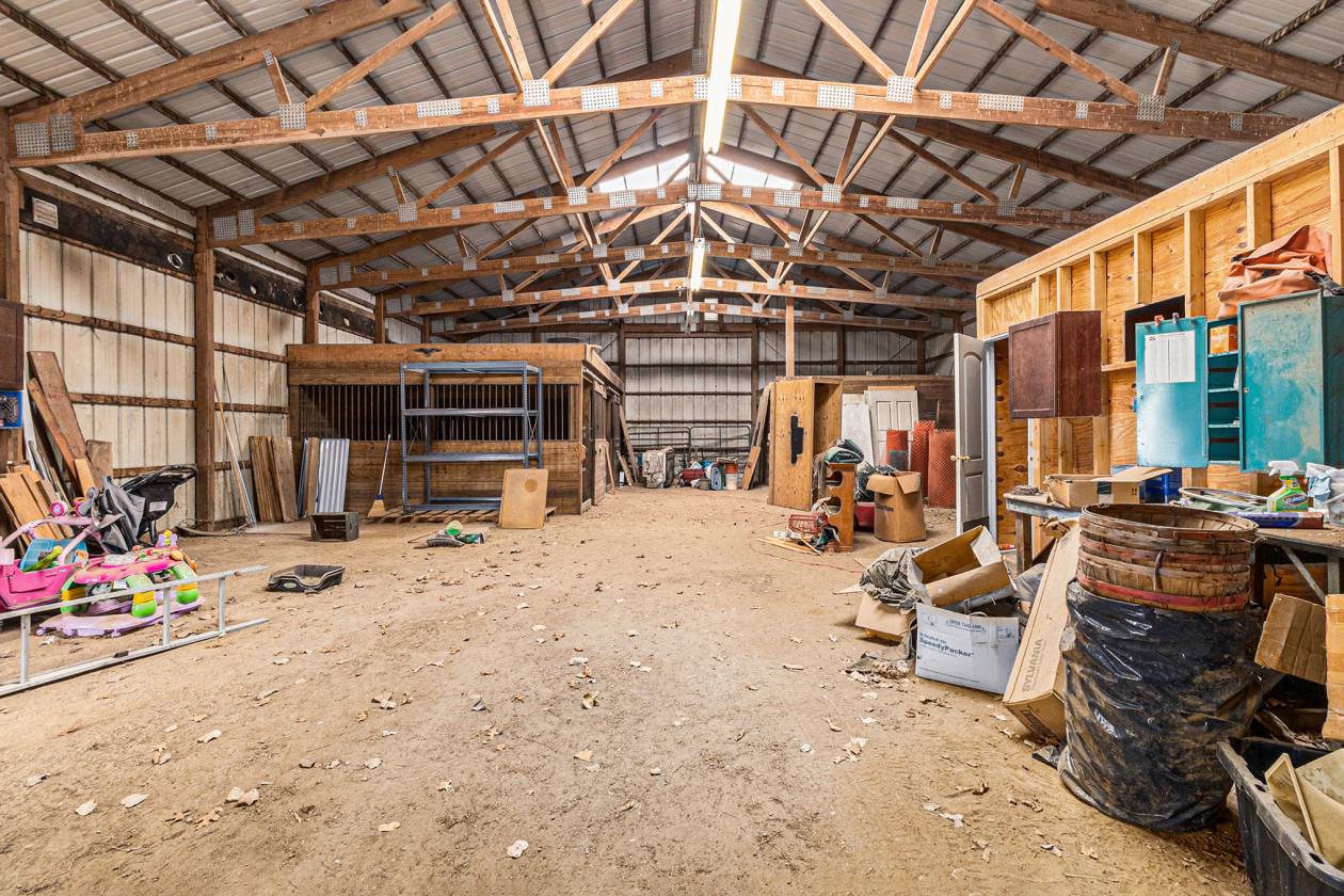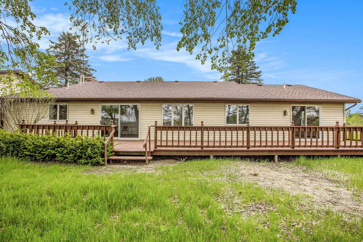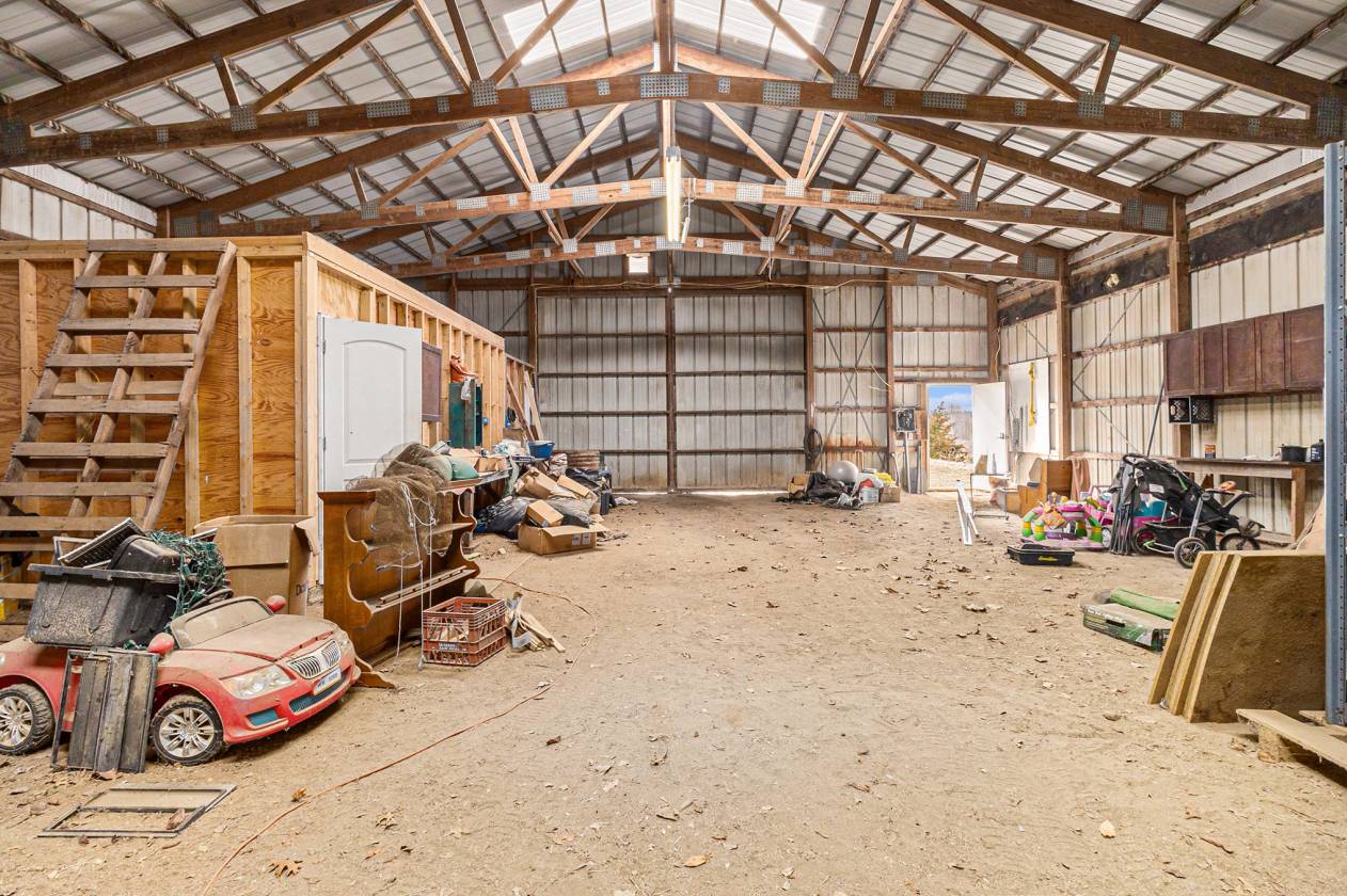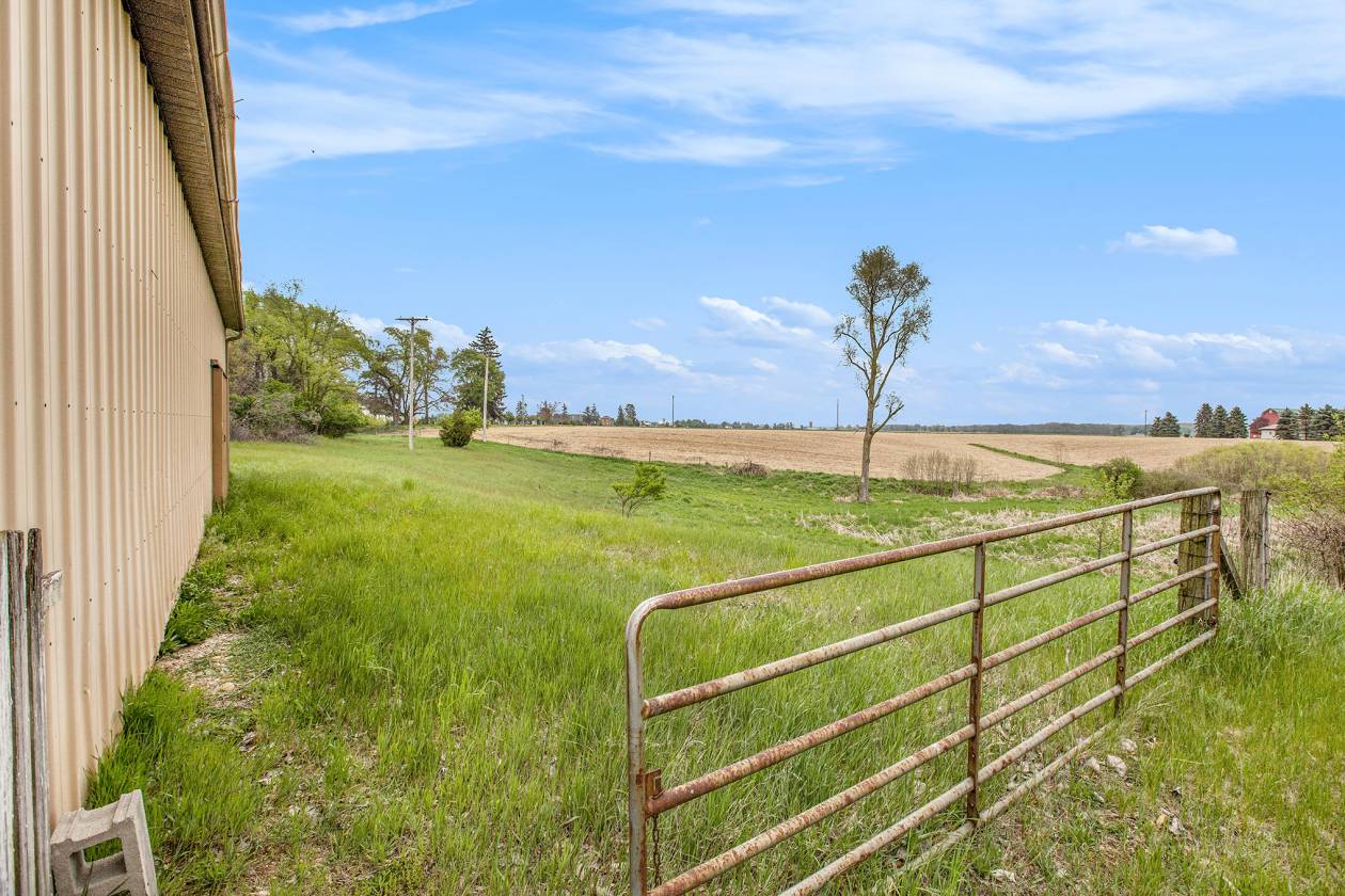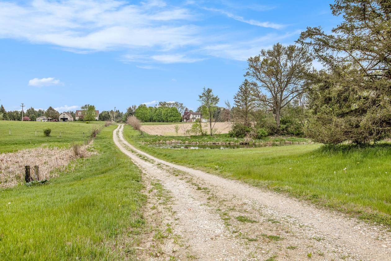 This is one-of-a-kind, incomparable property located just south of Manchester features frontage on a private lake. The panoramic water views are breathtaking from this nicely maintained ranch with 600 feet of lake frontage. Lake is electric motor only with restrictions. The property also includes a custom built 40 x 60 Morton Pole Barn with additional 16 x 45 shop space, 3 horse stalls, and multiple fenced areas for horses. The home is a 3 bedroom, 2 1/2 bath ranch and features a comfortable living room with fireplace, large kitchen and eating space, nice primary bedroom suite with attached bath, 2 good sized additional bedrooms, and a finished basement with two finished rooms.