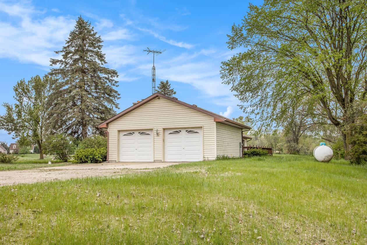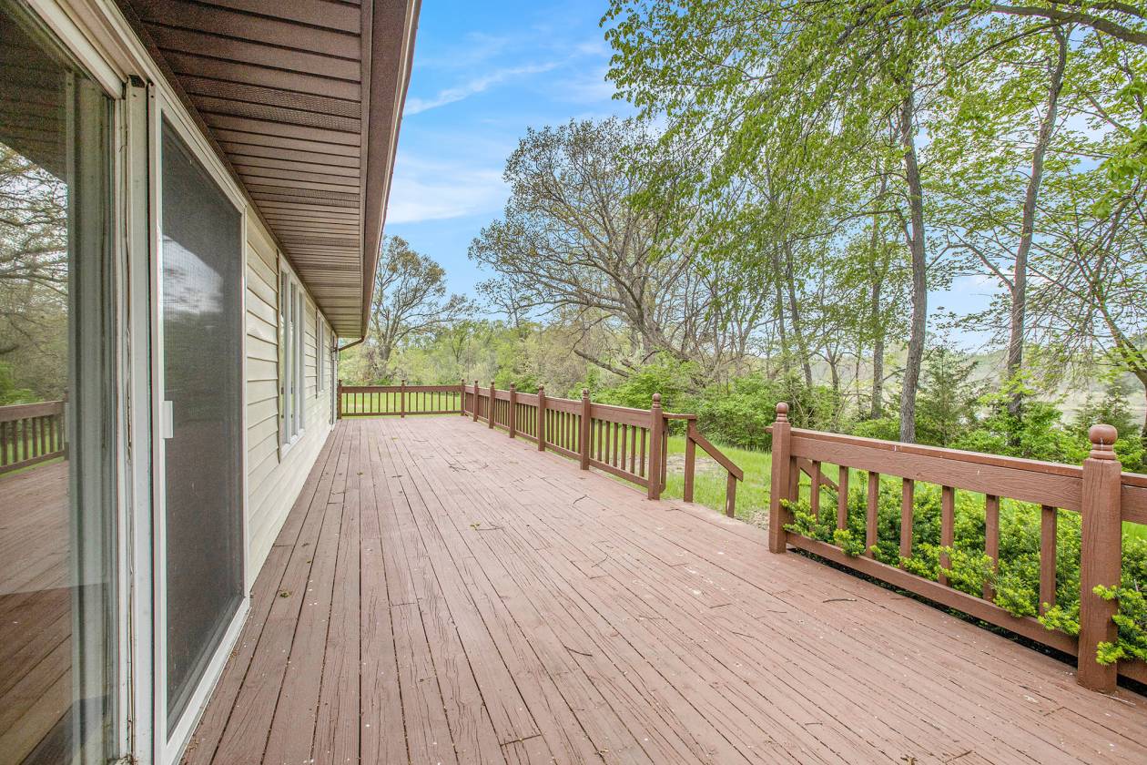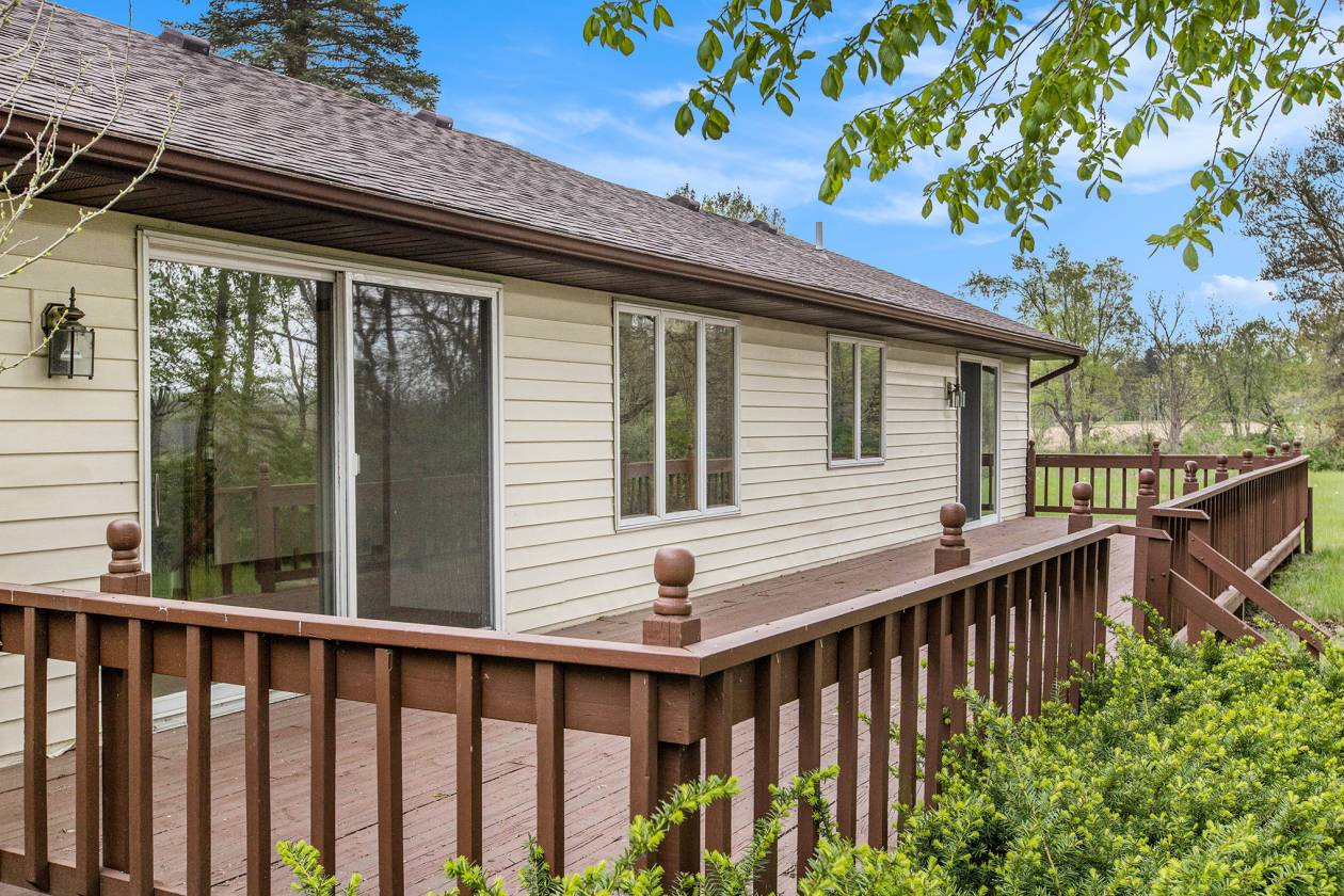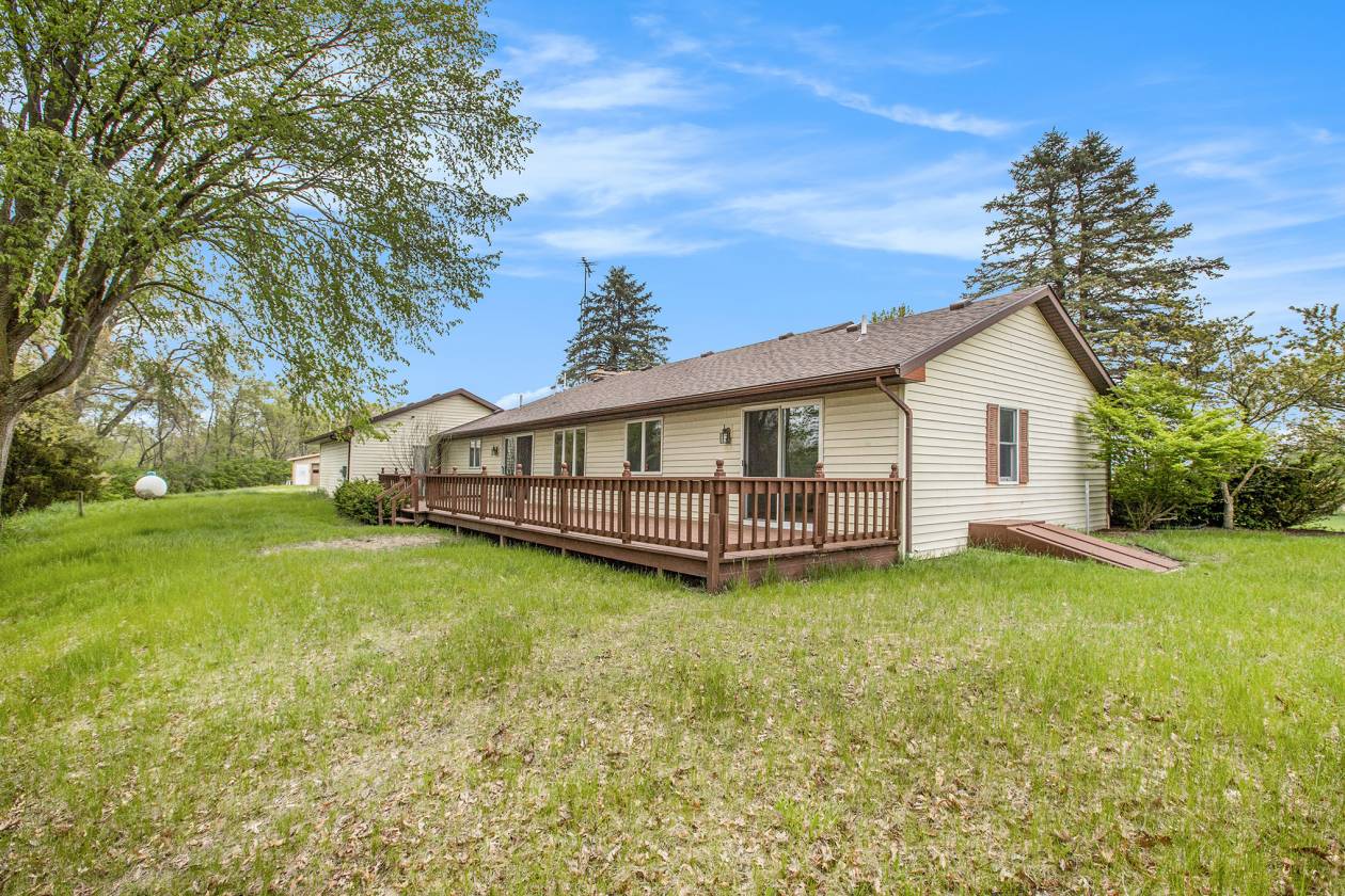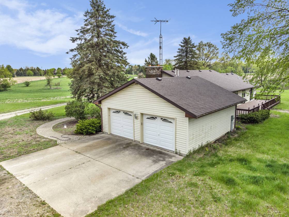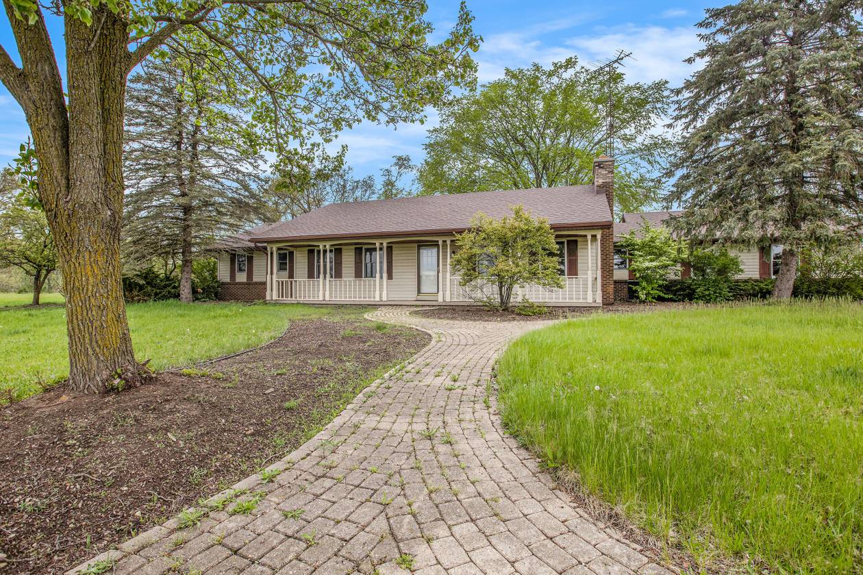 This is one-of-a-kind, incomparable property located just south of Manchester features frontage on a private lake. The panoramic water views are breathtaking from this nicely maintained ranch with 600 feet of lake frontage. Lake is electric motor only with restrictions. The property also includes a custom built 40 x 60 Morton Pole Barn with additional 16 x 45 shop space, 3 horse stalls, and multiple fenced areas for horses. The home is a 3 bedroom, 2 1/2 bath ranch and features a comfortable living room with fireplace, large kitchen and eating space, nice primary bedroom suite with attached bath, 2 good sized additional bedrooms, and a finished basement with two finished rooms.