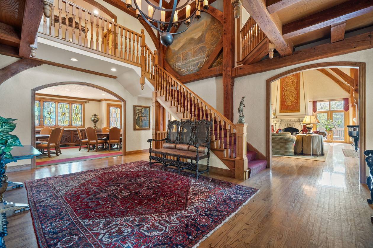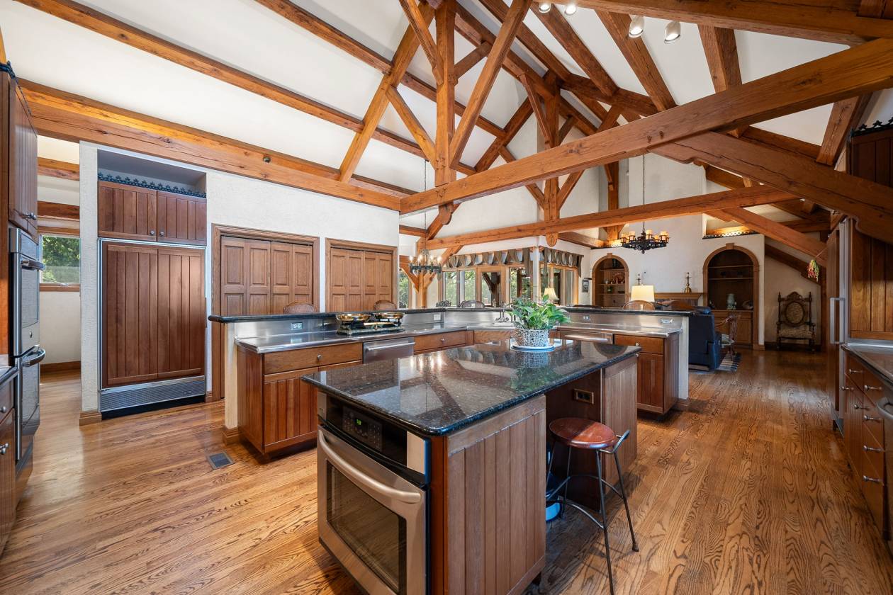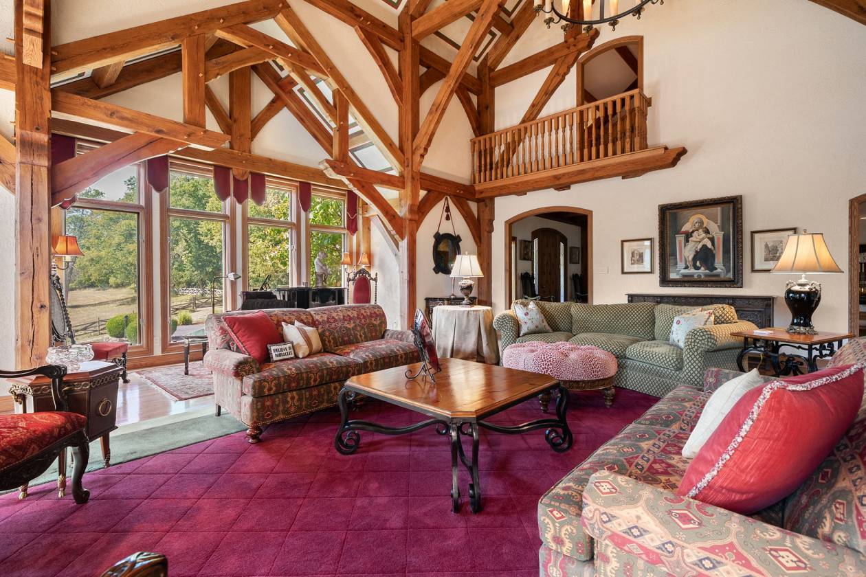 This 9-acre sanctuary offers space for every part of life. The nearly 9,000-square-foot main residence blends timeless craftsmanship with modern comfort, balancing grand entertaining spaces with cozy family living. Crafted with 22 tons of oak timber joined by wooden pegs, a detail nearly impossible to duplicate today, the home is a true work of art designed to last for generations. Inside, you’ll find seven bedrooms, six full bathrooms, and a half bath, along with welcoming gathering rooms, three fireplaces, and a flowing kitchen that anchors the home.