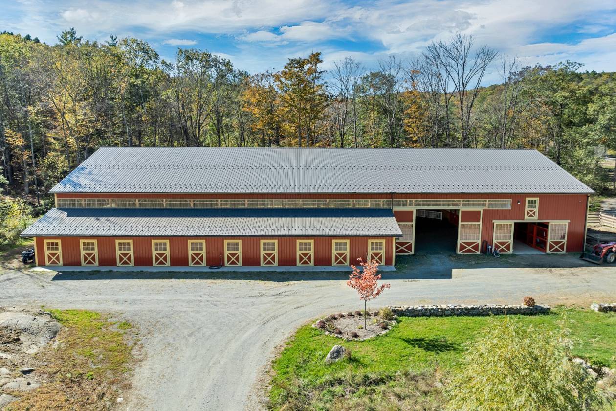 SHOOTING STAR FARM is a private, fully equipped horse facility on 57± acres of open turnout and protective woodland. Purpose-built for breeding and training, it offers turnkey infrastructure and serenity for serious equestrian pursuits—without sacrificing the creature comforts of home. It is a well-known breeding farm, raising and training fine Dutch Warmblood horses, and is set up as such. The nearly-new facility is attractive, comfortable, peaceful, and functional with an emphasis on the care and comfort of your horses, and that of your clients, visitors and students. With 28 stalls on the farm, there are many options for boarding and lessons programs or a combination of both. The farm is equi-distant (1.5 hrs) to Manchester-Boston Regional Airport, NH, or Bradley International Airport in Hartford, CT