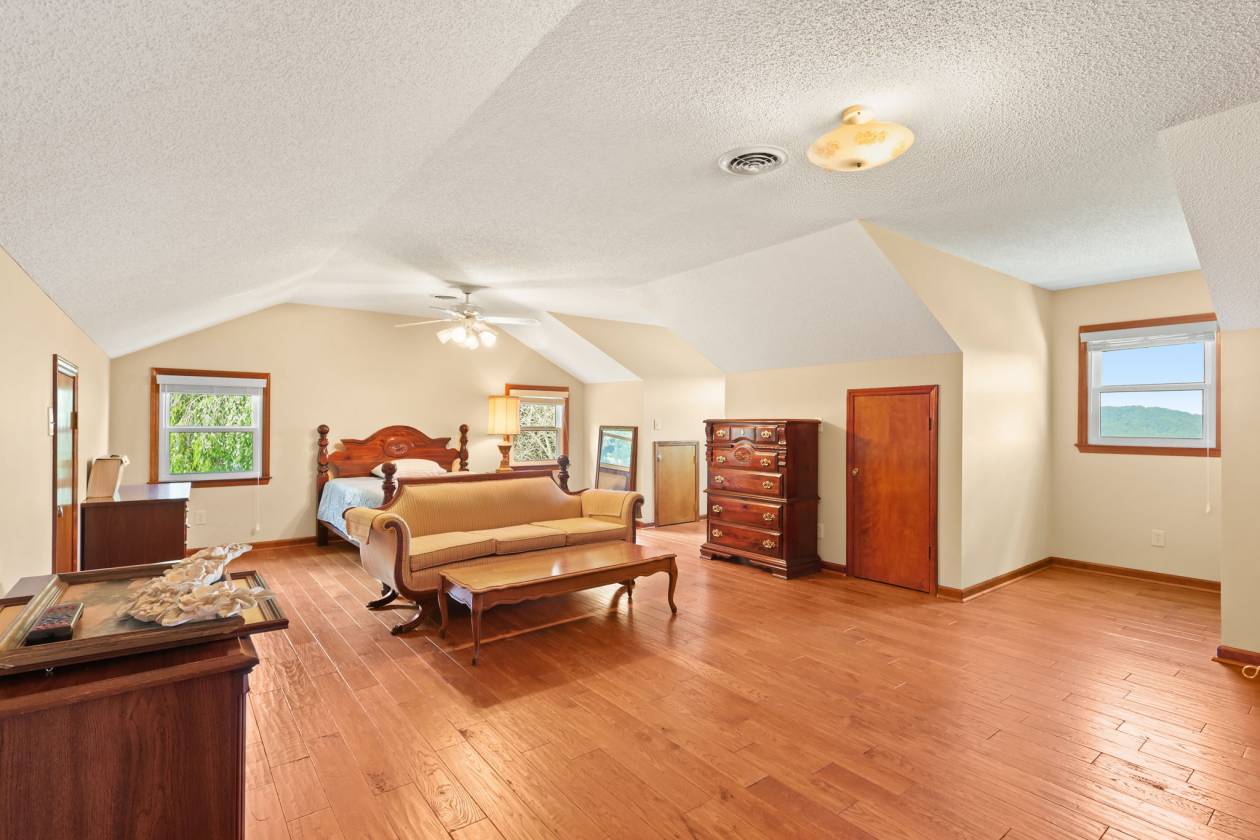 Apple Tree Farm - a rare offering of 246+ acres with a farmhouse, unfinished garage/building, storage building, two barns, and trails - with wooded acreage, sprawling pastures, and long-range, layered Blue Ridge Mountain views at high elevations. With the potential for many different uses, this is the perfect spot for a homestead, family estate/legacy property, horse property, working farm with farming opportunities, or investment opportunity with potential for development - no zoning and no restrictions! Offering easy access year-round from state-maintained roads, this property is just 15 minutes from Appalachian State University and amenities in Boone but offers ample privacy. The large farmhouse front porch is the perfect place for overlooking the green pastures, small pond, and mountains beyond - enjoy mother nature at her finest with acres and acres made for exploring and enjoying the cool Blue Ridge Mountain air! The 3 BR, 2.5 BA home, awaiting the right buyer to put their own personal touches, offers a living room, den, kitchen, and dining room on the first level - upstairs, find a large primary suite, two additional bedrooms, a full bath, and multiple bonus rooms. Additional features: central vacuum, recently replaced windows throughout, wormy chestnut kitchen cabinets, four garage bays, full basement with bathroom, high-speed internet. The farmhouse would also make a great guest home, with the opportunity to build on the acreage! The unfinished garage/building was originally intended as a garage with an apartment above and offers four additional garage bays. An open-air storage building is great for equipment or vehicle storage, and a large usable barn offers even more potential. Apple trees & wildflowers surround the farmhouse and a trail system runs through parts of the wooded acreage to pasture areas. The serenity of Apple Tree Farm lasts year-round with pastoral and sunset views overlooking the majestic Blue Ridge Mountains!