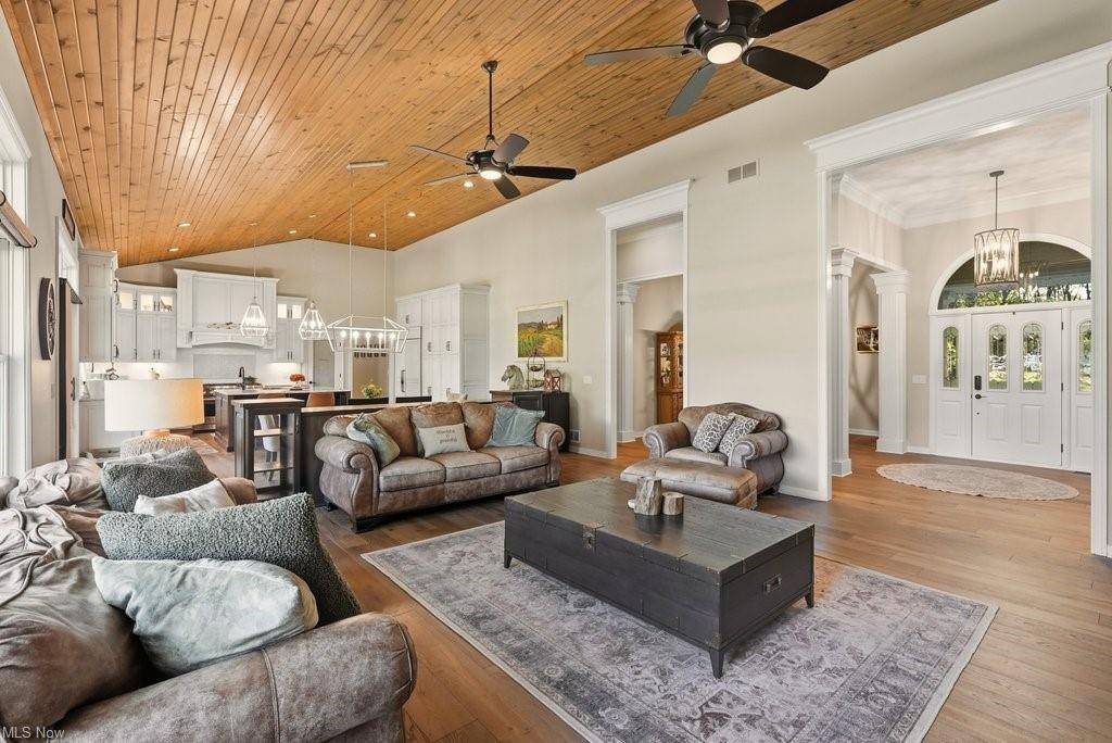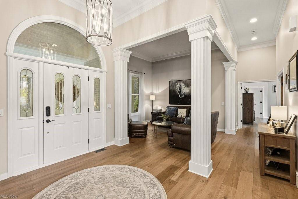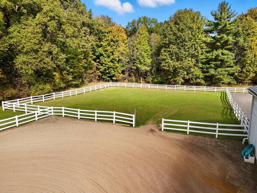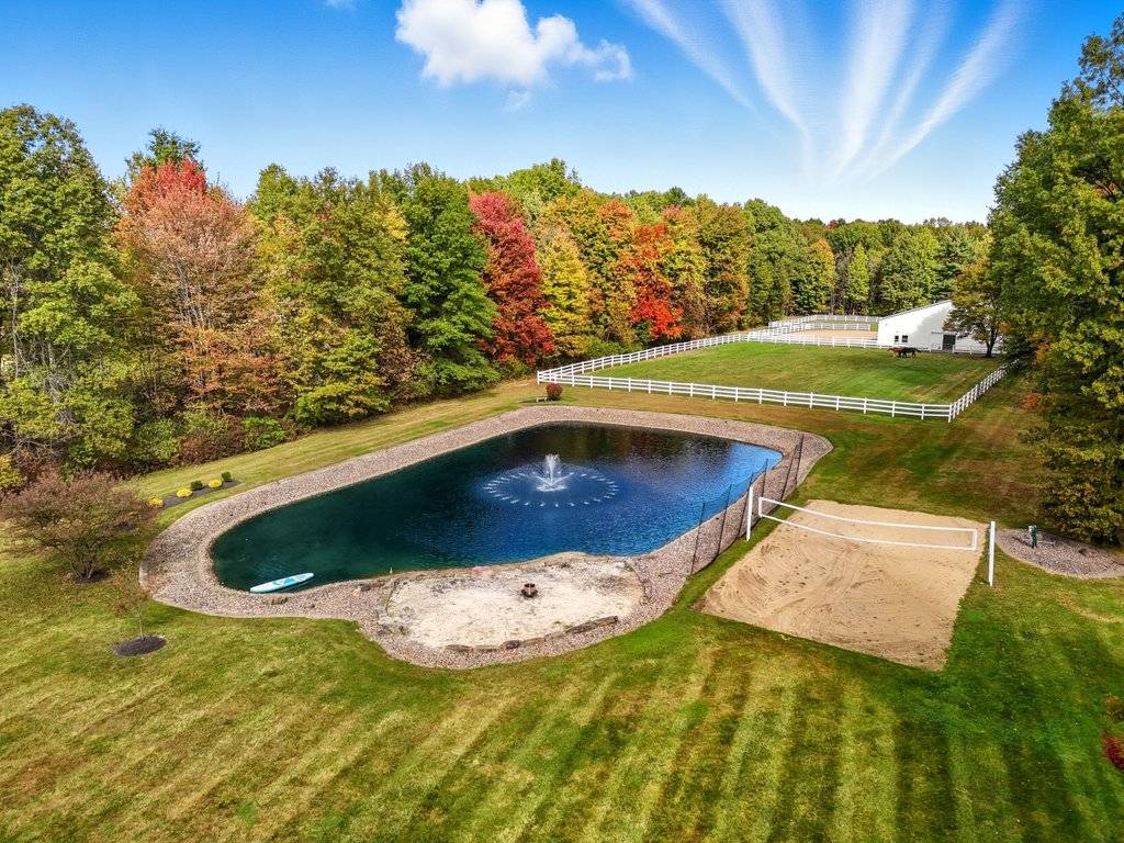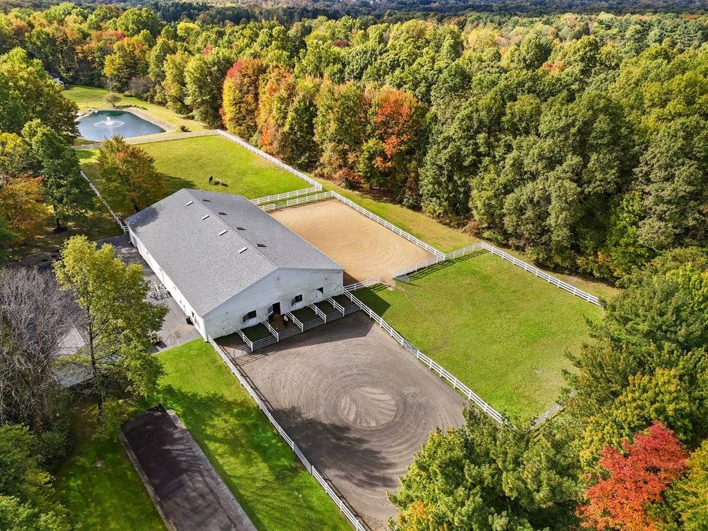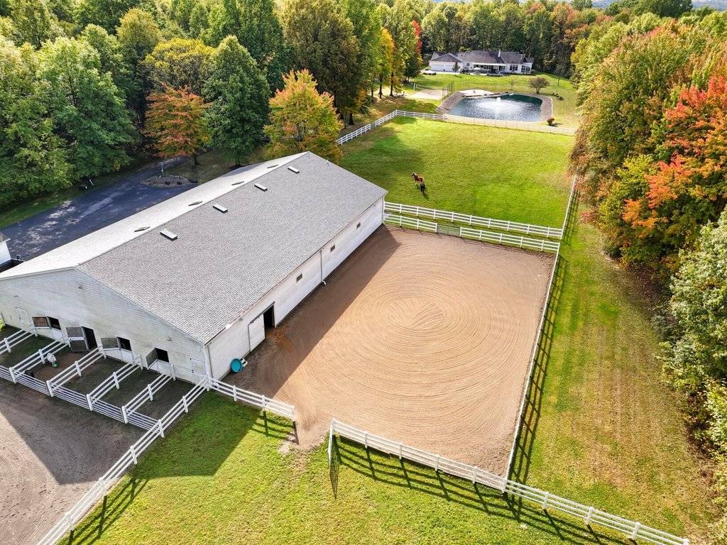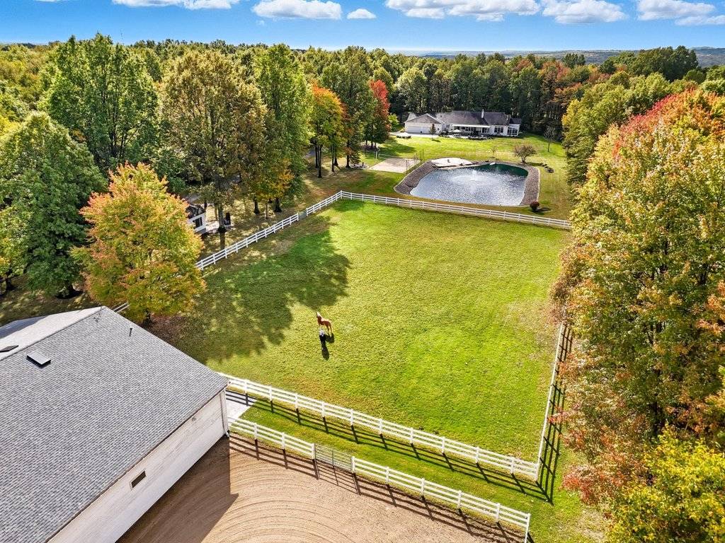 Nestled within the breathtaking beauty of Cuyahoga Valley National Park lies a rare opportunity to own a secluded 18.22-acre custom brick ranch estate. This remarkable property combines timeless craftsmanship, modern updates, and unparalleled privacy—all surrounded by the serenity of protected parkland. Fully renovated in 2021, the home exudes elegance with custom crown molding and soaring wood-paneled ceilings throughout. The gourmet kitchen is a chef’s dream, featuring Wolf appliances, a Sub-Zero refrigerator, Cambria quartz countertops, and a spacious walk-in pantry. The primary suite offers a luxurious private retreat, complete with heated floors and an expansive walk-in closet. Step directly from the bedroom into a heated, sun-filled greenhouse, perfect for year-round enjoyment. The lower level is designed for relaxation and entertainment, offering a full kitchen, living area, theater room, fitness space, full bathroom and 3 additional rooms ideal for bedrooms or storage. Outdoor living is equally exceptional. A spacious patio with a built-in gas grill and firepit overlooks a tranquil pond with a lighted fountain, creating the perfect backdrop for gatherings. Car enthusiasts will love the six-car garage with lift that's negotiable, ample storage, and a separate two-car garage. The octagonal pavilion provides a charming setting for entertaining family and friends. For the avid equestrian, this property is second to none. The custom barn includes 6 matted 12x12 stalls w/ Dutch doors and run-ins, 2 pastures (two acres fenced, expandable to six), and an 80x80 indoor riding arena complete with viewing room, laundry, and full bath. 2 outdoor riding arenas- 72x120 outdoor arena with limestone all-weather footing, hot/cold wash rack, & 700-bale hay loft ensure that every detail is designed for serious riders. Scenic wooded trails wind through the back of property! A truly rare property. Homes like this seldom come available!