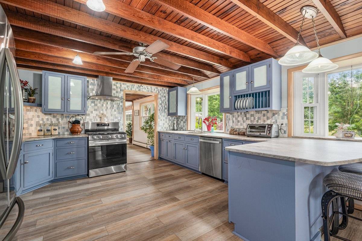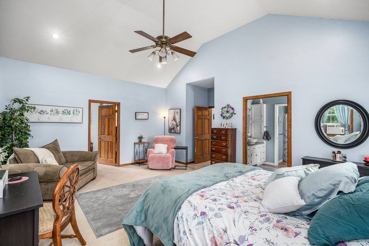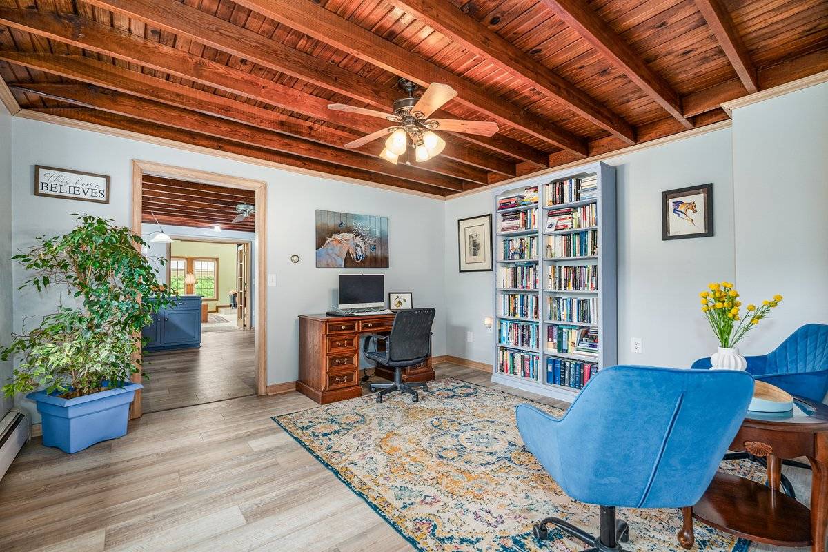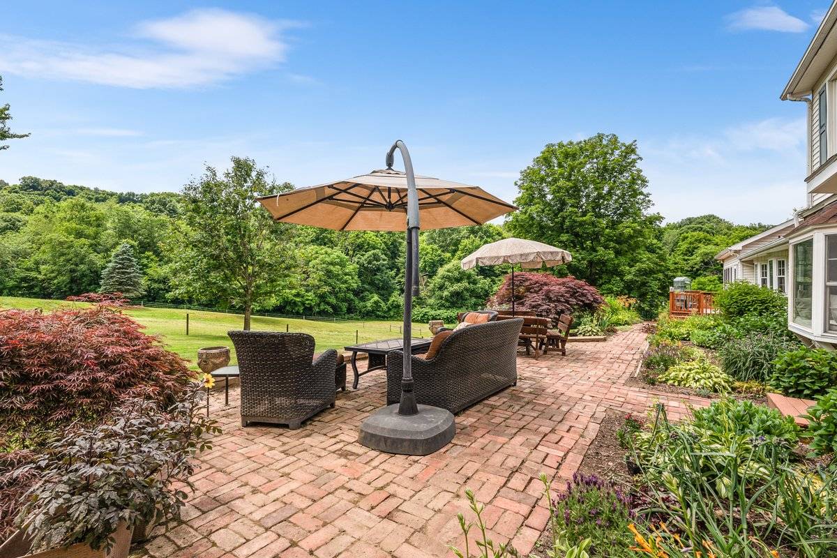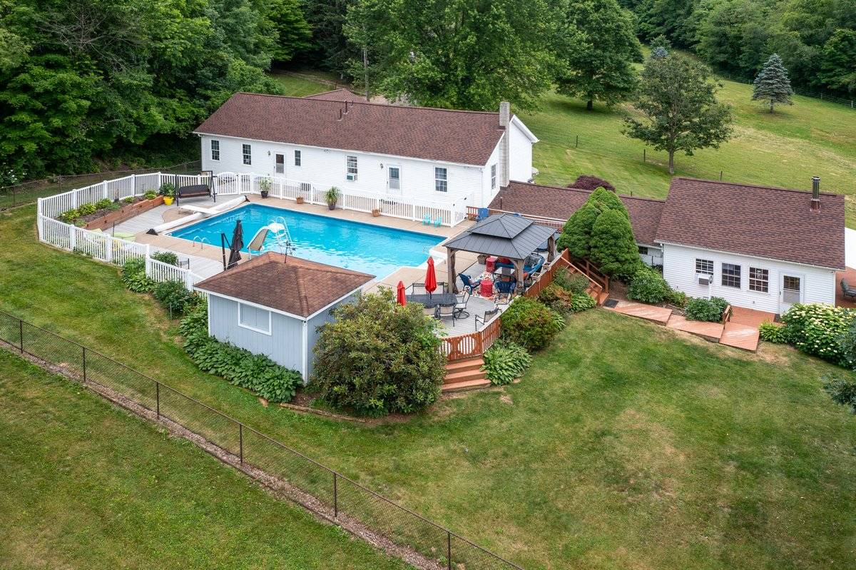 Exceptional 35-acre equine facility is a true haven for horses & their owners. The 5-bed, 2 full & 1 half bath home features a 2023 roof. Kitchen renovation w/ leathered granite countertops. 2.5 car attached garage. The centerpiece is the incredible barn w/ a 72x140 INDOOR ARENA boasting 20' ceilings, hemlock wood walls 40 windows for light, foam/sand footing, sound barrier metal roof & LED lighting. Barn amenities: covered porch, handicap accessible equine therapy lounge w/ arena views & 5' horse access door, kitchen, tongue/groove wood ceilings/walls, 72x42 stall area, feed & tack rooms. Outside amenities: 20x40 in-ground pool, 65x135 OUTDOOR ARENA, 16 fenced acres w/electric heated waterers in every pasture. The idyllic upper pastures connect to a 5-trail, 15-acre wooded trail system for fantastic trail riding experiences. Additional highlights include a 32x41 pole barn w/ utilities & a picturesque 1-acre spring-fed stocked pong.