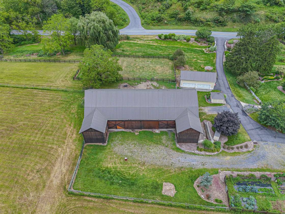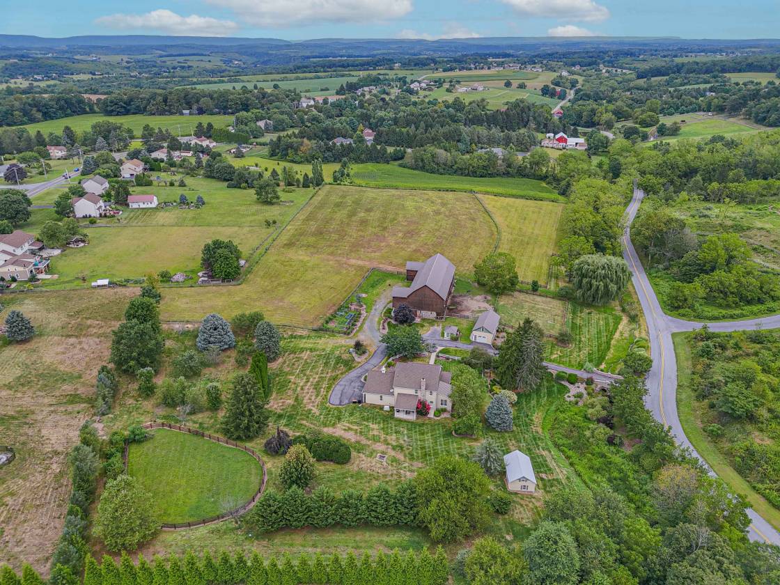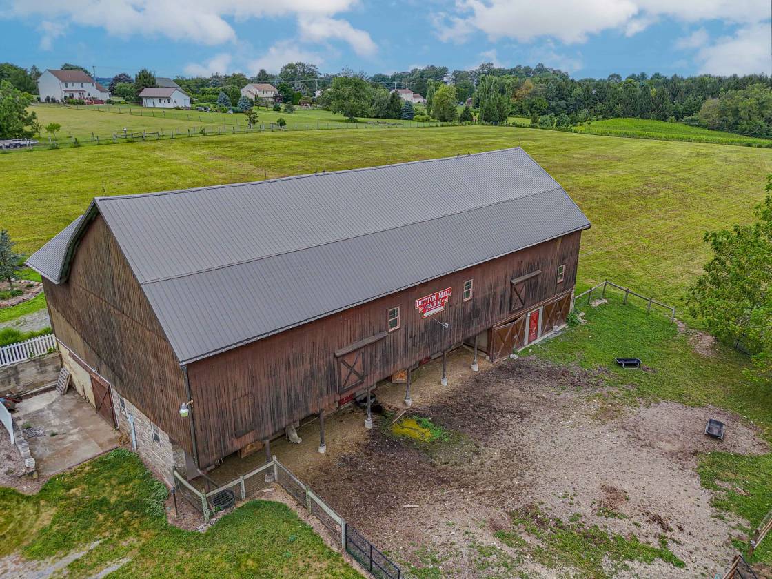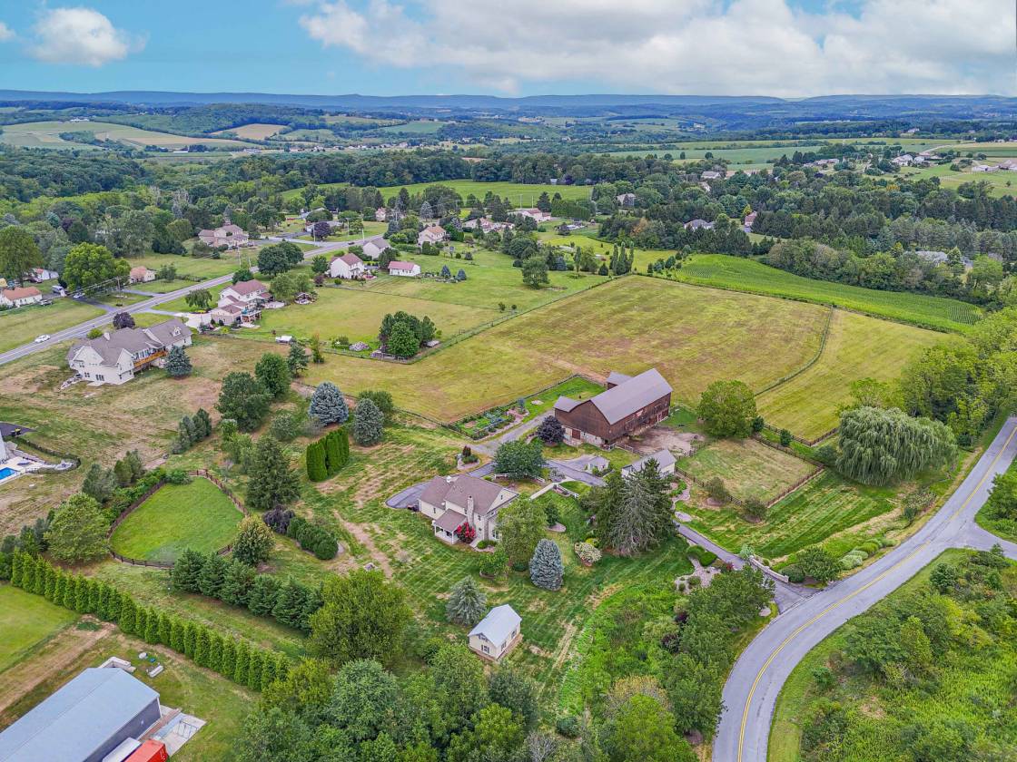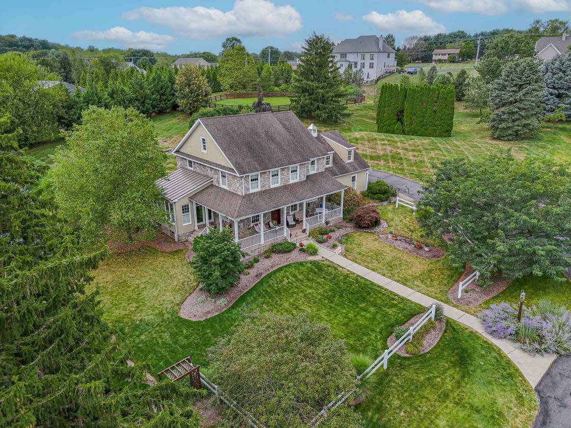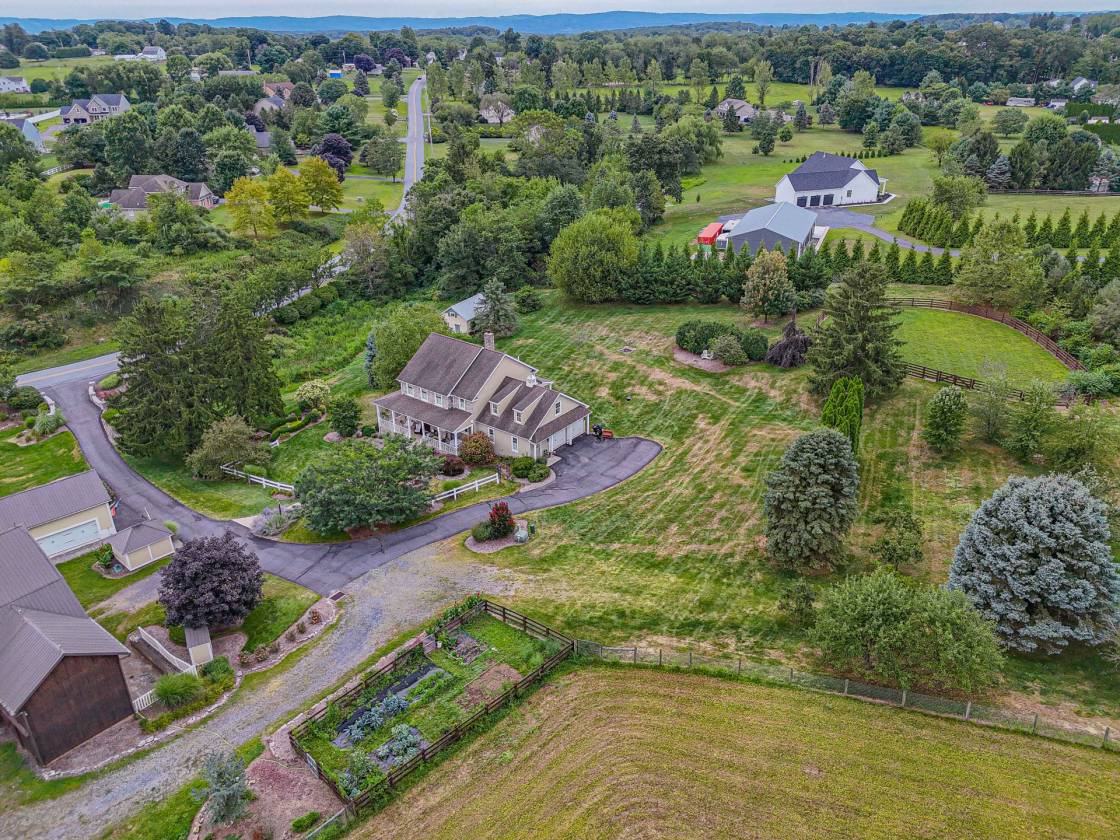Welcome to Dutton Mill – A Modern Farmhouse Retreat in Fogelsville nestled on 10 manicured acres. The 3,200 sq ft. home features 4 bedrooms, two are primary suites, and 3.5 baths, built in 2010 and fully renovated with meticulous attention to detail. Step inside to discover a light-filled interior with soaring 16-foot ceilings where classic farmhouse character meets contemporary design. The open-concept main level is flooded with natural light & features a spacious living area w/ a gas fireplace set in stone with a reclaimed red oak beam mantel from the original barn, a sunroom and dining area. The chef’s kitchen is a true centerpiece boosting weathered granite island, s/s appliances, a Viking 6 burner gas stove, handcrafted backsplash, rustic brick flooring, & a spacious walk-in pantry, perfect for everyday meals & entertaining. Outdoors, the wraparound front porch invites you to start your day w/ sunrise views, while the private covered back patio off the first-floor primary suite offers a serene space to unwind w/ picturesque farm vistas. For equestrian enthusiasts or hobby farmers, the property is fully equipped w/ a 3-stall barn, fenced pastures, a riding ring, and dedicated pump house—making it a true working farm. Attached 2-car garage + 4-car detached garage. Surrounded by mature landscaping, a stream, manicured gardens & a fruit orchard. Dutton Mill presents an exceptional opportunity to embrace peaceful rural living without compromising on modern comforts.