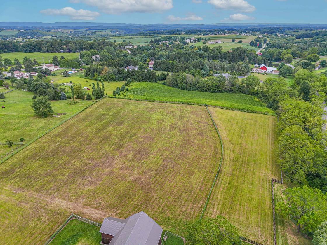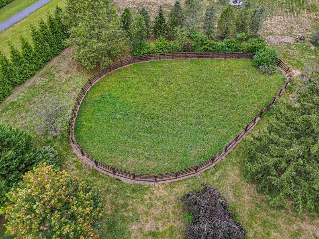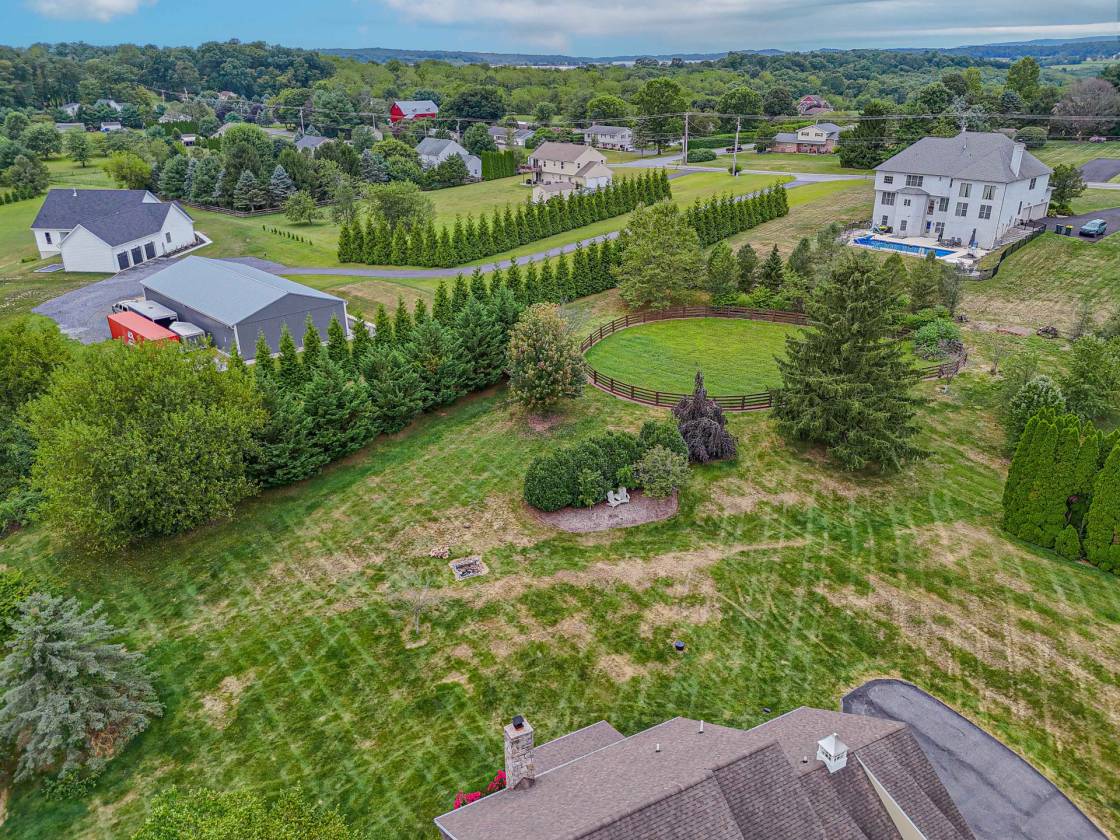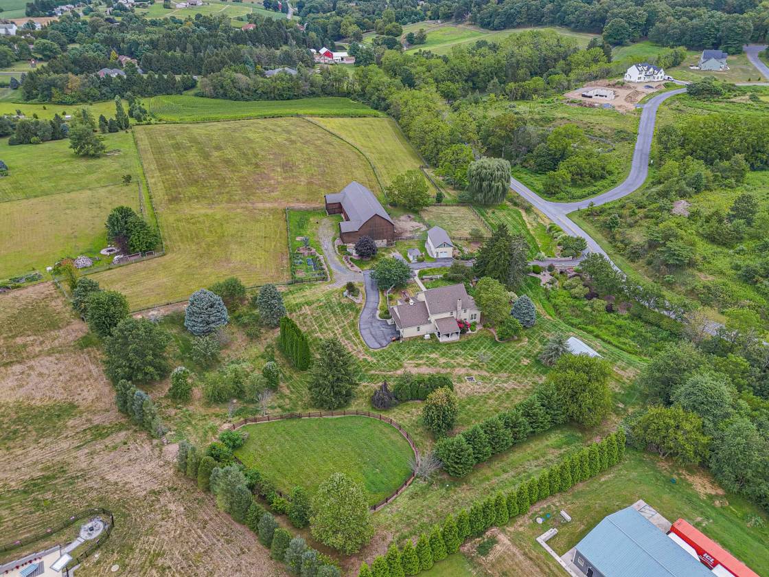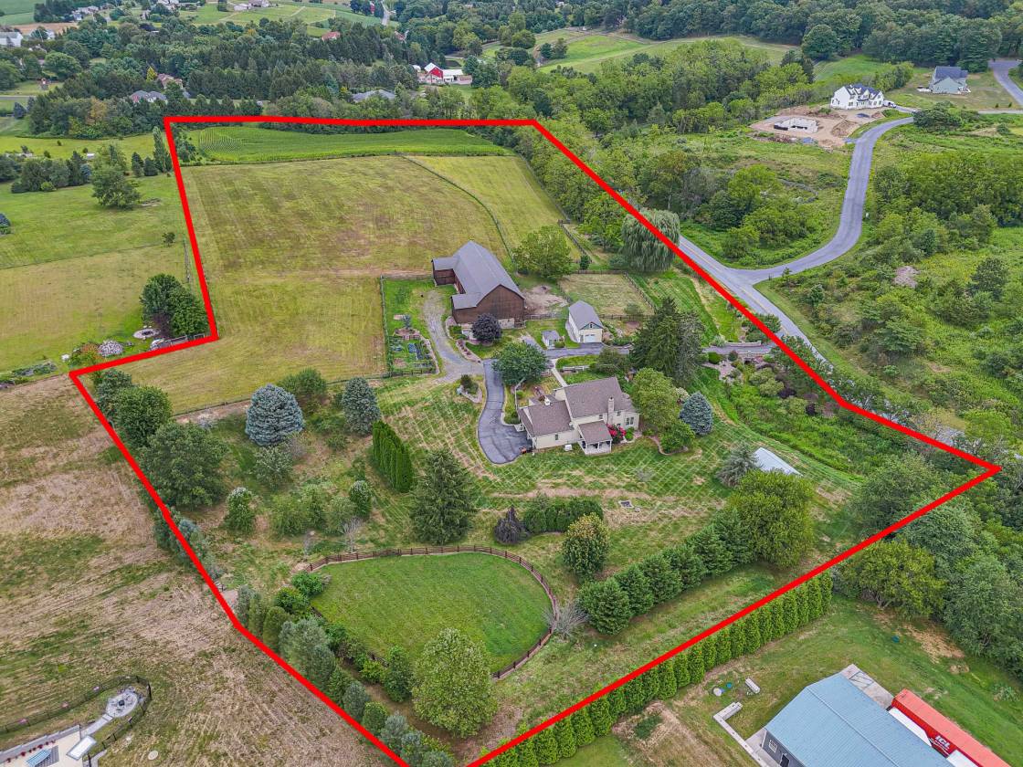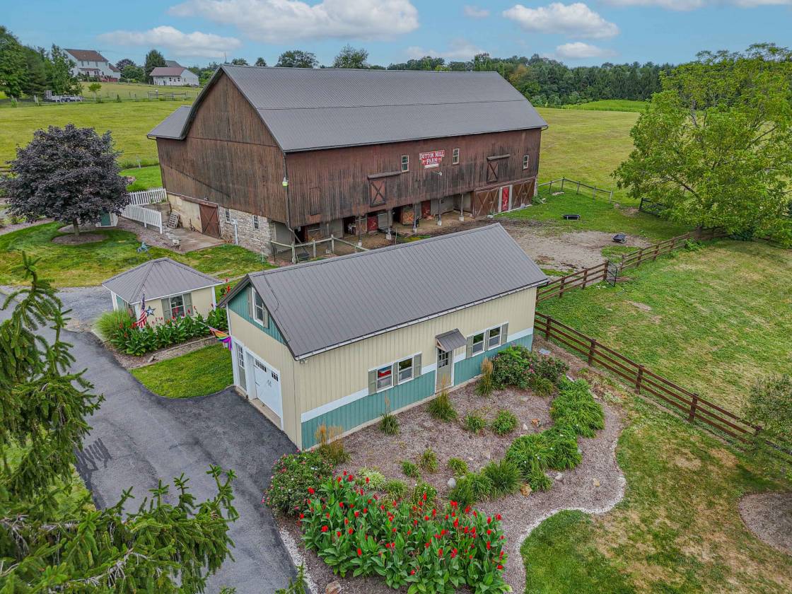 Welcome to Dutton Mill – A Modern Farmhouse Retreat in Fogelsville nestled on 10 manicured acres. The 3,200 sq ft. home features 4 bedrooms, two are primary suites, and 3.5 baths, built in 2010 and fully renovated with meticulous attention to detail. Step inside to discover a light-filled interior with soaring 16-foot ceilings where classic farmhouse character meets contemporary design. The open-concept main level is flooded with natural light & features a spacious living area w/ a gas fireplace set in stone with a reclaimed red oak beam mantel from the original barn, a sunroom and dining area. The chef’s kitchen is a true centerpiece boosting weathered granite island, s/s appliances, a Viking 6 burner gas stove, handcrafted backsplash, rustic brick flooring, & a spacious walk-in pantry, perfect for everyday meals & entertaining. Outdoors, the wraparound front porch invites you to start your day w/ sunrise views, while the private covered back patio off the first-floor primary suite offers a serene space to unwind w/ picturesque farm vistas. For equestrian enthusiasts or hobby farmers, the property is fully equipped w/ a 3-stall barn, fenced pastures, a riding ring, and dedicated pump house—making it a true working farm. Attached 2-car garage + 4-car detached garage. Surrounded by mature landscaping, a stream, manicured gardens & a fruit orchard. Dutton Mill presents an exceptional opportunity to embrace peaceful rural living without compromising on modern comforts.