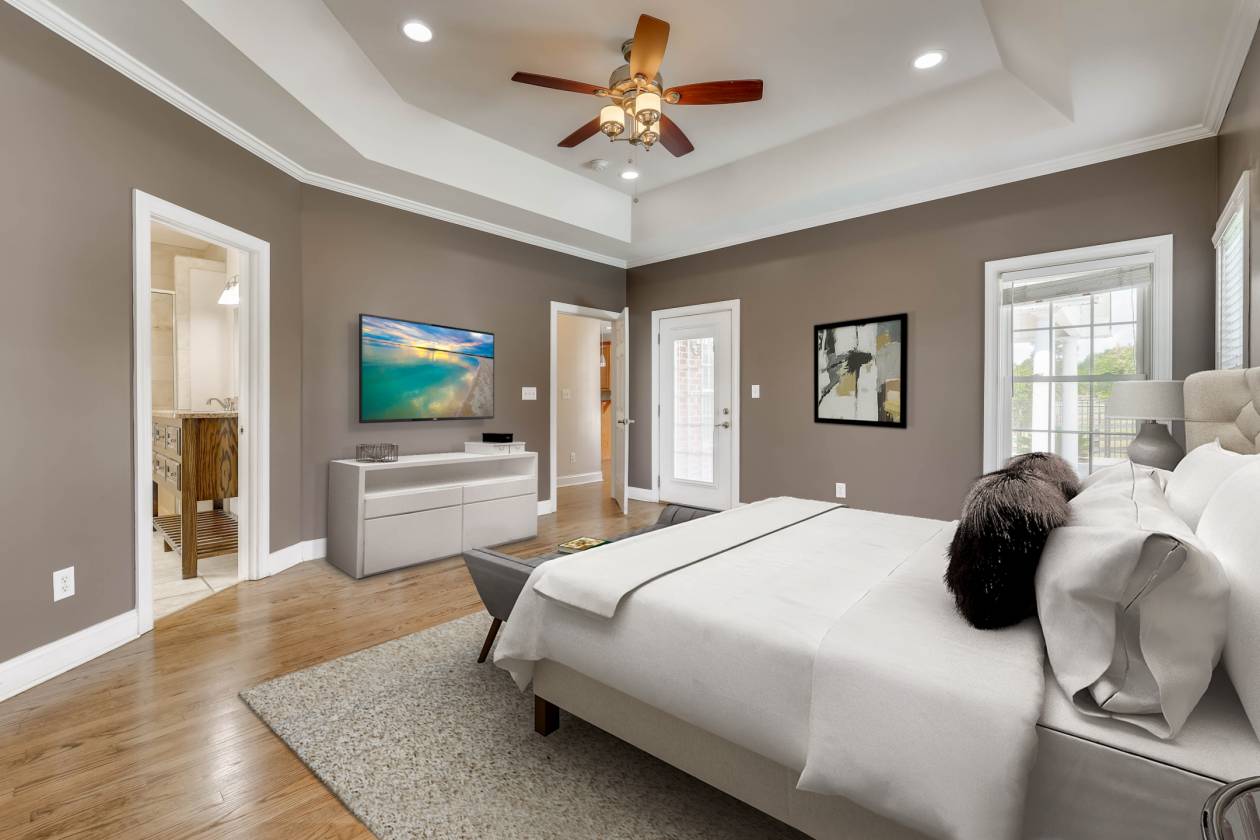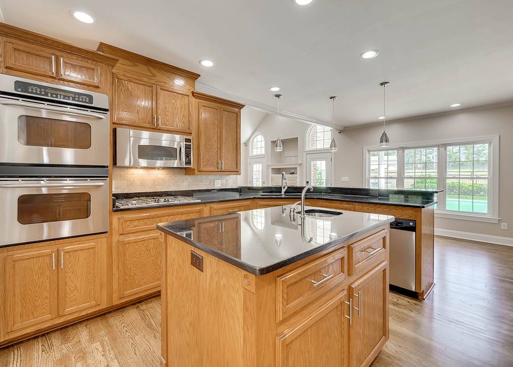 This recently updated, 2008 custom built, two-story brick home is impeccably crafted and features a beautiful light-filled open concept floor plan and vaulted ceilings. The chef’s kitchen features stainless appliances, granite countertops, ample storage with a breakfast bar and wine cooler and convenient island with second sink, power and more storage.