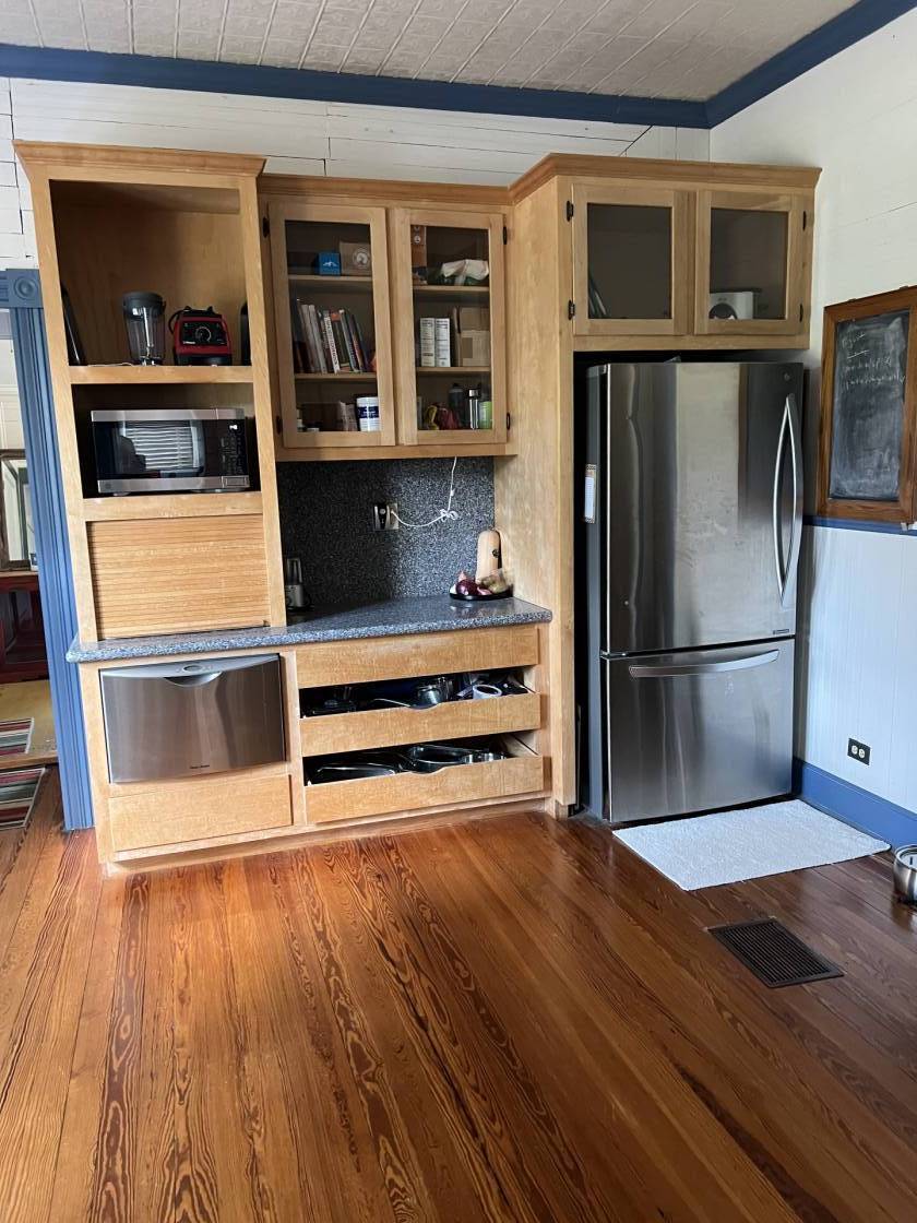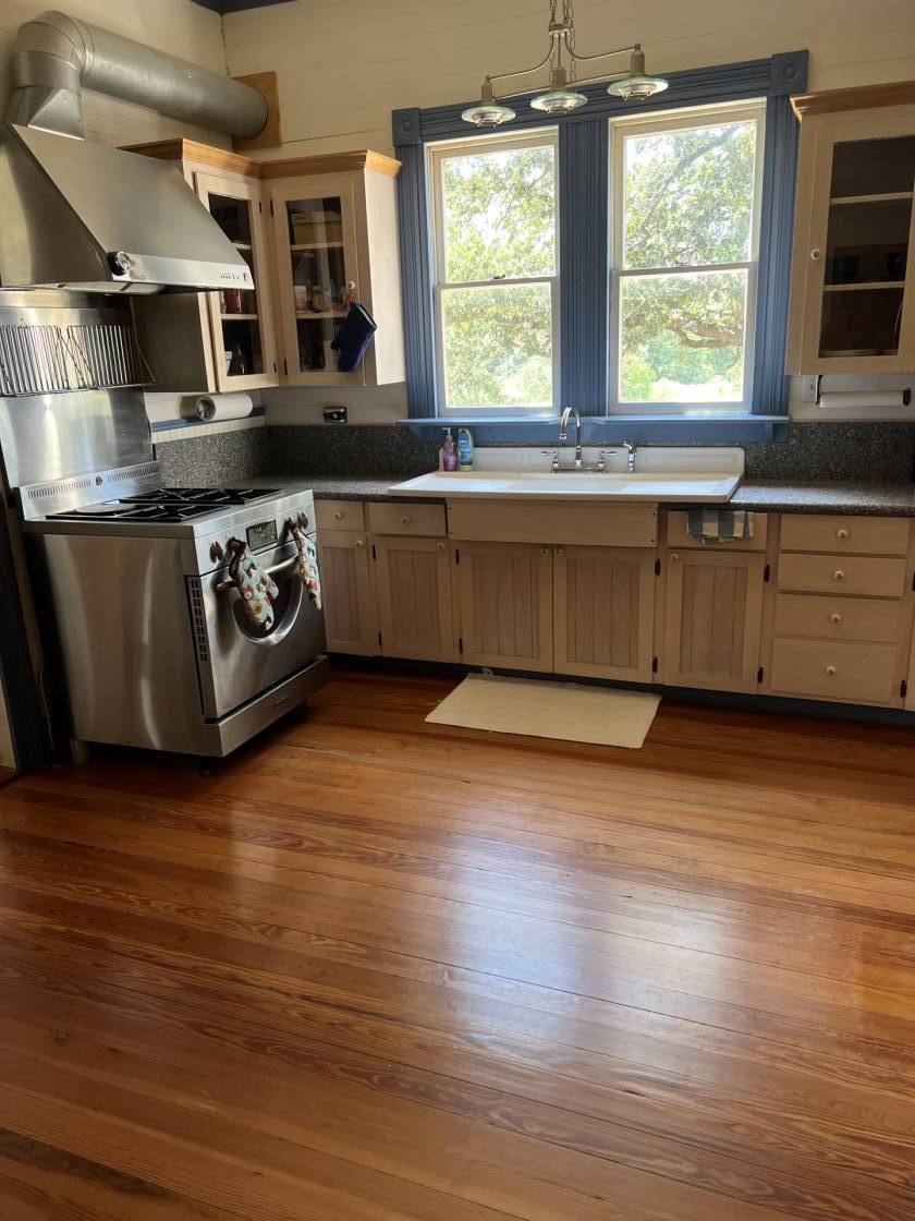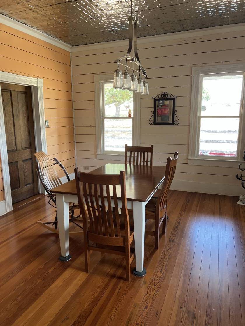Beautiful historic 2 story home with 3 BR plus huge bonus room, 2 full baths, covered porches on 2 sides, Canadian red cedar shingles, standing seam roof, windows in every room, hardwood floors, spacious kitchen with custom built-ins 3 walls, Silestone counters, 9 1/2' ceilings. Sturdy oak/wire lined yard- 3 car Steel Carport. City water.