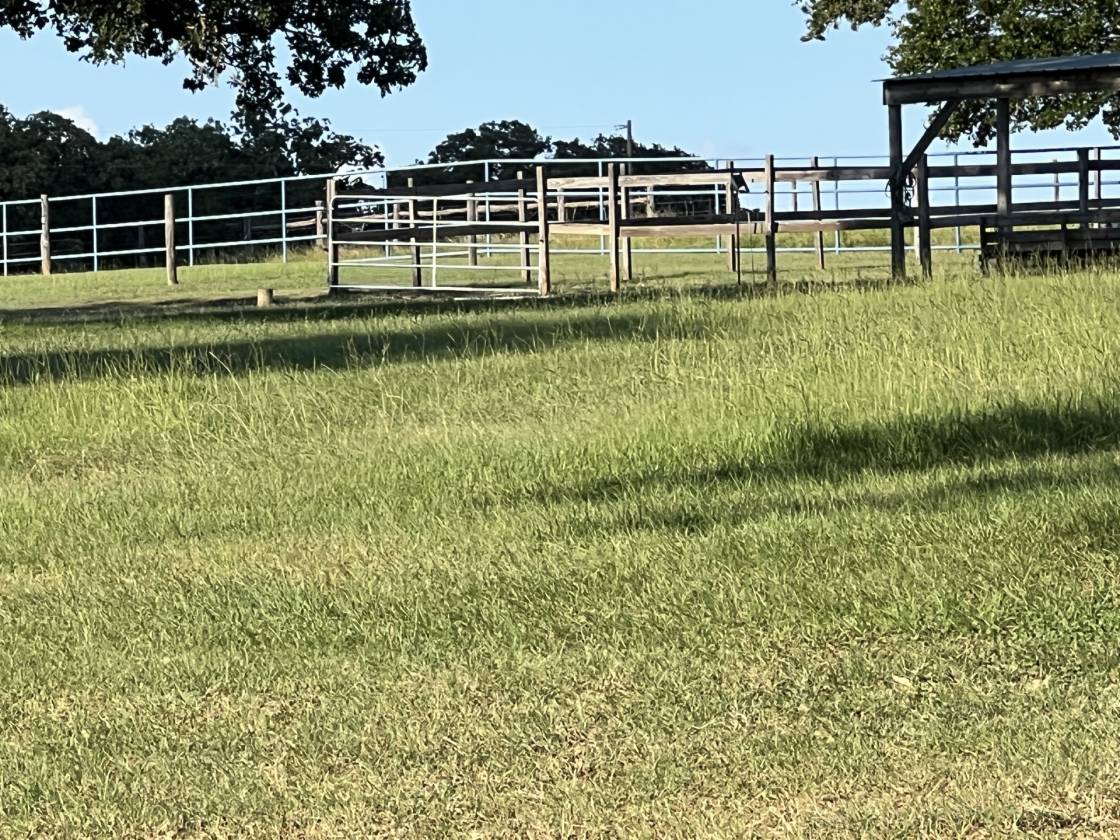 • Beautiful 18+ acres pipe fence at road and new 5 strand extra tall flat wire in back. Posts in place for turnouts near barn. No-chemical native grasses everywhere. Wood fenced rectangular arena. Surrounded by quiet neighbors and some happy cows. Large shade trees in pasture and wooded area where deer flourish. - a mile from city riding arena.