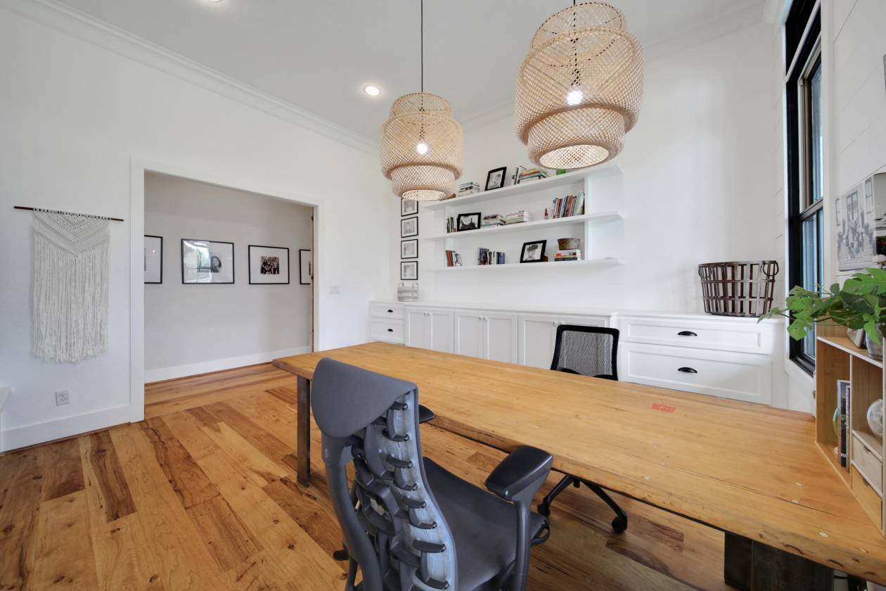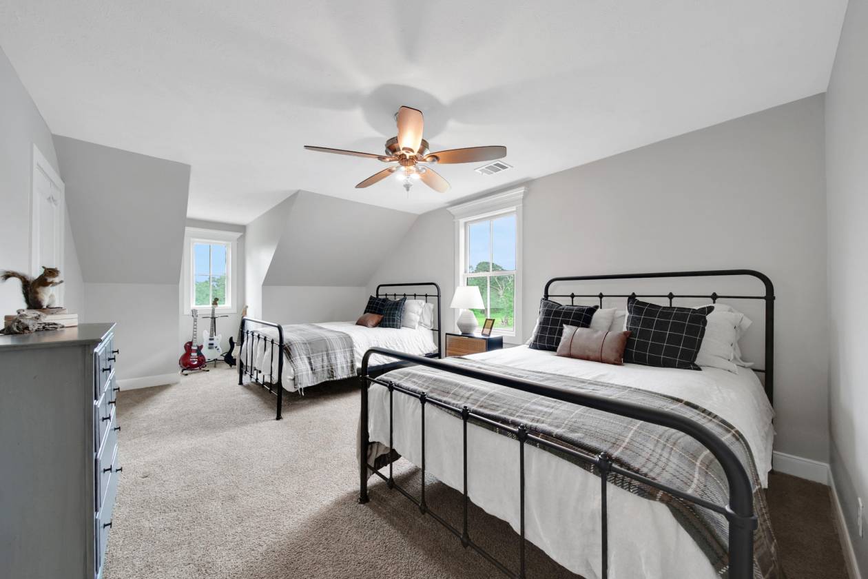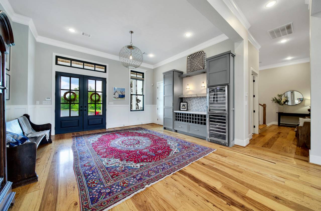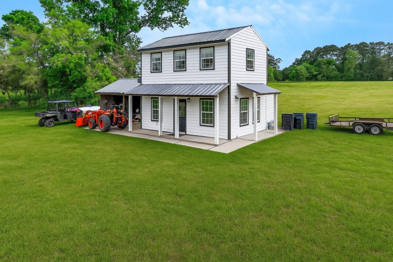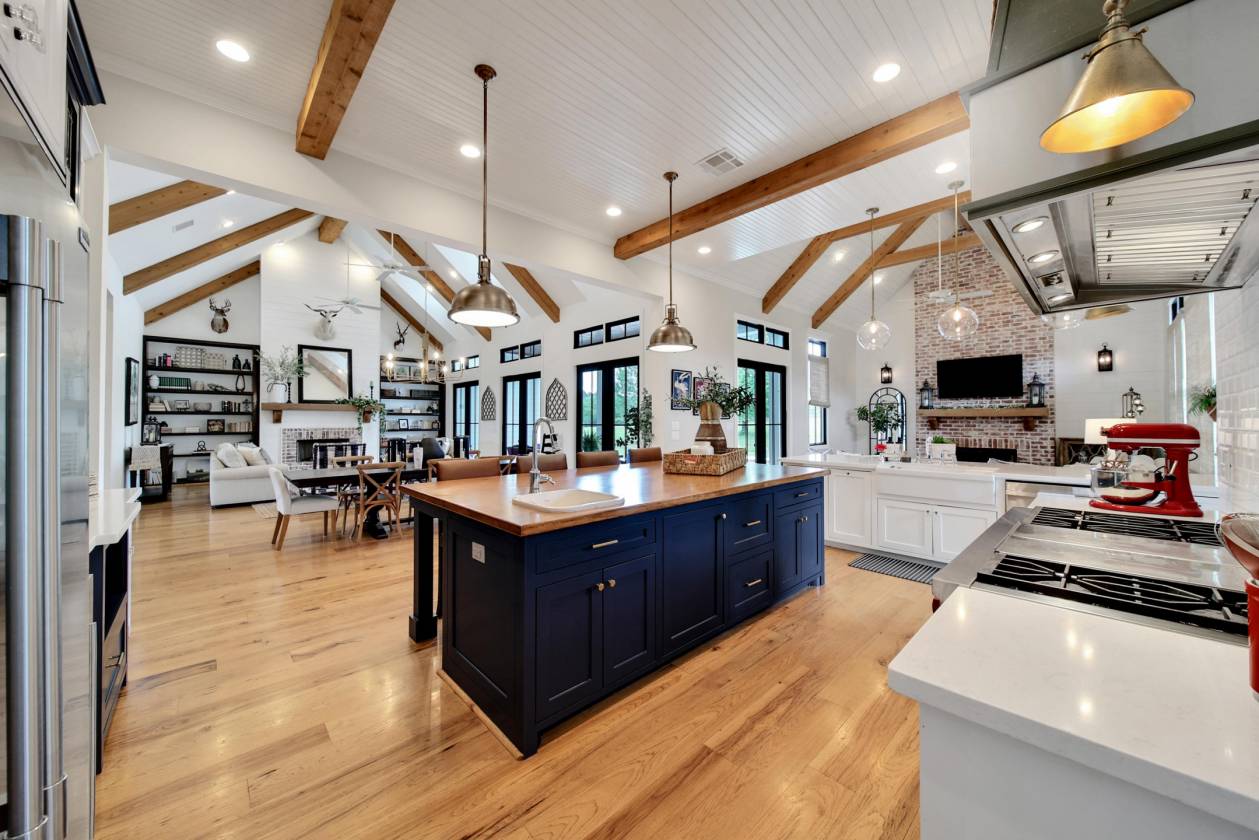 Experience luxury country living on 13.7 acres in this breathtaking custom home, ideally located near top-rated schools, shopping, and restaurants. Greet each day with peaceful pond views from the expansive front porch, then step inside to a light-filled open layout with soaring ceilings, exposed cedar beams, black-frame windows, and rich hickory hardwood floors. The chef’s dream kitchen boasts a Wolf 6-burner range with griddle and warmer, custom vent hood, farmhouse and prep sinks, built-in fridge, separate ice maker, and an oversized butcher block island. A stunning bar with wine fridge and abundant wine storage flows into the butler’s pantry, making entertaining seamless—especially with the bonus of a full second catering kitchen. The main level includes five spacious bedrooms and a dedicated home office, while upstairs features a game room, bonus room, and two additional bedrooms. Cozy up in the hearth room with its floor-to-ceiling brick fireplace, or relax outdoors in your private swimming pool and spa. Property includes a water well, hay exemption, and a charming guest house with half bath. A rare combination of elegance, functionality, and serenity just minutes from everything.