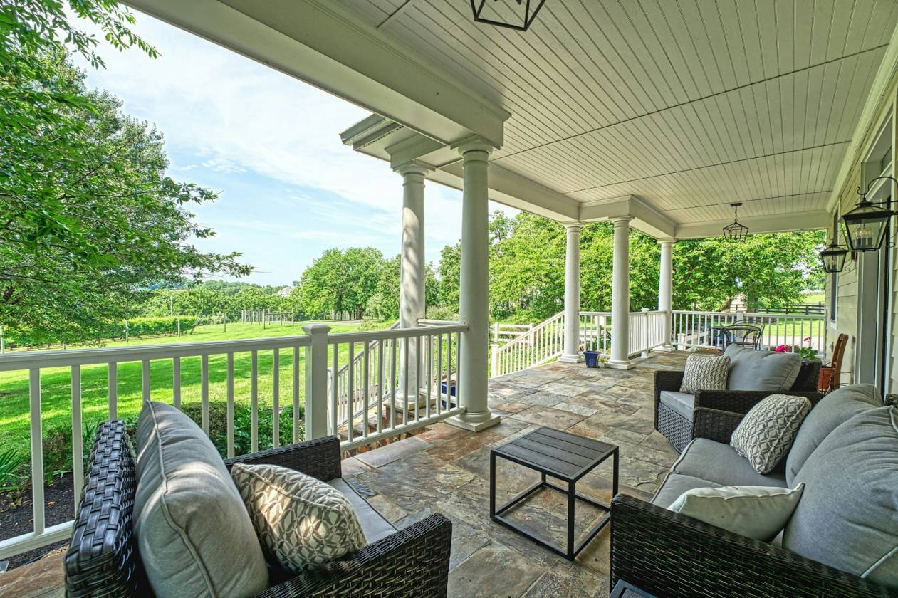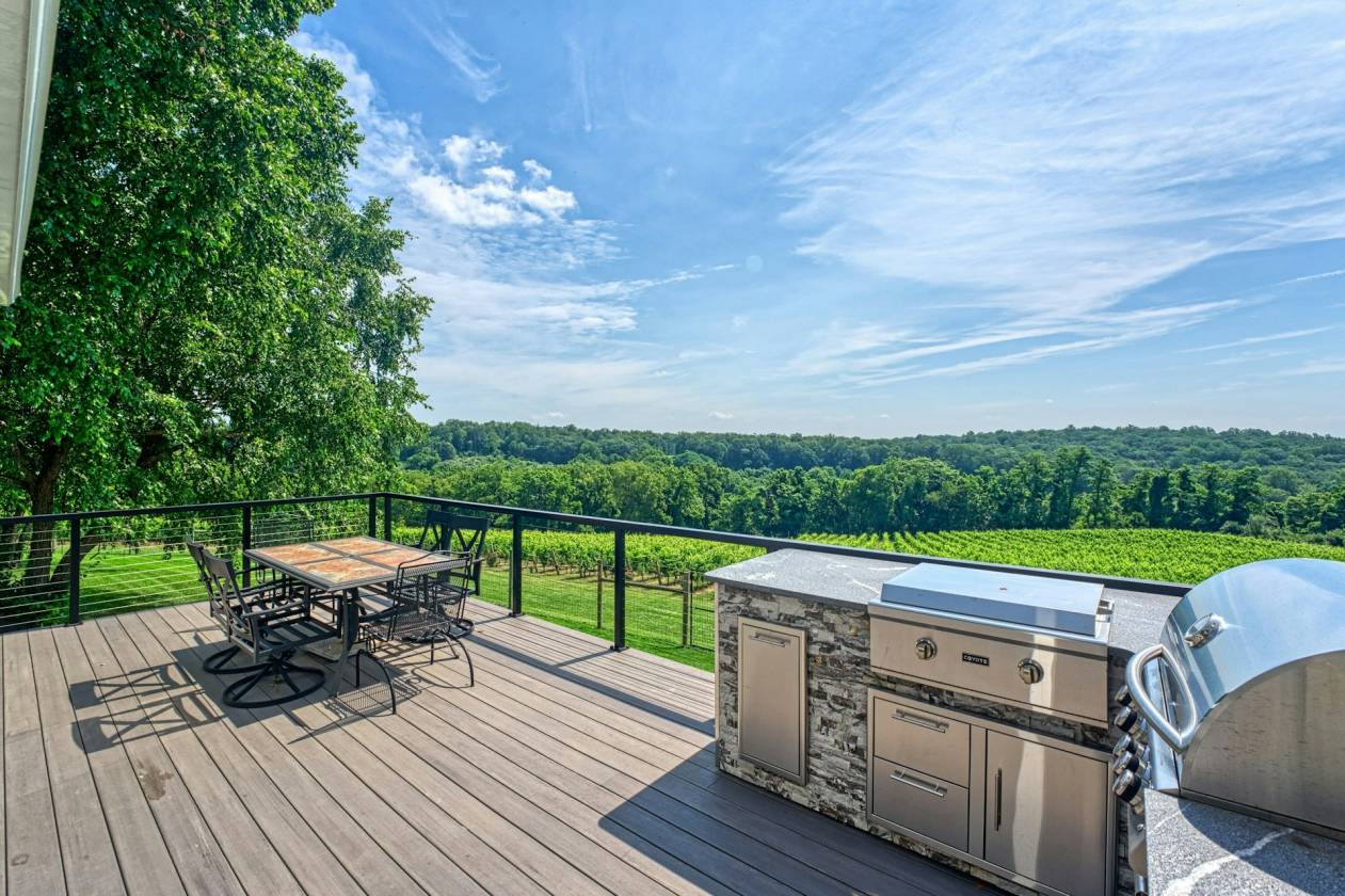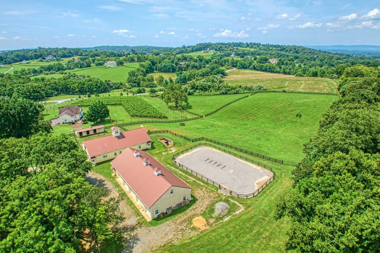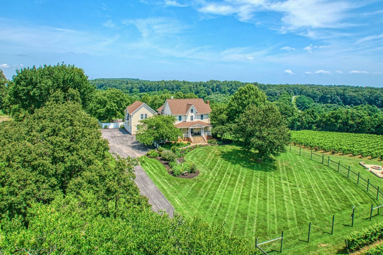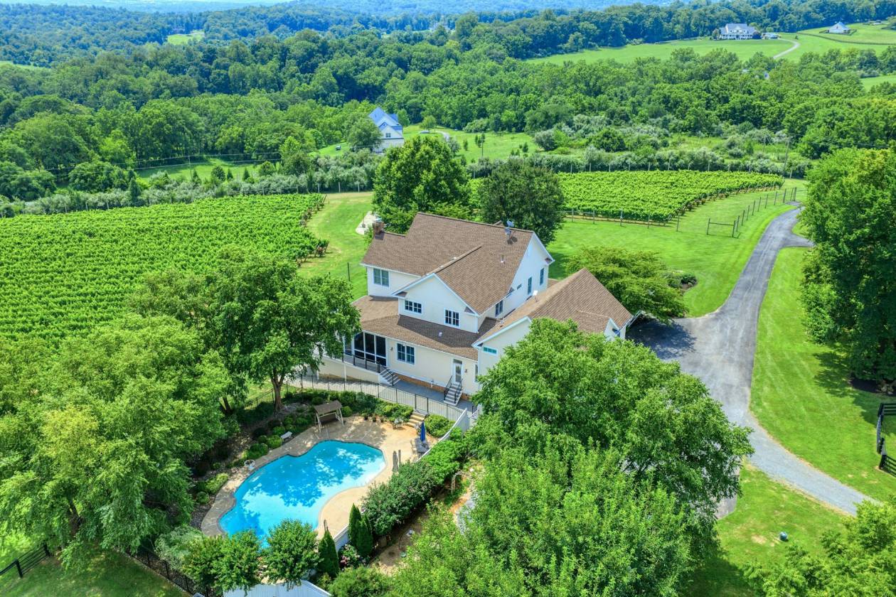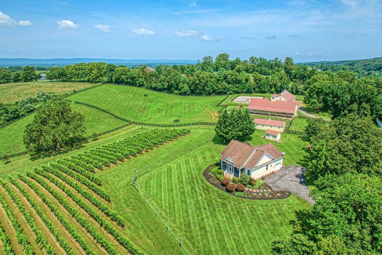 Twin Notch Farm is a premier equestrian and wine country estate offering an extraordinary lifestyle on 21.69 scenic acres in the heart of Loudoun County. This luxurious property combines refined country living with award-winning vineyard production and upscale amenities for both relaxation and recreation. At the heart of the estate lies the Twin Notch Vineyard, home to nearly 12,000 hand-planted vines producing Merlot, Cabernet Franc, Petit Verdot, Petit Manseng, and Sauvignon Blanc. As the exclusive grower for Walsh Family Wine, the vineyard yields over 1,300 cases annually—including the acclaimed 2020 Twin Notch Red, which earned a Gold Medal at the 2023 Loudoun County Wine Awards. The custom-built main residence is thoughtfully designed for modern living and entertaining. Highlights include a newly updated kitchen, a main-level bedroom and bath ideal for multigenerational needs, and a beautifully finished bonus space over the garage complete with a fireplace and full bath—perfect for a private office or media room. Outdoor living is elevated with a resort-style pool and spa, a screened-in porch with a stone fireplace, and a fully outfitted outdoor kitchen—all designed to capture the stunning vineyard and mountain views. Additional features include a charming one-bedroom, one-bath guest house with den and a one-car garage, currently operating as a successful VBRO Rental, offering both versatility and income potential. Equestrian amenities abound with a six stall center aisle barn, two large turn-outs, 60' x 100' ring and a five-bay machine shed with workshop, ideal for, hobby farming, or equipment storage. Whether you’re looking to operate a boutique vineyard, enjoy a private retreat, or entertain in grand style, Twin Notch Farm offers a rare opportunity to embrace the very best of Virginia’s luxury wine and equestrian lifestyle.
