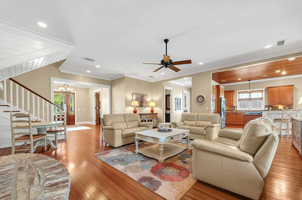 Welcome to Your Private Retreat. Nestled on approximately 8 acres of serene privacy, this stunning property is just minutes from Lakewood and downtown Fairhope, located in the desirable Oak Point community. A welcoming front porch leads you into this beautifully crafted home, where you will be greeted by pine floors throughout the main level, elegant cypress ceilings, and custom 8-foot mahogany doors. The spacious rooms are filled with natural light, thanks to large double-hung windows. This expansive home features 5 bedrooms, with two generous primary suites and an additional bedroom conveniently located on the main level. Upstairs, you will find two oversized bedrooms. All bedrooms are en-suite, offering ultimate comfort and privacy. If you don't need five bedrooms, consider using one as an office and another as a rec room to suit your needs. The chef's kitchen is a highlight, boasting updated stainless-steel appliances, gorgeous granite countertops, a gas cooktop, double ovens, and a large kitchen island. A charming brick fireplace with gas logs serves as a centerpiece in the formal dining area. The kitchen seamlessly flows into the great room, which also features a brick fireplace (both fireplaces can be wood burning). Step outside to the oversized screened porch and