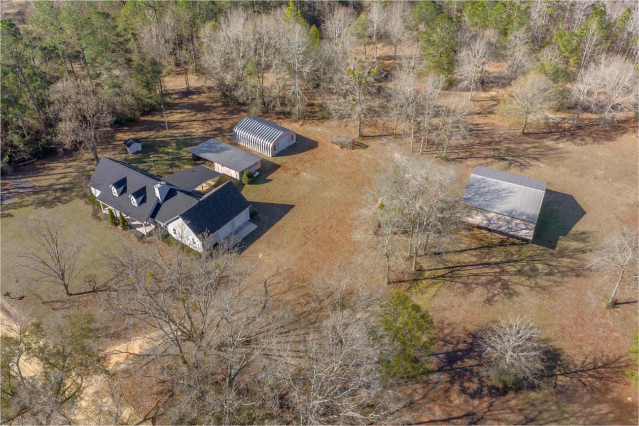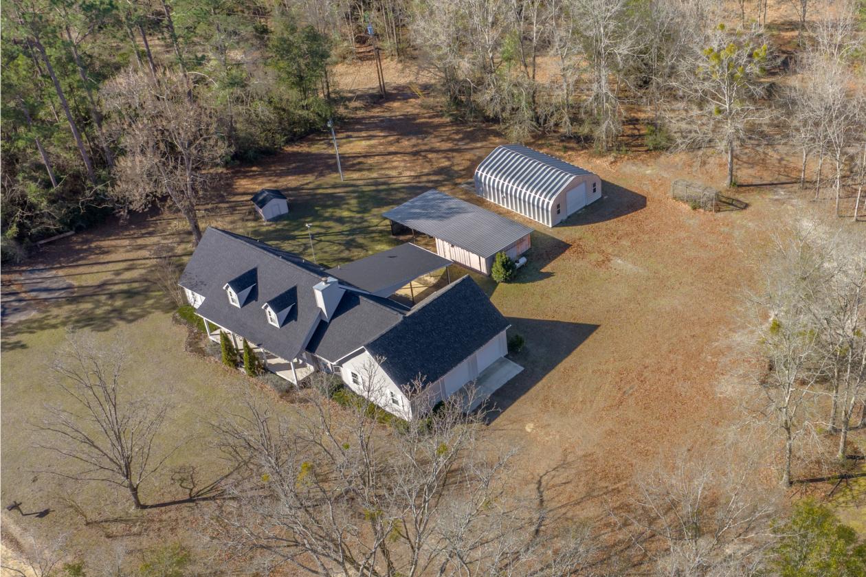 This beautifully updated 4 bedroom, 3 bath two-story home on nearly 6 acres offers space, function, and incredible extras you simply don’t find every day! Inside, you’ll love the flexible layout featuring a dedicated home office, spacious entry/mud room off the garage with abundant storage and space for an extra freezer or refrigerator, and a warm, inviting kitchen with oak cabinetry, granite countertops, and an adjoining dining room perfect for gatherings. The oversized 2-car garage easily fits a crew cab truck and large SUV, plus there’s a covered rear carport for additional parking or equipment. Thoughtful upgrades throughout provide peace of mind and modern comfort, including: • Major addition (2003) – primary suite, bath, dining room, office, garage, entry room & bonus room above garage • Oak hardwood floors & stair treads (2009) • Expanded/remodeled kitchen (2011) • PEX plumbing with manifold shut-off system + new fixtures & upstairs bath remodel (2014) • New roof (2022) Step outside and you’ll find space for every hobby or business need with: • 25x32 workshop • 40x40 pole barn • 20x40 storage building with two parking bays. Situated on 5.9 acres in the heart of South Alabama, this property offers peaceful country living with convenient access to everything. If you've been searching for acreage, storage, updates, and room to breathe, this one checks every box.