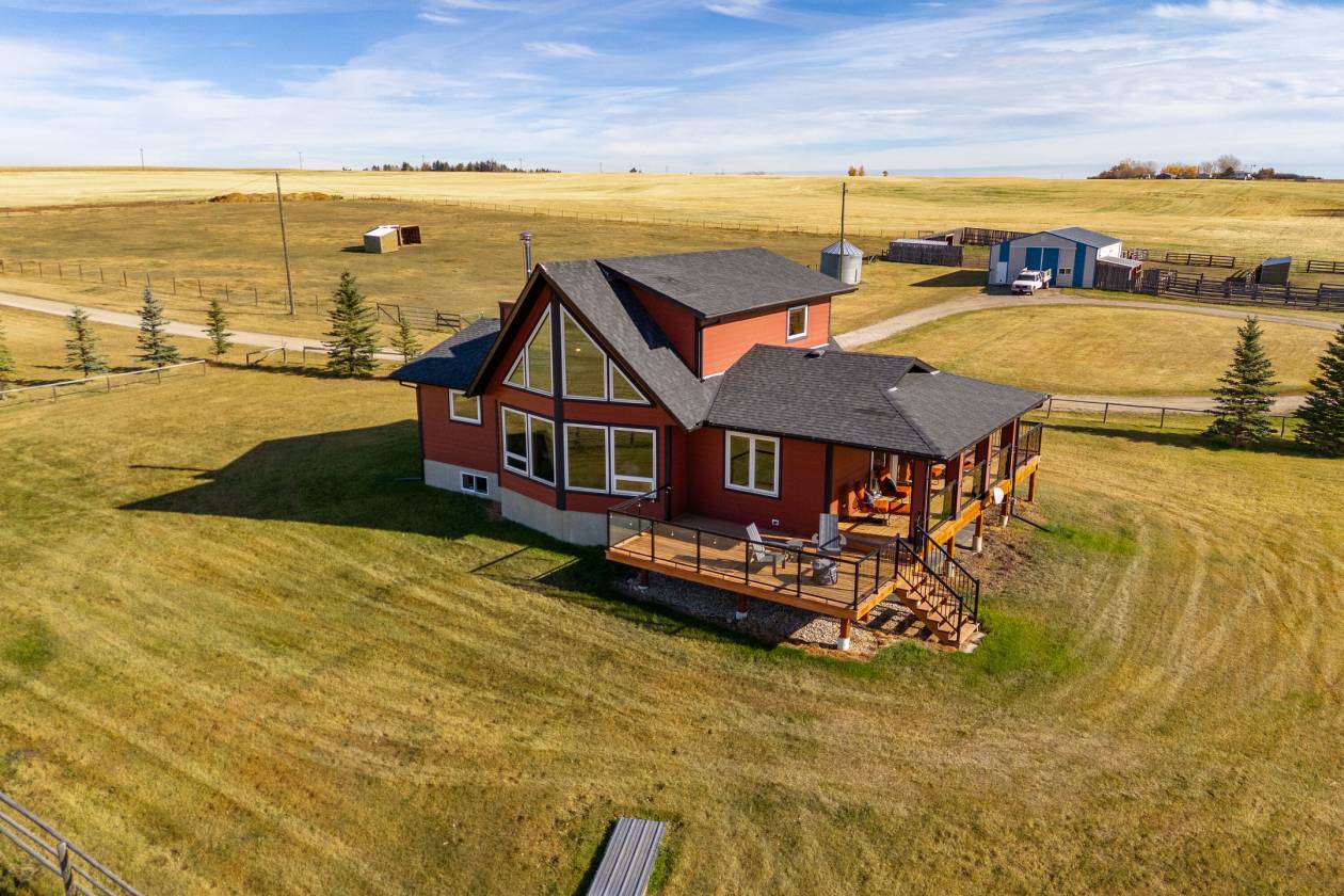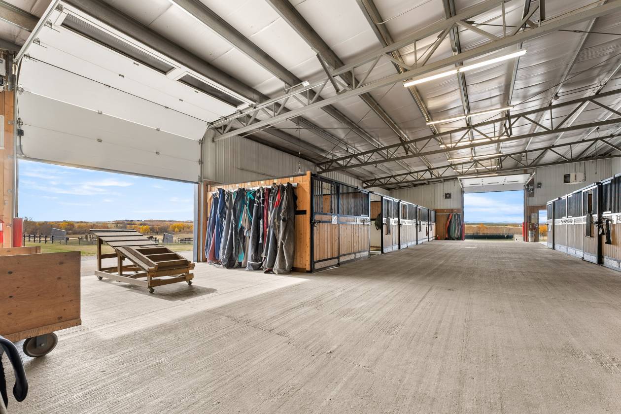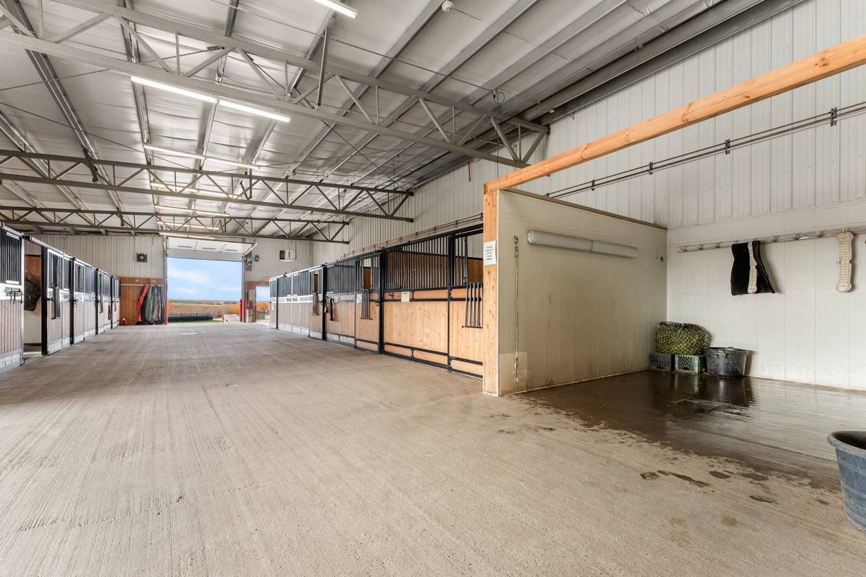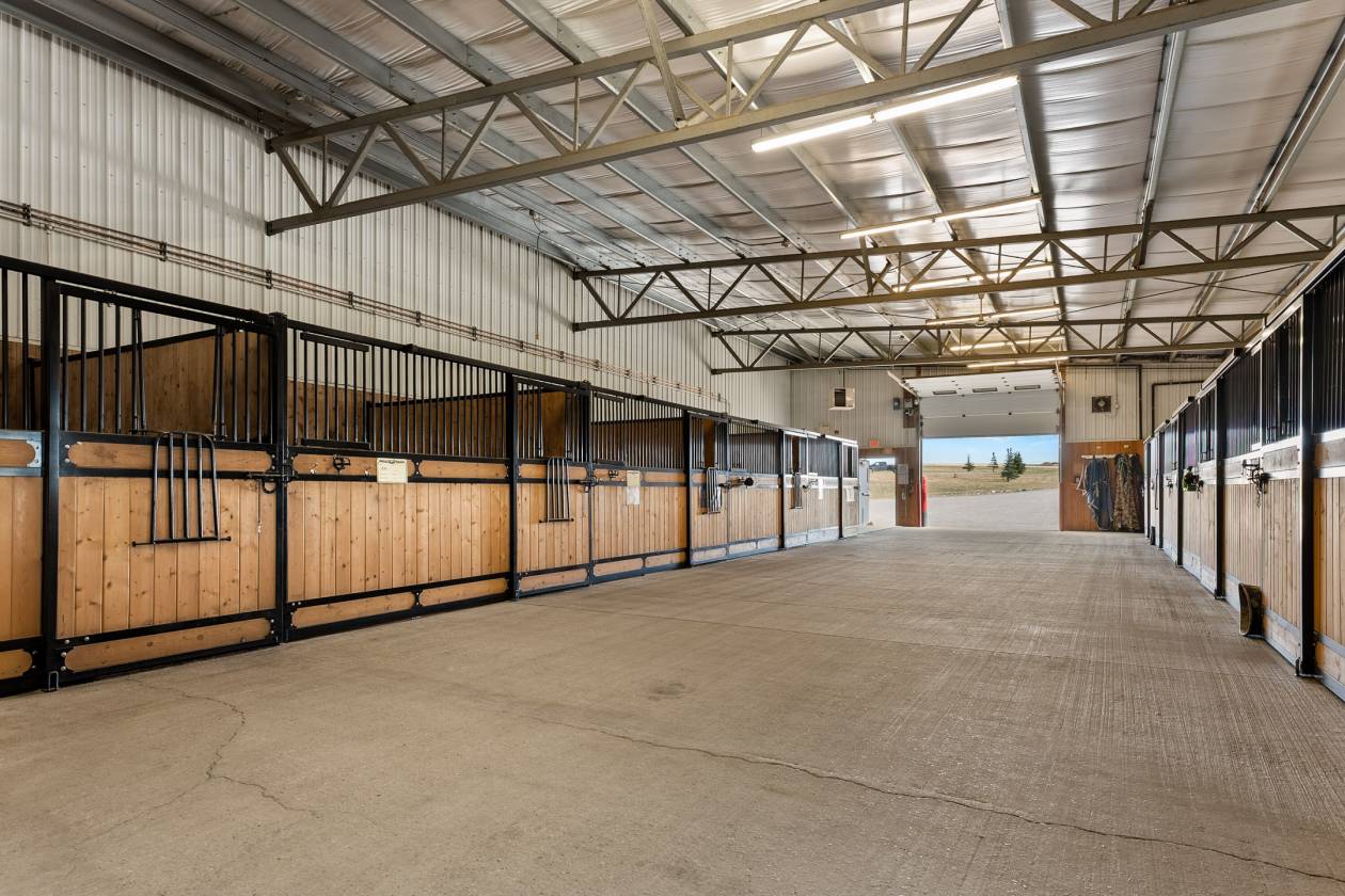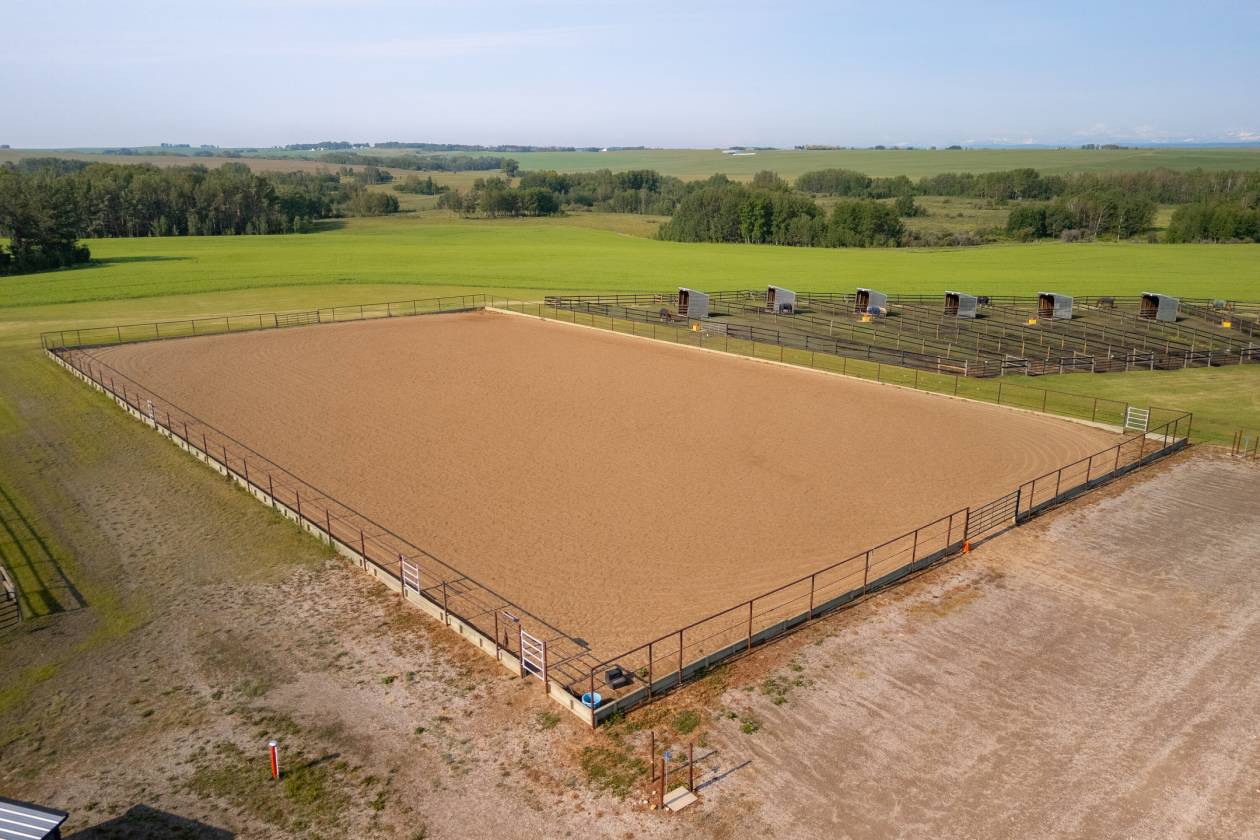 PRICE IN CDN DOLLARS. Welcome to Prairie Mountain Ranch—an extraordinary 133-acre equestrian estate offering a rare opportunity to acquire a fully permitted commercial facility in the heart of Alberta’s ranch country. Purpose-built for versatility and performance, this multi-discipline equestrian facility is ideally suited for cow horse, dressage, show jumping, eventing, and more. Whether you are a competitor, clinician, or trainer, the setup is turnkey and ready to support your vision. With commercial zoning already in place, Prairie Mountain Ranch is fully equipped to accommodate boarding operations, professional training programs, and hosted clinics—delivering both income potential and operational flexibility from day one. At the core of the property is a 260-foot by 115-foot state-of-the-art indoor riding arena, thoughtfully designed for year-round use. An expansive 4,500 square foot upper-level viewing lounge provides a warm and inviting space for events, workshops, or private gatherings. Connected to the arena is a 45-foot by 260-foot barn featuring ~46, 12 by 12 box stalls, heated wash bays, tack rooms, and carefully planned amenities that reflect the highest standards in equine care. Buyers benefit from avoiding the delays and expense of permitting—a true turnkey commercial acquisition. The outdoor facilities are equally well-appointed, including a 140-foot by 240-foot outdoor arena, a 70-foot steel round pen, and twenty individual runs with shelters and heated waterers, plus an additional seven flexible-use runs for seasonal or specialized needs. A large hay shed, workshop, and multiple outbuildings support the day-to-day demands of a professional operation. The primary residence is a charming two-storey home of over 1,700 square feet, offering panoramic views of the mountains and surrounding landscape. A separate 1,280 square foot, three-bedroom mobile home provides ideal accommodation for staff or guests. Mature trees, open pasture, and cultivated fields create a setting that is both peaceful and highly functional. The property includes three high-output wells, 45 acres of cultivated land, and 88 acres of natural pasture—blending productivity with pastoral beauty. Currently operating as a reining facility, Prairie Mountain Ranch is fully capable of supporting a wide range of equestrian disciplines. Just over an hour from Calgary and minutes from the community of Madden, this is a rare opportunity to acquire a fully developed, professionally designed equestrian facility—where commercial zoning, best-in-class infrastructure, and natural splendor align to create one of Western Canada’s most compelling horse properties. This property is more than a facility; it’s an invitation to embrace the beauty, hard work, and joy of life on the land. Prairie Mountain Ranch offers an extraordinary lifestyle, rich with potential. Here is your chance to own a remarkable estate where every detail has been thoughtfully planned and perfected.