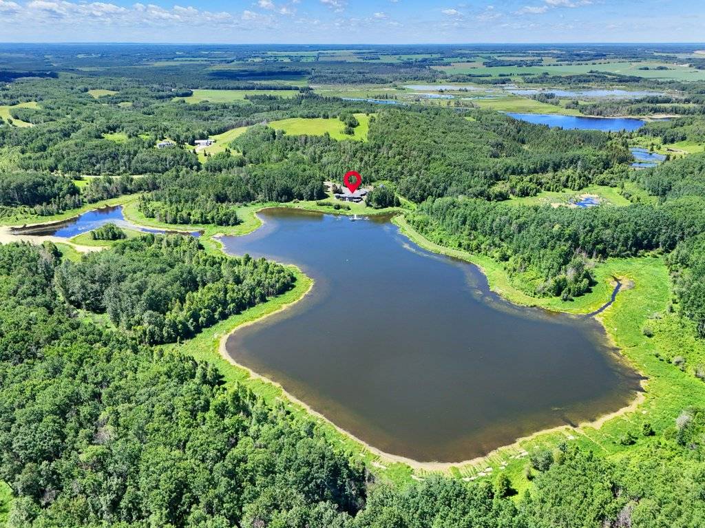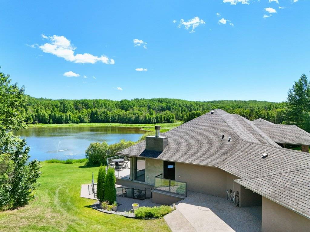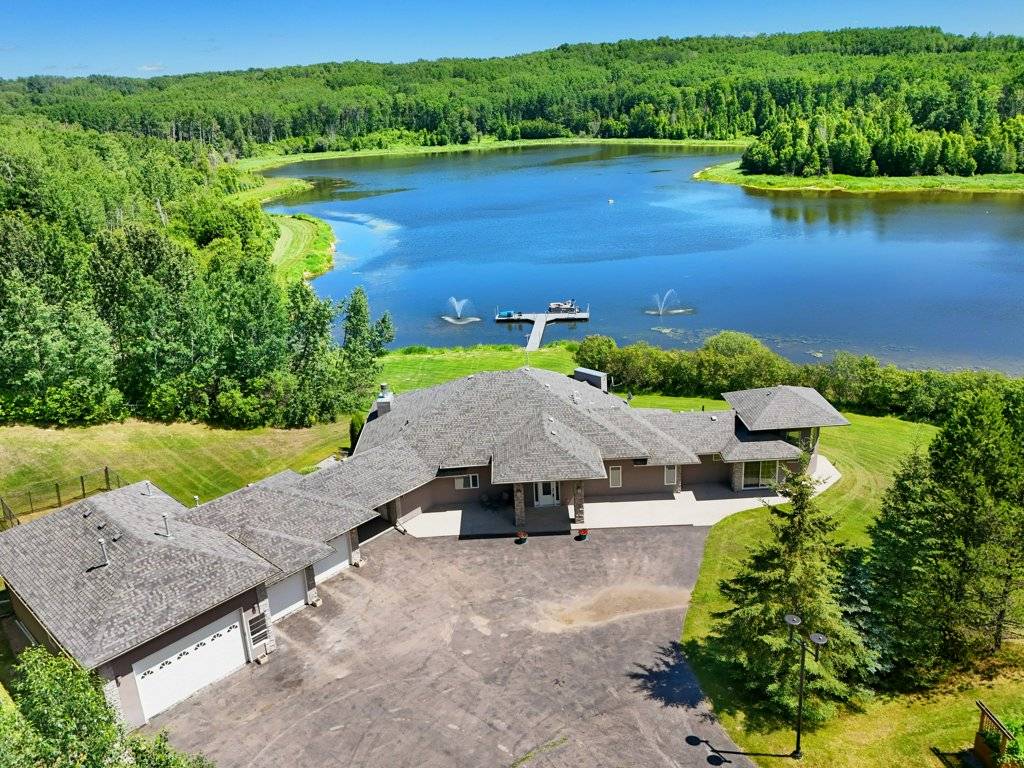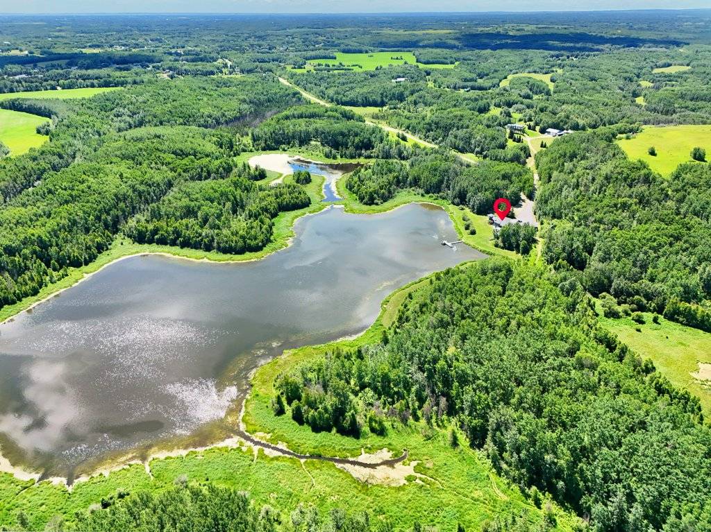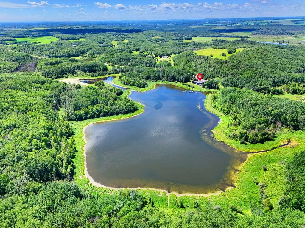 PRICE IN CDN DOLLARS. Do you want to own a lake? Well you can, 30 minutes from Edmonton - a sprawling 4,400 sq ft luxury home nestled on 160 acres of breathtaking land. Outdoors, the property offers winding quadding / sledding / horse riding trails that meander through the woods and along the lake, offering adventure at every turn. The serene lake is perfect for leisurely boating, with your own dock extending out over calm water. Near the house, there's a bubbling hot tub positioned perfectly for soaking in the stunning surroundings or an outdoor fireplace to stay cozy. The home is self-sufficient, featuring a backup generator for emergencies and solar panels to run off grid. Inside, expansive living spaces offer contemporary luxury with high-end finishes at every turn. This home is a retreat from the world, providing an ideal setting for both relaxation and outdoor activities, all while ensuring that you’re living sustainably and in harmony with nature. RV hookup for visiting guests a bonus, and even a dog kennel for your furry friends.