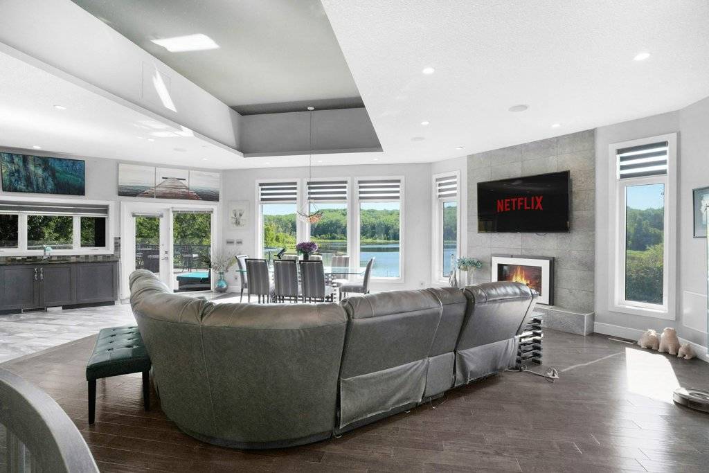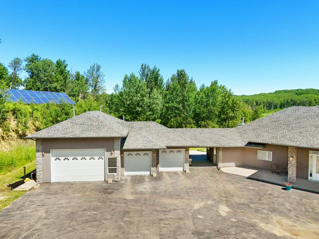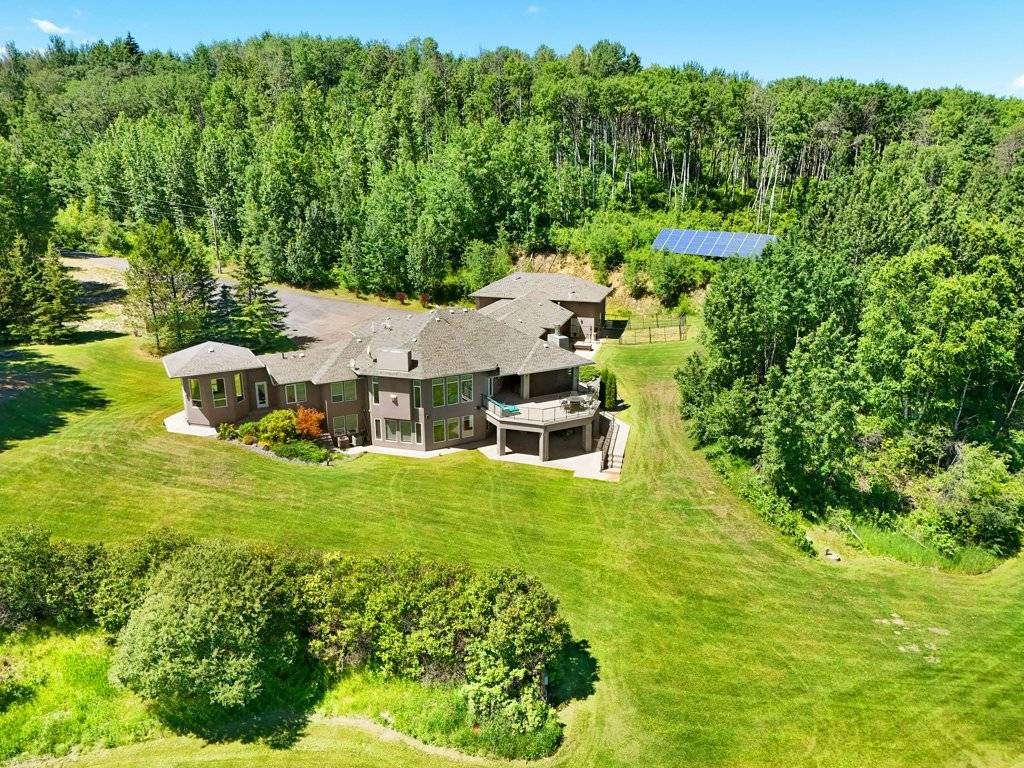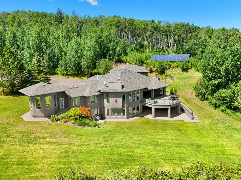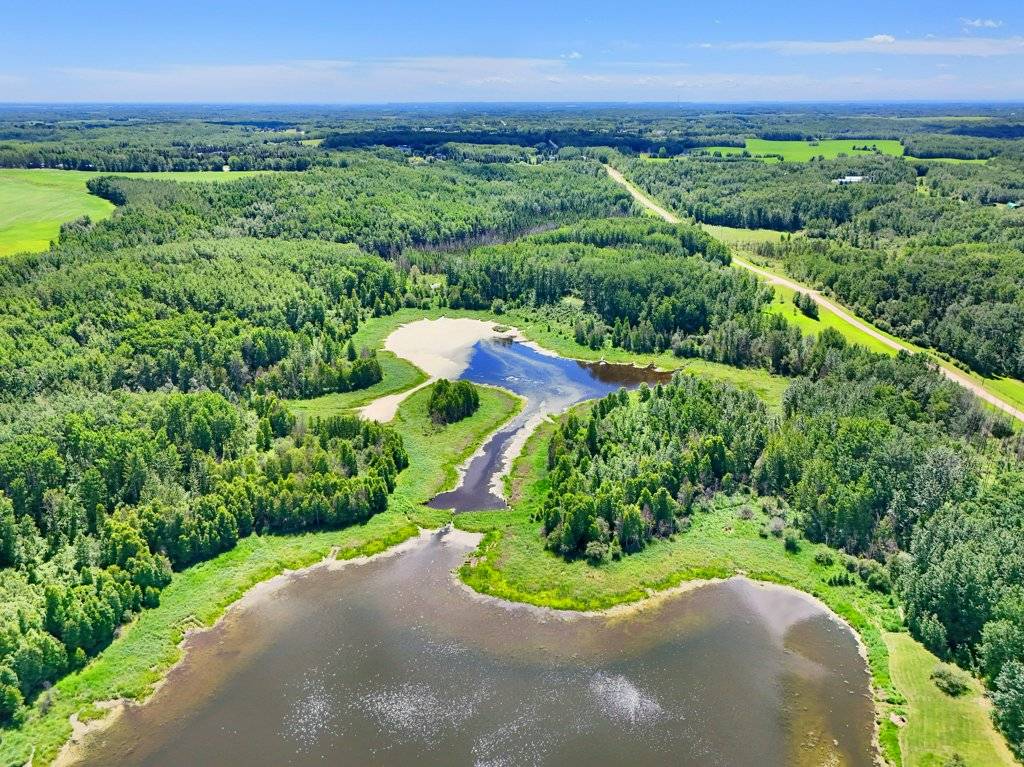 PRICE IN CDN DOLLARS. Do you want to own a lake? Well you can, 30 minutes from Edmonton - a sprawling 4,400 sq ft luxury home nestled on 160 acres of breathtaking land. Outdoors, the property offers winding quadding / sledding / horse riding trails that meander through the woods and along the lake, offering adventure at every turn. The serene lake is perfect for leisurely boating, with your own dock extending out over calm water. Near the house, there's a bubbling hot tub positioned perfectly for soaking in the stunning surroundings or an outdoor fireplace to stay cozy. The home is self-sufficient, featuring a backup generator for emergencies and solar panels to run off grid. Inside, expansive living spaces offer contemporary luxury with high-end finishes at every turn. This home is a retreat from the world, providing an ideal setting for both relaxation and outdoor activities, all while ensuring that you’re living sustainably and in harmony with nature. RV hookup for visiting guests a bonus, and even a dog kennel for your furry friends.