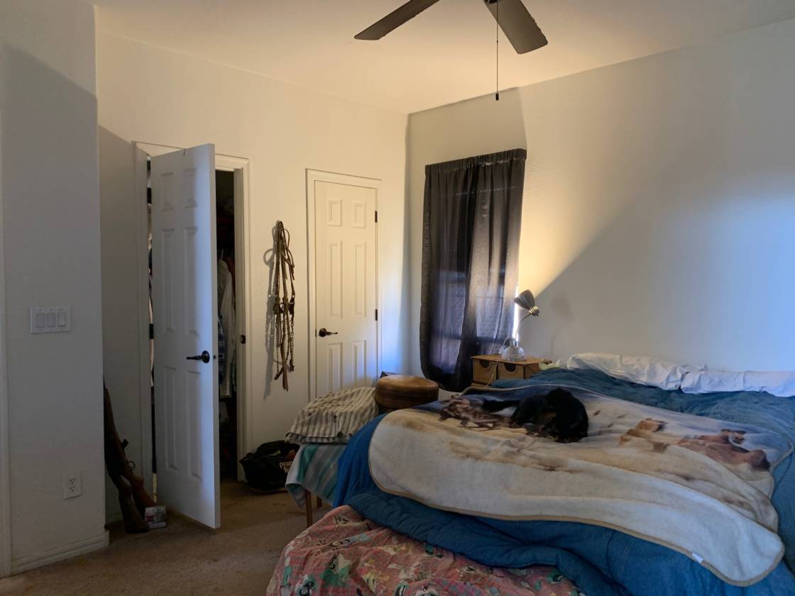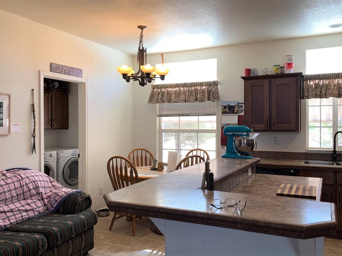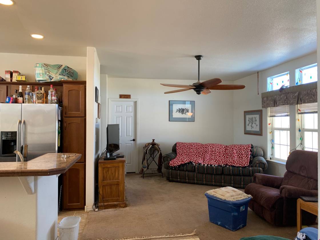 Santa Fe Style Manufactured Home 3 bedroom 2 bathrooms + detached 1 bedroom 1 bath 611 sq. ft. Bunkhouse all on 74.31 acres of horse property. 62 acres are irrigated to grow your own hay or other crops AND the purchase includes the 1/2 circle Center Pivot to get it done! 4000 sq. feet of covered hay storage, covered equipment parking, 678 sq. ft. workshop attached to the 611 sq. ft. Bunkhouse with covered screened in porch. Covered shelter for horses, turnout pens, arena and round pen complete this property.