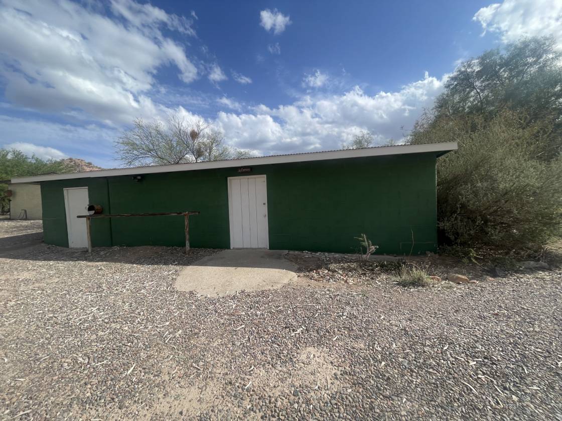 Roosevelt Lake Retreat Quiet Serene 3 acre-Horse Property with gorgeous Mountain Views & bordering Tonto National Forest Joe Bassett trained his horses here Block 14 stall Horse barn. Additional tack block building excellent pvt well w/ bldg Custom 2328 sq ft site built home features upgraded kitchen with quartz countertops hardwood cabinets , vaulted ceilings /with ample room for animal mounts & in custom brick fireplace.. Enjoy family room with wet bar Master bedroom suite is upstairs with outstanding views. Entry way features large porthole window which captures beautiful 4 Peaks Mtn. Custom stained glass door. Natural desert landscape shop bldg + well bldg. call for appt