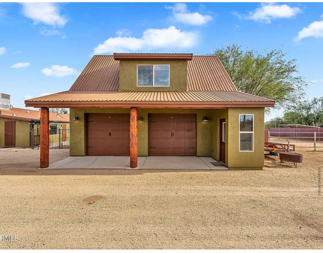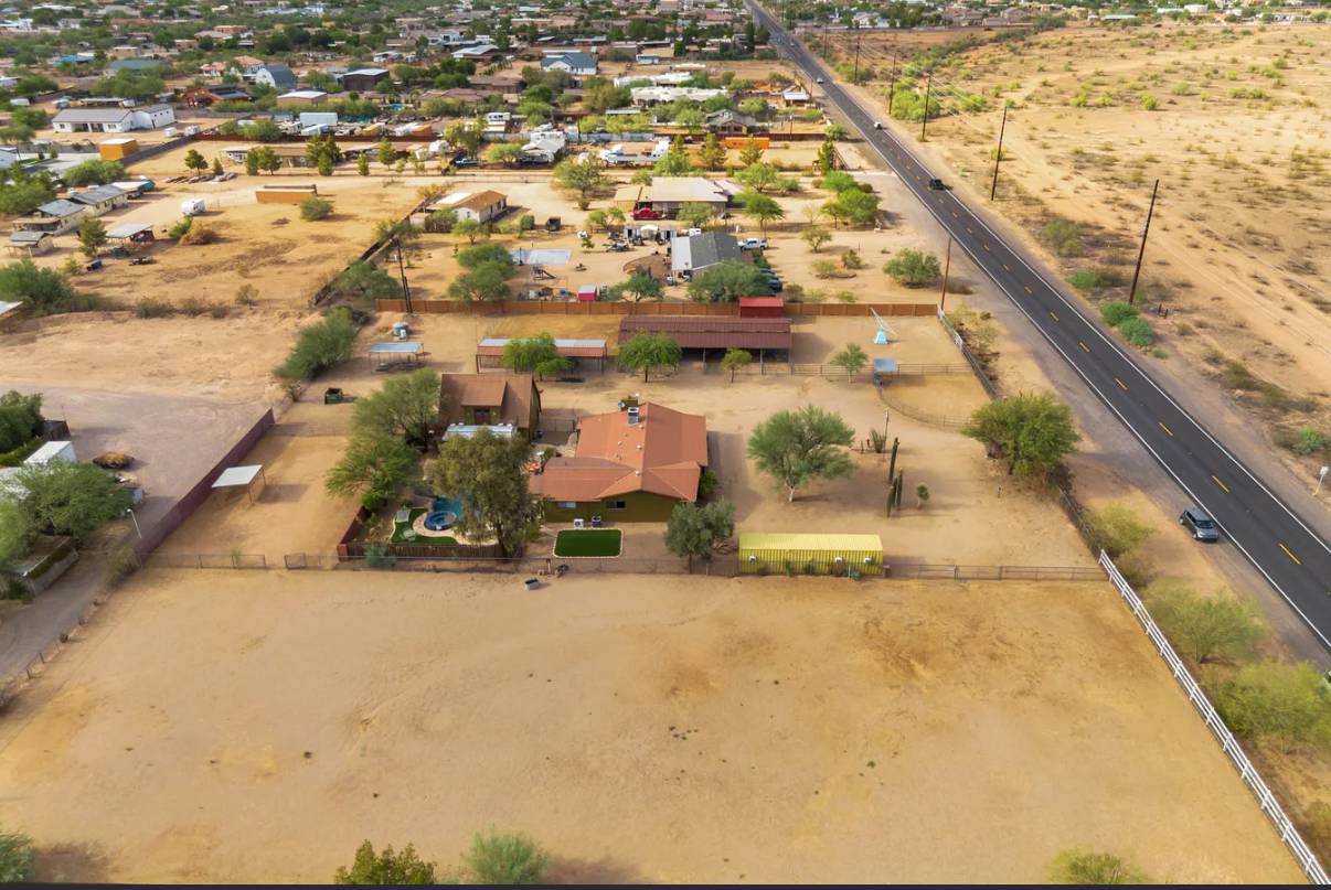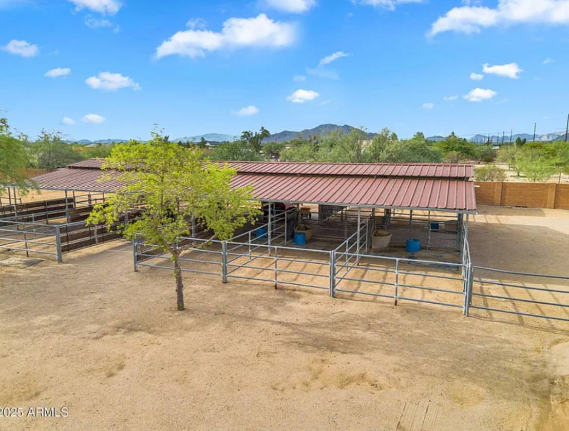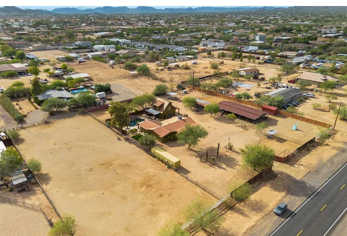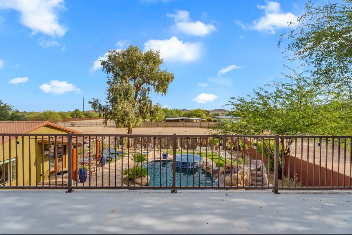 LOCATION, LOCATION, LOCATION!! Located directly across the street from 662 acres of Arizona State trust land, 45 minutes from Wickenburg, 30 minutes from WestWorld 20 minutes from dynamite arena and 10 minutes to the I-17,this property is truly centrally located to all of the major equestrian venues. Here you'll find the ultimate equestrian desert retreat — a rare North Phoenix horse property offering 2.08 acres of lifestyle, luxury, and functionality. Equestrians will appreciate the thoughtfully designed horse setup, which includes a 10-stall mare motel with a paver aisleway, two additional enclosed stalls, multiple turnouts, and a 4-horse hot walker. Riders will love the expansive 110' x 275' arena, along with additional pens for versatility. A large storage container also conveys, perfect for use as a tack room or feed storage. This 2,242 sq. ft. southwestern-style home features 4 bedrooms, 2.5 baths, and has been recently been updated with a remodeled kitchen and master suite. Details like plantation shutters, a cozy fireplace, and abundant natural light embrace true Arizona living. Step outside you new abode to your entertainer's paradise: sparkling pool with slide and hot tub, a spacious outdoor bar with built-in beer cooler, refrigerator, and TVs perfect for game days and sunset gatherings. A detached two-car garage offers both convenience and versatility, with a private 472 sqft club room with 1/2 bath perched above for entertaining or relaxation. This upper-level retreat features a spacious balcony that takes in sweeping views of the pool area and the surrounding landscape, creating the perfect spot to unwind or host guests while still being connected to the heart of the property. A private well, ample space for expansion, and a central location make this property one of the most versatile and sought-after equestrian estates in the Valley. Whether you're hosting, riding, or simply enjoying the Arizona sunsets, this home has it all.