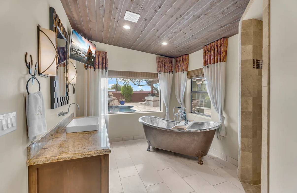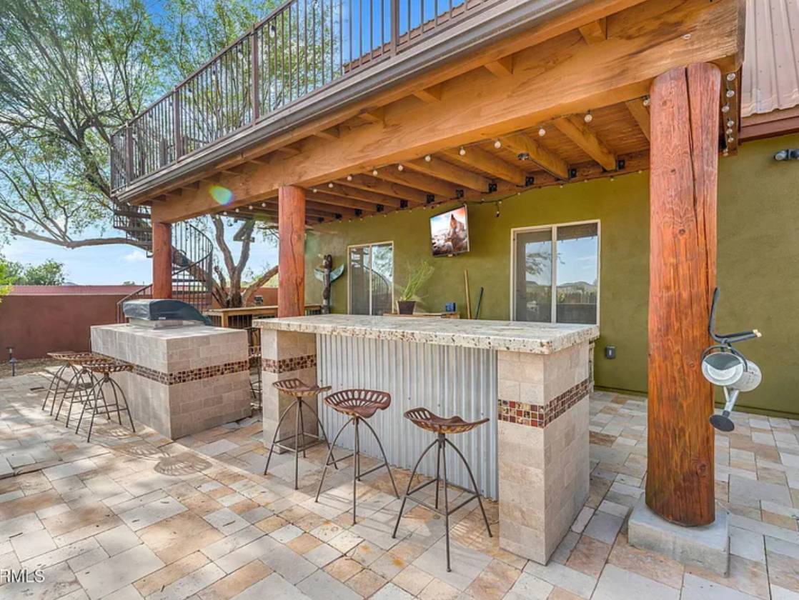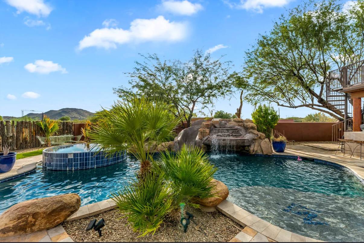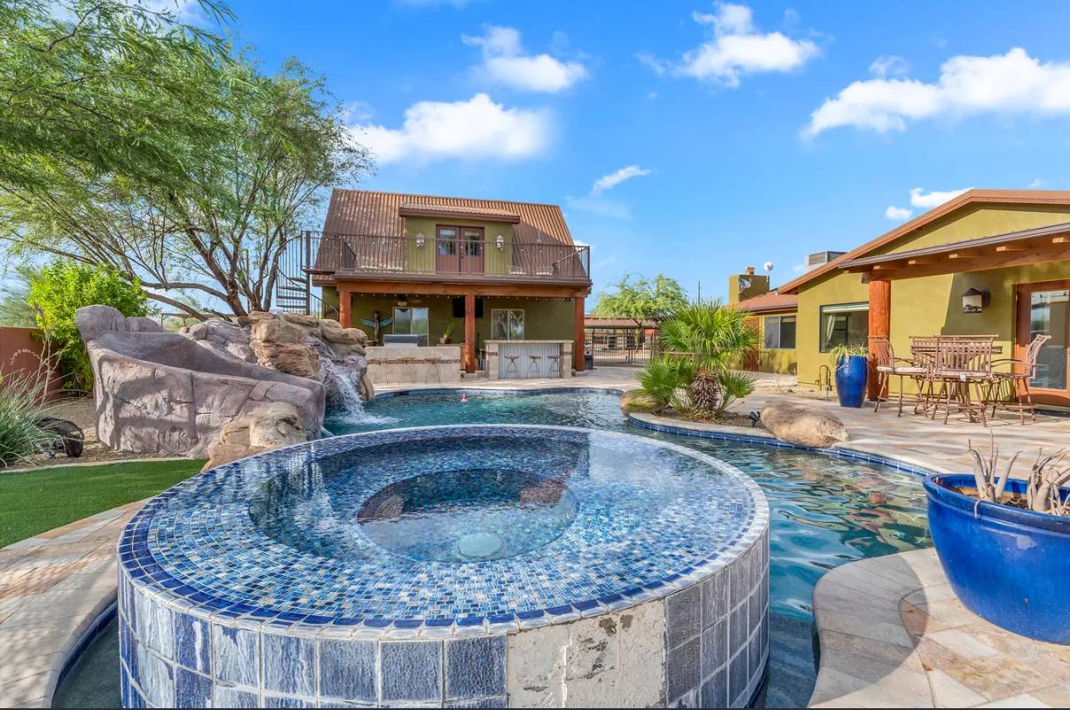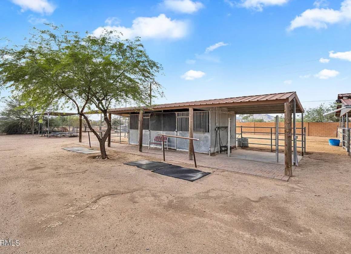 LOCATION, LOCATION, LOCATION!! Located directly across the street from 662 acres of Arizona State trust land, 45 minutes from Wickenburg, 30 minutes from WestWorld 20 minutes from dynamite arena and 10 minutes to the I-17,this property is truly centrally located to all of the major equestrian venues. Here you'll find the ultimate equestrian desert retreat — a rare North Phoenix horse property offering 2.08 acres of lifestyle, luxury, and functionality. Equestrians will appreciate the thoughtfully designed horse setup, which includes a 10-stall mare motel with a paver aisleway, two additional enclosed stalls, multiple turnouts, and a 4-horse hot walker. Riders will love the expansive 110' x 275' arena, along with additional pens for versatility. A large storage container also conveys, perfect for use as a tack room or feed storage. This 2,242 sq. ft. southwestern-style home features 4 bedrooms, 2.5 baths, and has been recently been updated with a remodeled kitchen and master suite. Details like plantation shutters, a cozy fireplace, and abundant natural light embrace true Arizona living. Step outside you new abode to your entertainer's paradise: sparkling pool with slide and hot tub, a spacious outdoor bar with built-in beer cooler, refrigerator, and TVs perfect for game days and sunset gatherings. A detached two-car garage offers both convenience and versatility, with a private 472 sqft club room with 1/2 bath perched above for entertaining or relaxation. This upper-level retreat features a spacious balcony that takes in sweeping views of the pool area and the surrounding landscape, creating the perfect spot to unwind or host guests while still being connected to the heart of the property. A private well, ample space for expansion, and a central location make this property one of the most versatile and sought-after equestrian estates in the Valley. Whether you're hosting, riding, or simply enjoying the Arizona sunsets, this home has it all.
