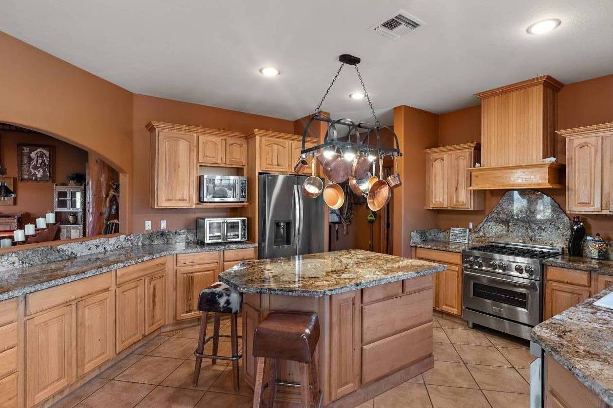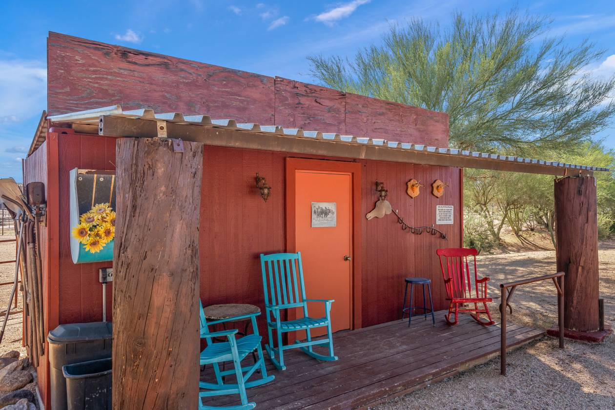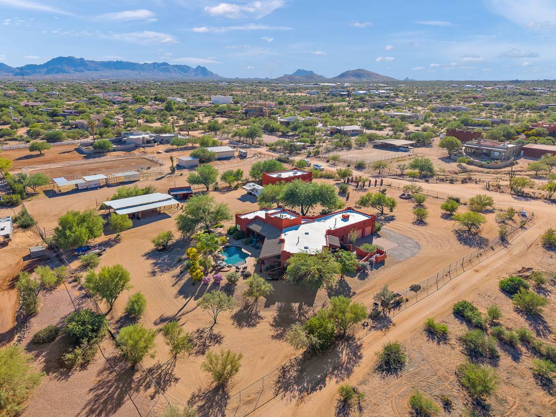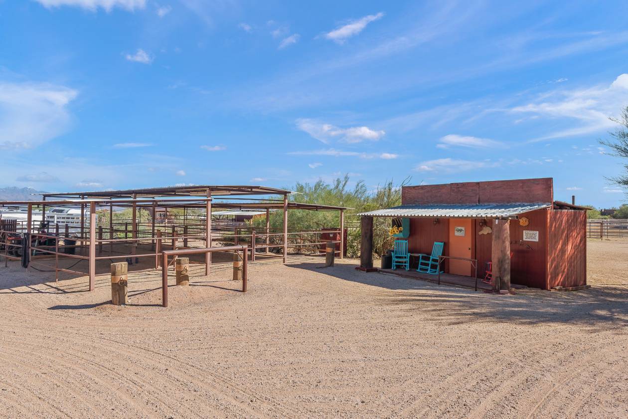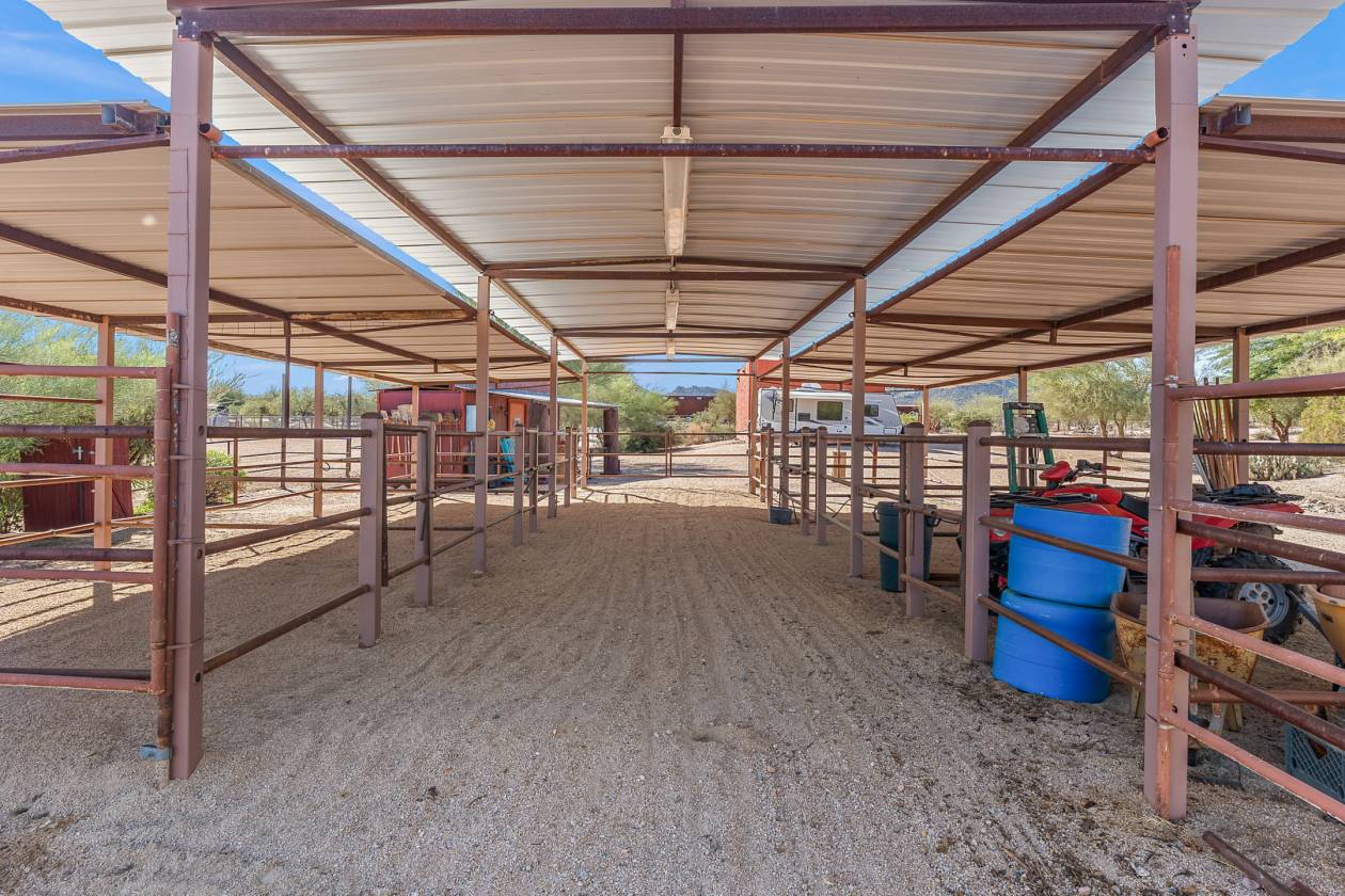 Embrace Western-inspired living on 2.5 acres with no HOA, a private well, and 360° Sonoran Desert views. Ride to trails from your 60' x300' arena, 6-stalls, and 8' x 20' tack room. The 3BR+bonus+office main home blends cowboy charm and modern upgrades - chef caliber kitchen, copper-accented baths, and a private outdoor space off each bedroom. Enjoy 800 sq ft of patio space and a pool with a fountain and Baja shelf. The two garages offer 7 bays, all insulated and cooled. This property is fully fenced with an automated gate. A remarkable property where every detail celebrates the best of Sonoran Desert living.