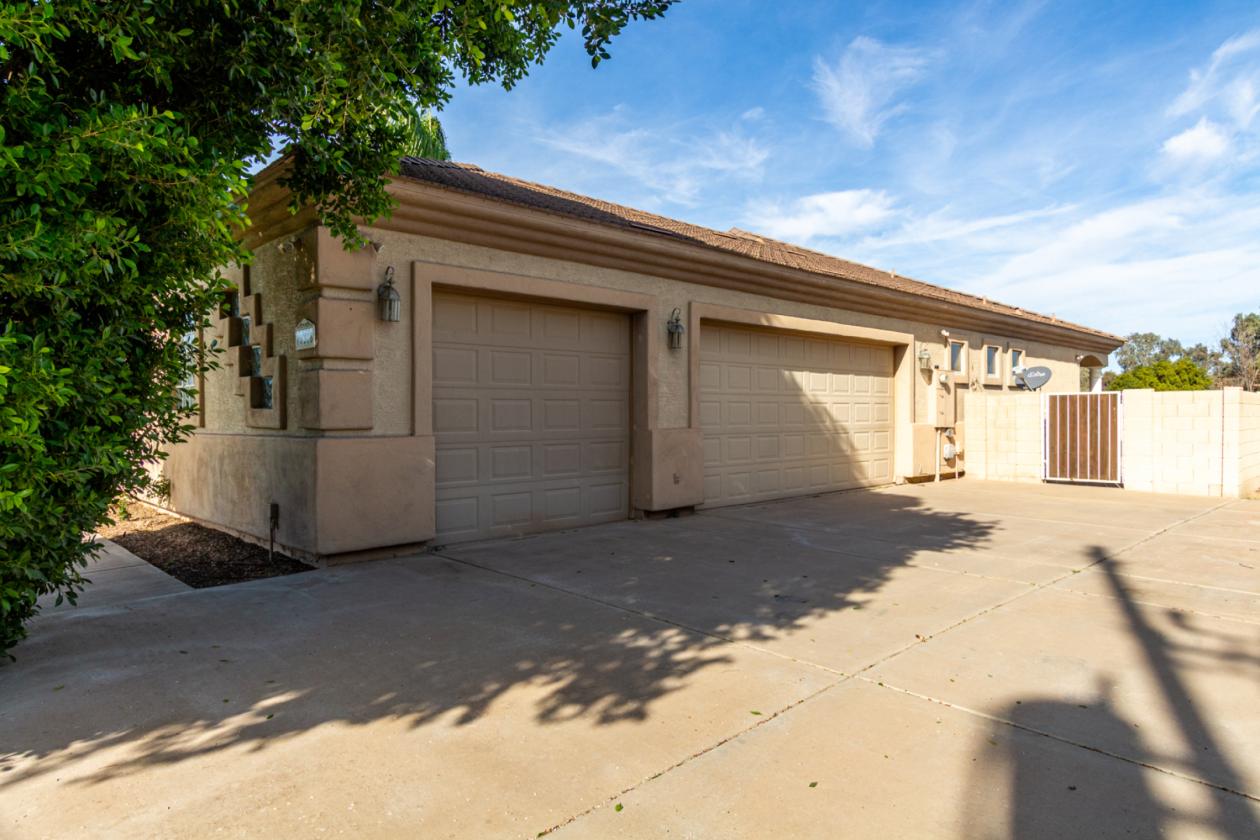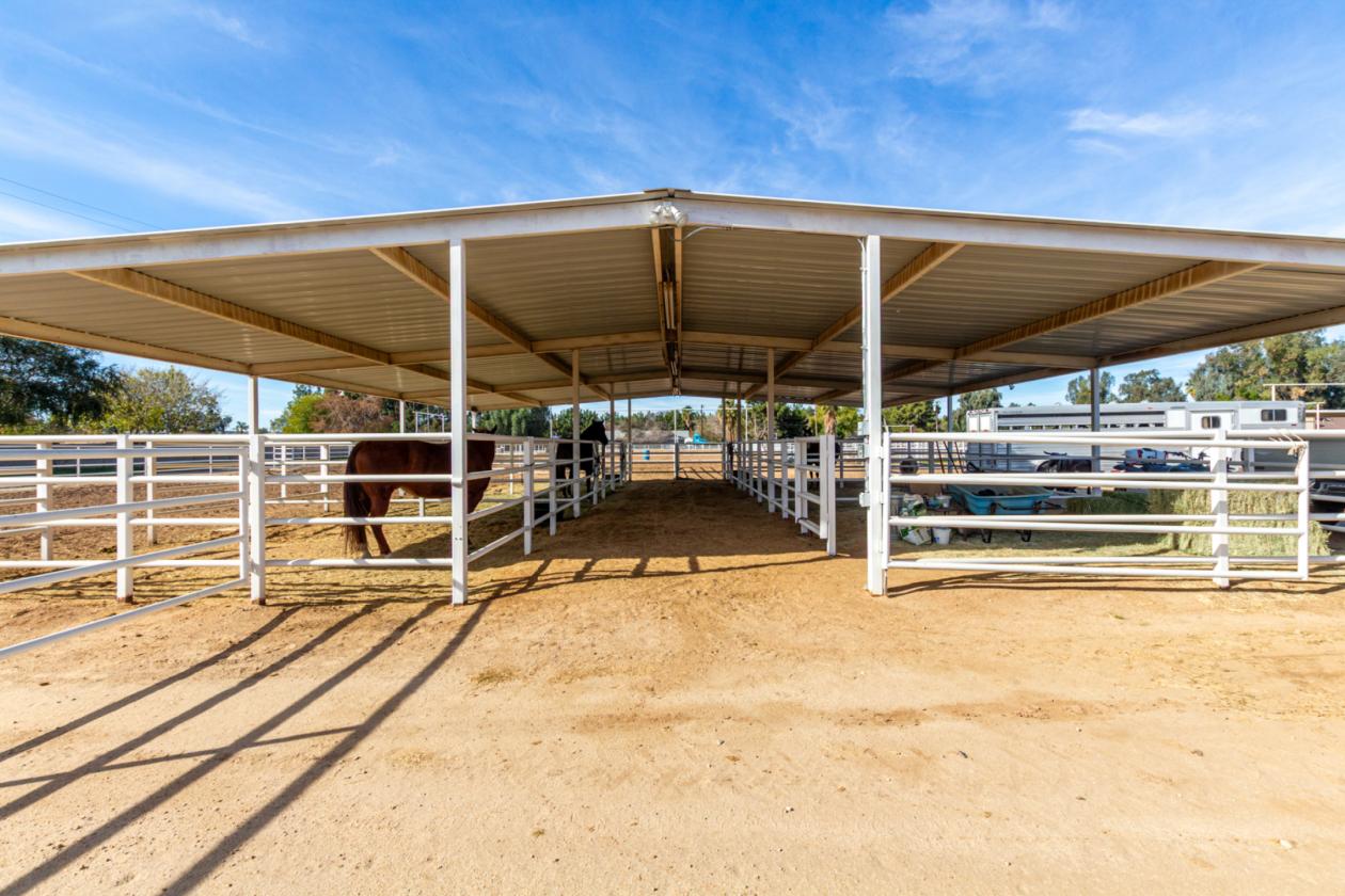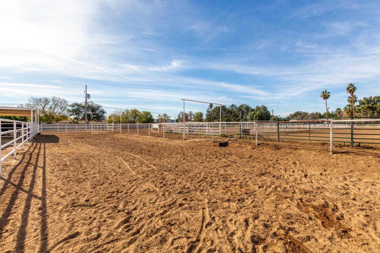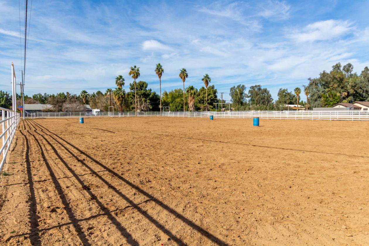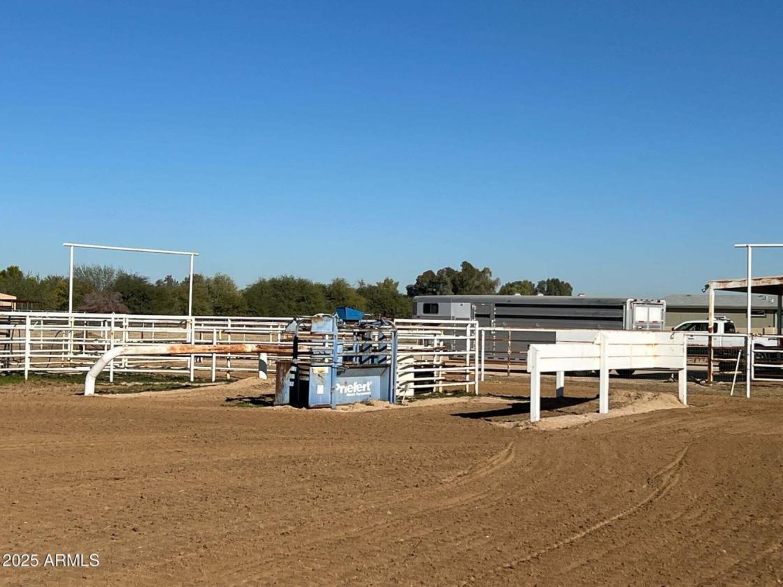 outside, relax under the covered patio & take in the beauty of your expansive backyard. where you can observe your 4 stall barn with oversized covered 16x24 stalls. The barn is equipped with automatic waterers and a wonderful paver ally way. There is a wash rack right outside, and a dog kennel for your pups. The all pipe riding arena (150x220) has great footing, and there's a handy lighted 60 foot round pen. Put your tack in the country western themed tack room or use the spacious storage conex box for all your equipment. Tons of room for pulling in horse trailers and RV's in the large drive. Fully pipe fenced 2.5 acre pasture is zoned to allow agricultural buildings. Many team ropers and horse owners in the area. Horses will love to roam, and so can you, with wide open spaces great for riding in the surrounding the area. Don't let this incredible opportunity slip away!
