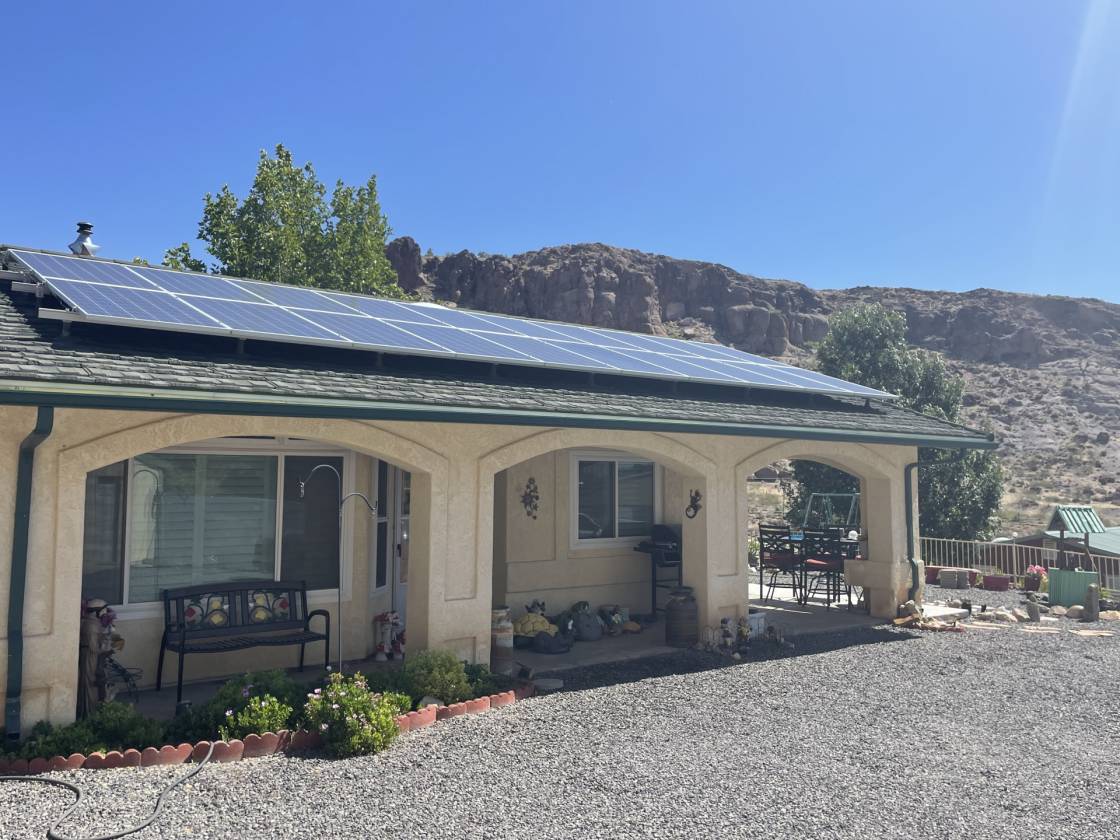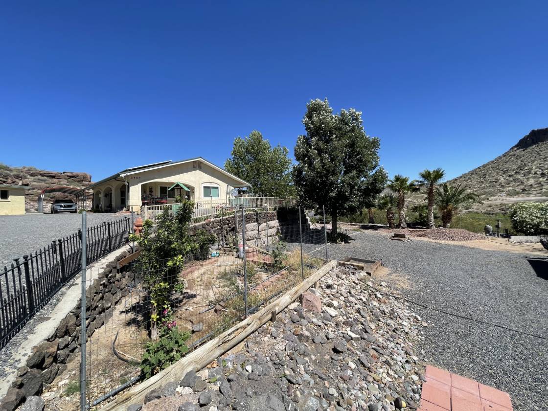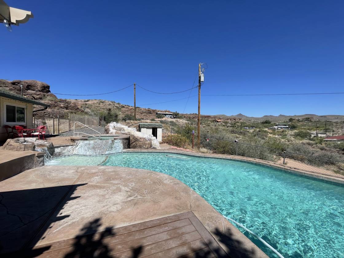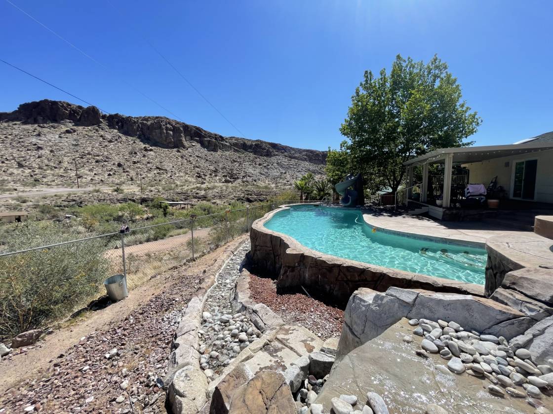 AMAZING POOL HOME that has it all! Over 1 acre with a well, this 3 bedroom + Bonus room home sits amongst the bluff of the mountains. With these breathtaking views, you can enjoy the morning sunrises from your covered Trex deck and have the privacy you need...yet only 10 minutes to town. Solar Home offers a bonus bedroom/office, separate dining room, indoor laundry, vaulted ceilings, skylights, pellet stove, newer windows with plantation blinds and more! Inground Gunite POOL is heated and has a spa/jacuzzi area, a slide and includes waterfalls and lighting. Waterfall stream also runs down the rocks to a 5 ft pond area with palm trees. 30 X 18 Detached Garage has 2 parking areas, plus a Casita/Guest Quarters that has already been started for you. The horse barn has shade covering and tack shed/storage. Owned solar with 14 roof panels keep utility bills lower. Property is completely fenced for privacy and has a solar powered electric gate. Additional sheds boast plenty of room for tools and storage with electric/power. Property has 2 water wells, only one being used. Kingman is 1 1/2 hour from Las Vegas for all your shopping and entertainment. This property is ready to be toured!