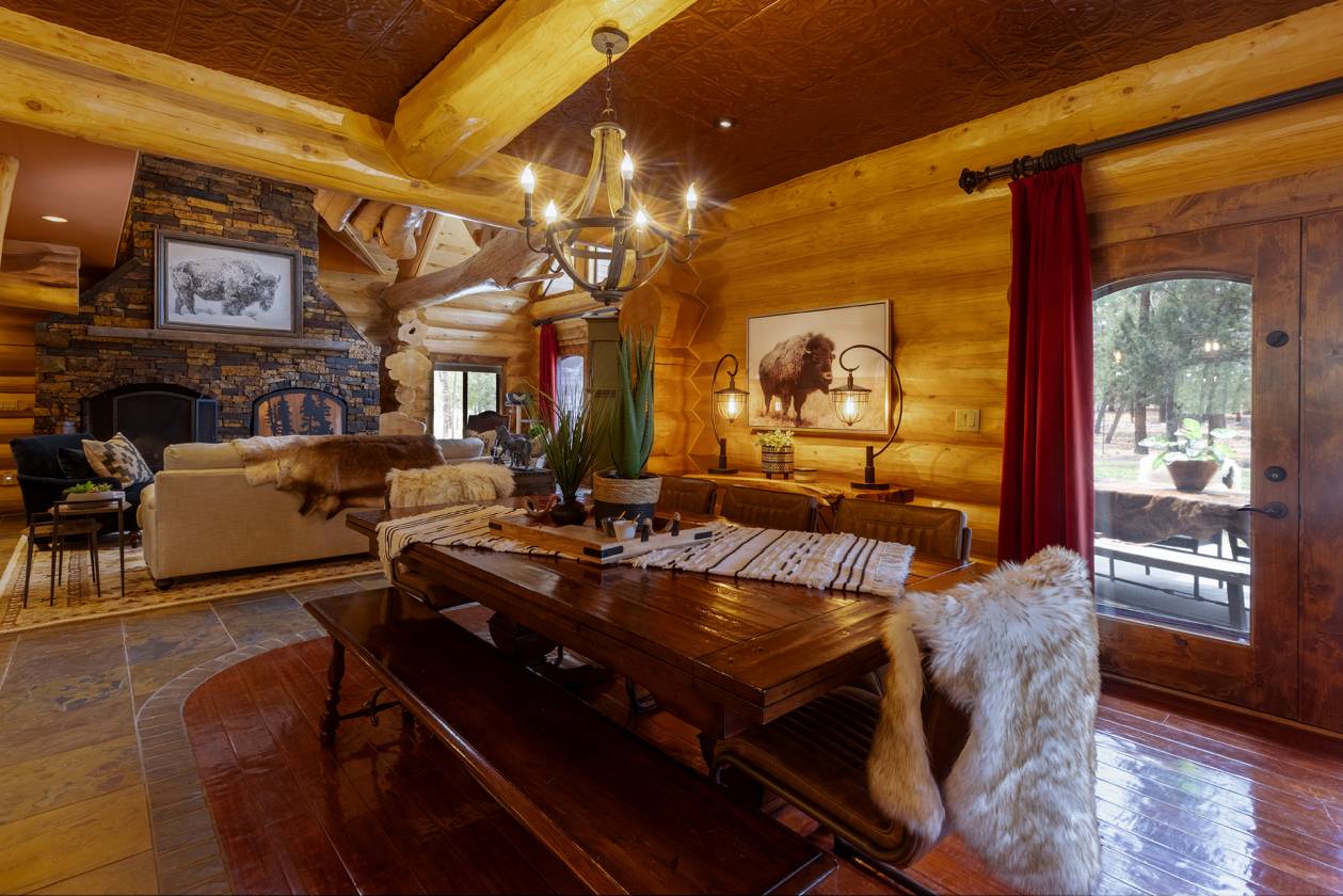 Don't miss this Luxury, FULL Log Cabin that is a true showstopper; not only is it fully FURNISHED to the highest standards, that was professionally designed with meticulous attention to detail. The main house features 3 oversized ensuite bedrooms, billiards room, home office, bar w/ icemaker + mini fridge, a TWO custom staircases, & unique/beautiful beams throughout. The Arizona room, just off the kitchen & offers stunning views of the land, raised garden beds, a swimming spa, & an outdoor pizza oven. Additionally, the detached 4-car garage has been remodeled w/ pine shiplap & a guest quarters above. The guest quarter is complete w/ 1-bedroom, 1-bath, a living room, dining space, & a full kitchen, all complemented by a luxurious copper soaking tub in the bathroom. Home comes turnkey furnished except for grandfather clock, 2 leather chairs in living room, chaise lounge chair, plus a couple other small items. NOTHING in ANY of the garages convey except the washer/dryer and appliances in the detached 4+ car garage. Imagine living in the White Mountains of Arizona where you have 4 beautiful seasons and where you can breathe in the fresh mountain air and enjoy the 40 lakes and over 600 miles of rivers and streams. In addition to the amazing fishing, this area has one of the most extensive trail systems in the southwest for hiking, biking, horseback riding, quadding and more. Sunrise Ski Resort is also just 50 minutes away with 3 beautiful mountains to ski, snowboard or sled. If shopping is your interest, you will love the antique stores, and the multitude of arts and craft shows that happen in the summer. The music festivals have something to fit everyone's enjoyment. Do you love golf? There are 7 amazing golf courses, 3 that are public. The White Mountains, where this home/cabin is the best kept secret of Arizona! Come and explore and enhance your life! Pinetop-Lakeside was also voted the 'Best Cabin Region in the U.S"... Embrace the MAGIC!