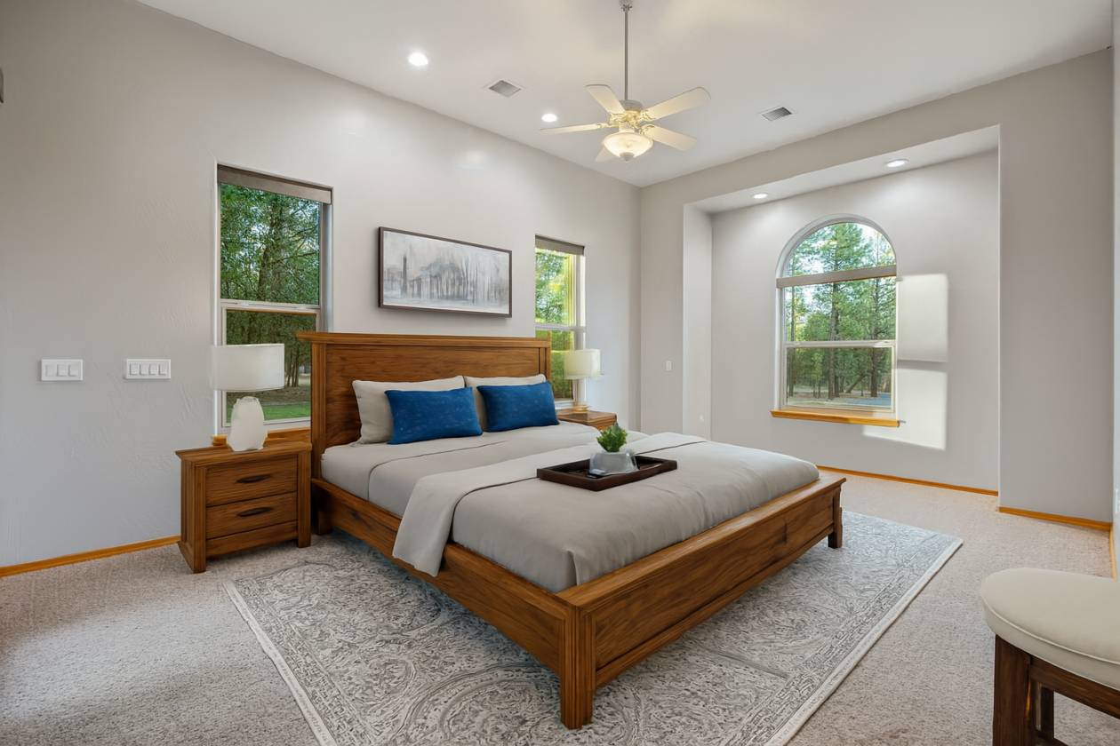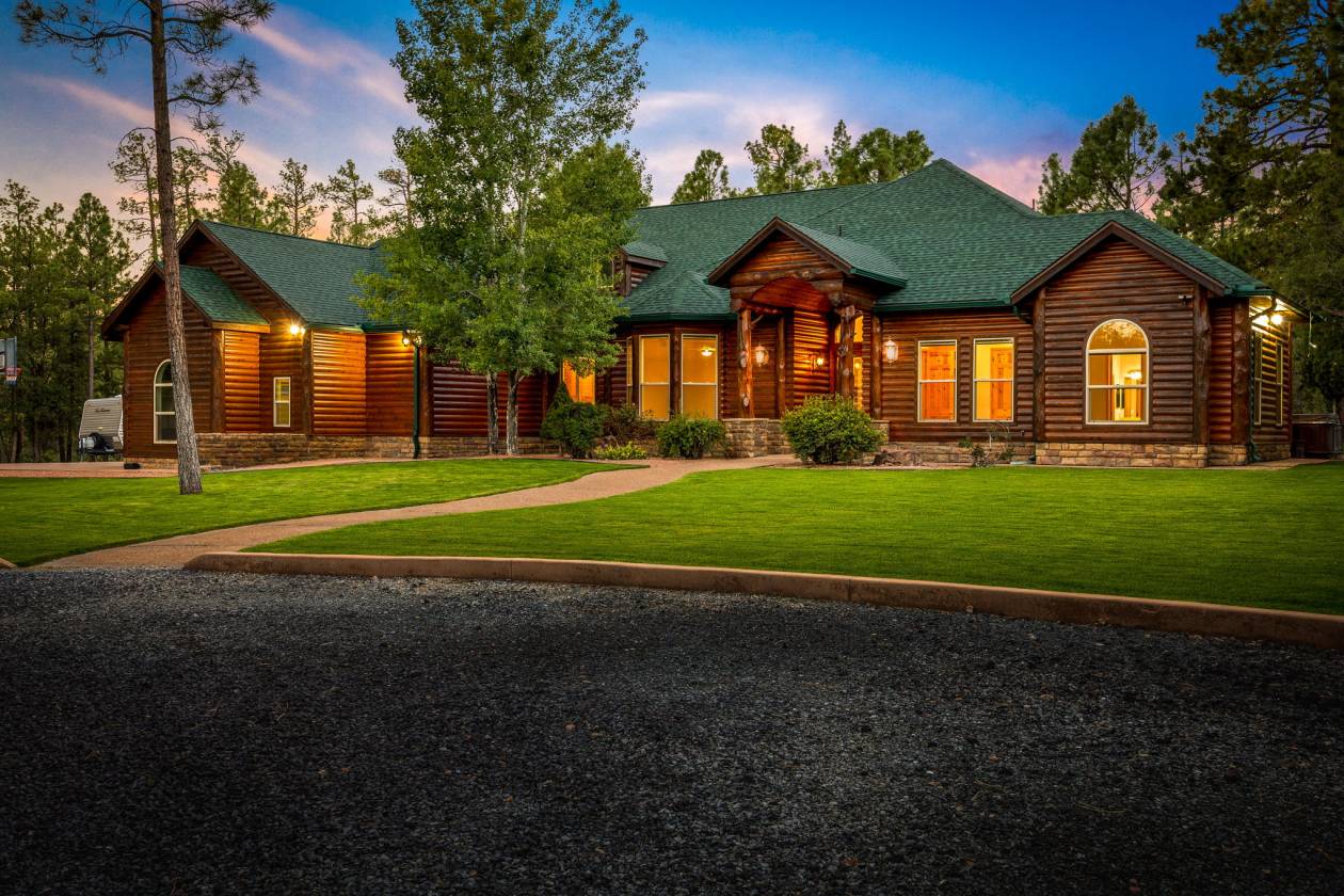 - Welcome to your private retreat in the heart of Lakeside, AZ! This stunning 5-bedroom, 3-bathroom custom home offers 3,217 SqFt of luxurious living on 2.5 partially fenced acres with solar-powered entry gates. Enjoy year-round mountain living surrounded by tall pines, lush landscaping, and modern comforts. Inside, the home features a grand foyer, open-concept family and dining areas, and a chef's kitchen with granite countertops, stainless steel appliances, natural wood cabinetry, and a large island with seating. A dedicated home office and spacious laundry room add to the functionality. The primary suite is a private haven with a jacuzzi tub, walk-in tile shower, and dual vanities. Plenty of storage with dual closets, his and hers. Guests can enjoy a 2nd ensuite for privacy and space. Nice appointed with a bathroom including tub shower and custom vanity. Two additional bedrooms have access to a guest bath with dual vanities, tub shower, and a patio door. Perfect for all guests to easily access.