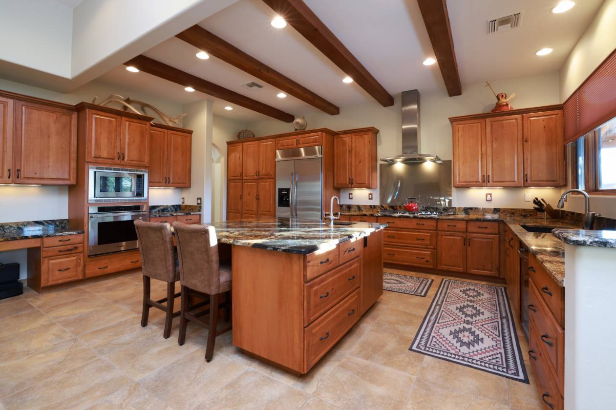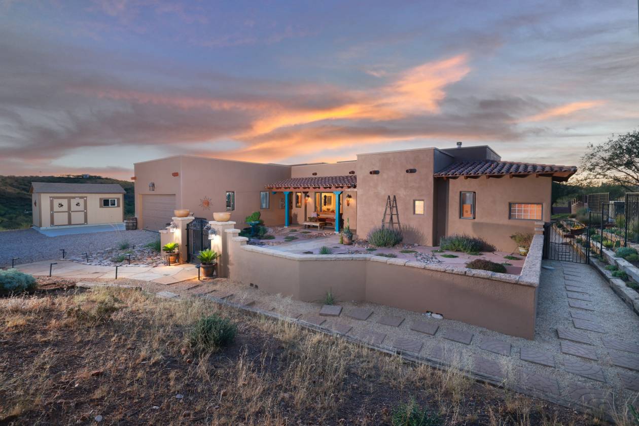 FULLY FURNISHED. This stunning custom Southwest territorial home sits on 30 acres bordering over 130,000 acres of pristine State Trust Land, offering privacy, luxury, and expansive natural surroundings. Designed by renowned builder Scott Pottinger, the residence features 3 bedrooms, 3 bathrooms, and high-end finishes, including a gourmet kitchen with premium Dacor appliances, granite countertops, and alder cabinetry. The open-concept living space includes a great room with a slate-surround woodburning fireplace and 12-foot exposed beams. The spacious master suite offers a soaking tub, slate walk-in shower, and walk-in closet. All bedrooms open to a wraparound porch, perfect for enjoying the serene views. Outdoors, amenities include a 60-foot lap pool and spa, landscaped grounds with custom masonry and wrought iron accents, Pella windows and doors, and a large 3-car garage. The property is horse-friendly, with a private registered well, full RV hookup, and is located on a paved road. Close to hiking, horseback riding trails, golf, shopping, and medical facilities, this home combines luxury living with opportunities for outdoor recreation and potential subdivision.