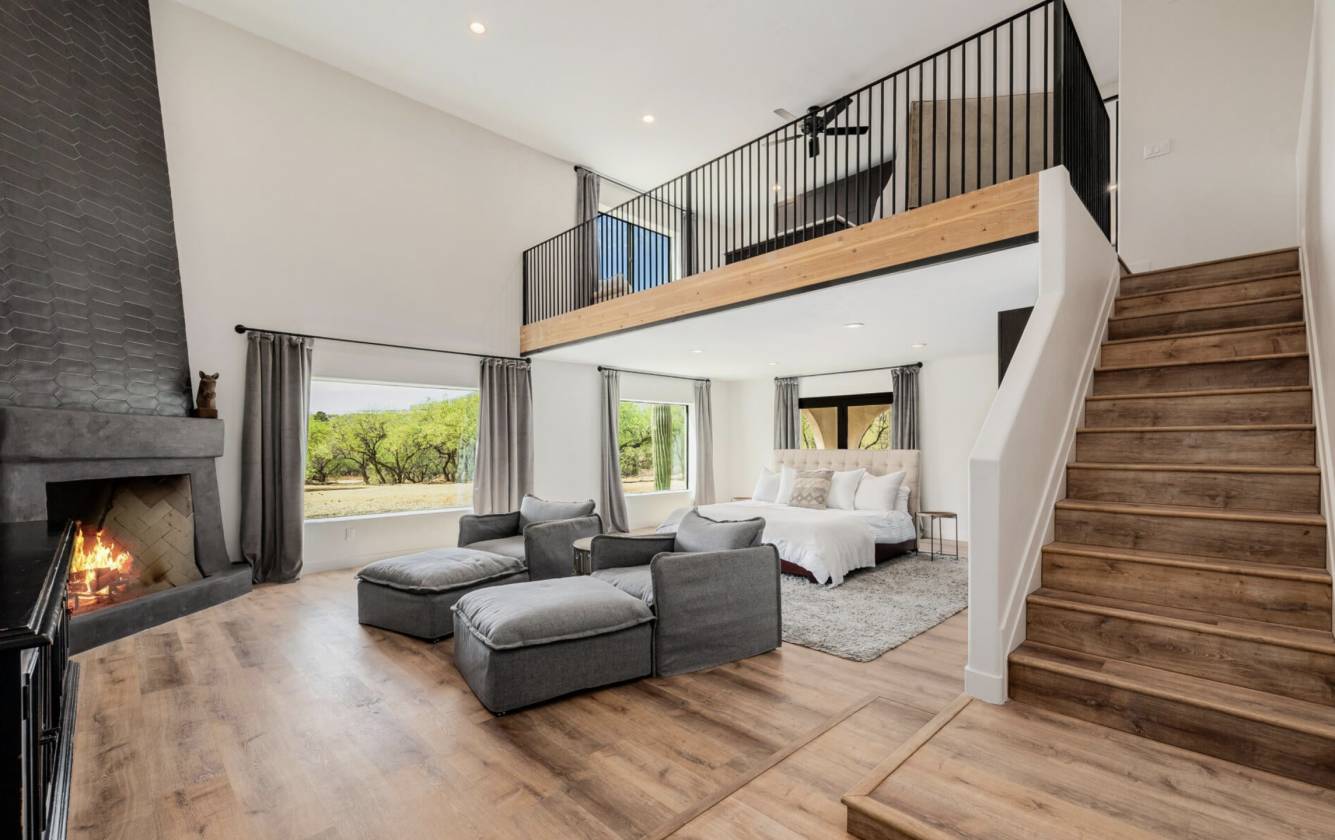 - Primary suite has a fireplace, French doors to the patio, a private balcony, a spa-inspired en-suite bath, in-suite laundry, and a loft !