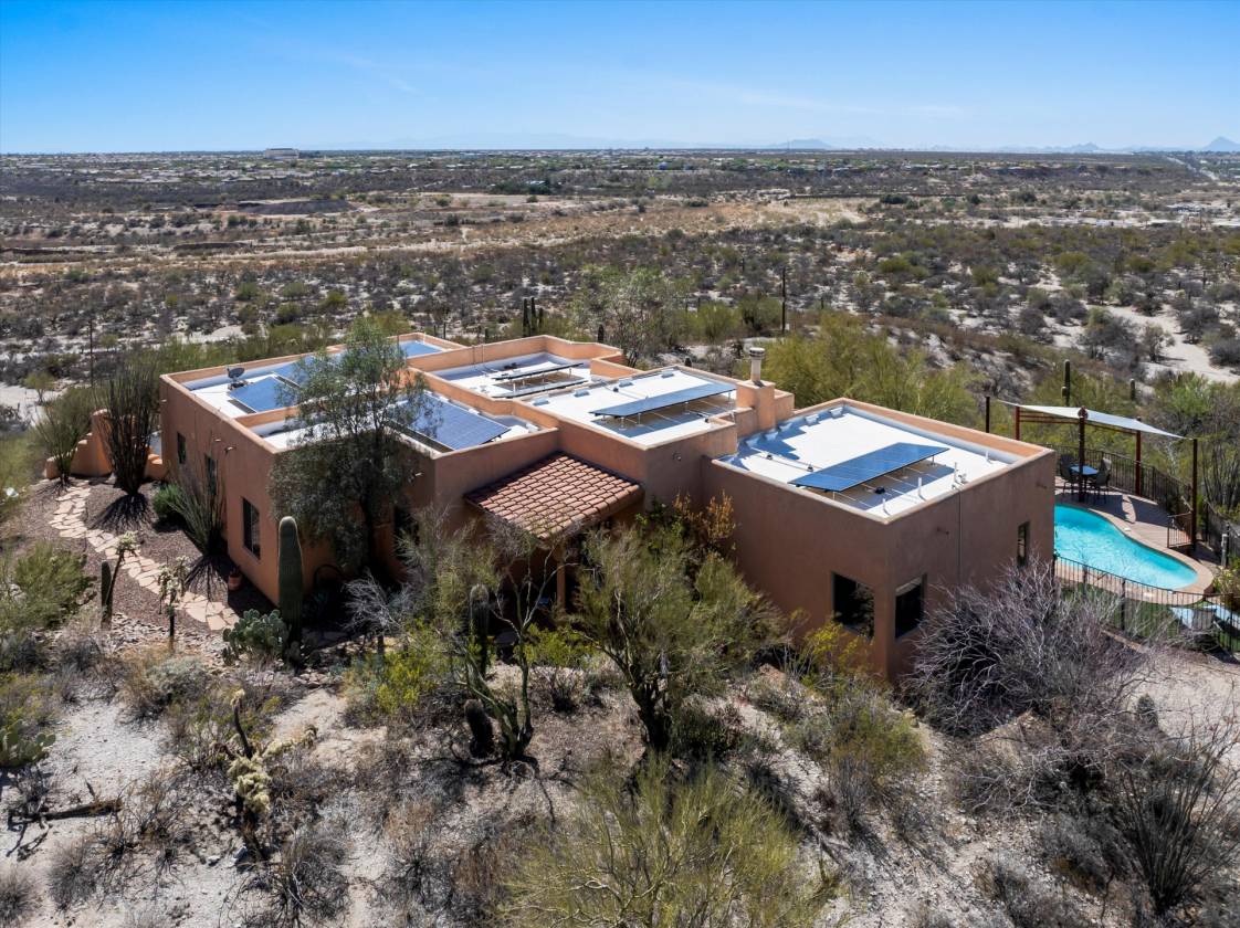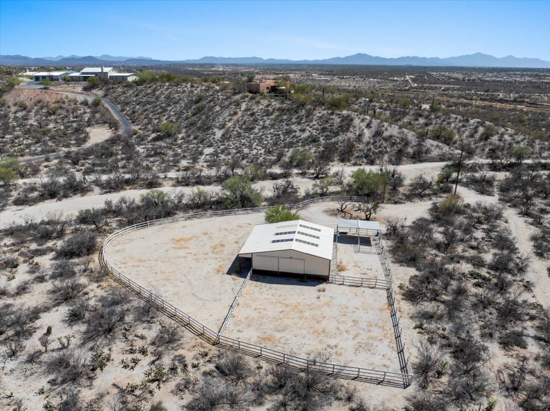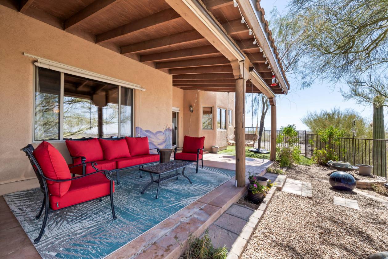 Welcome to your private desert retreat perched high above the valley floor, where tranquility meets breathtaking. Intentionally placed on a 6.93 acre hilltop lot, this home pairs privacy with unmatched panoramic views. Architectural details of the Southwest are evident in the wood beams, knotty alder doors, custom trim details and soaring ceilings; providing and abundance of natural light throughout. The primary suite is a true sanctuary, complete with a spacious ensuite, fireplace and private outdoor access. Enjoy the same captivating views along with endless sunsets and sunrises from any outdoor space or in the heated pool year round. Don't miss the rare opportunity to own this one of a kind property that includes horse coral and barn, a private well, and hiking trails footsteps away! This property is not located within an HOA!