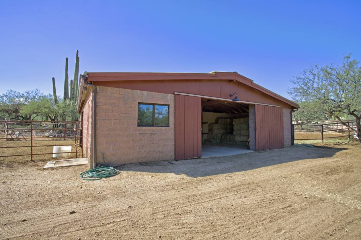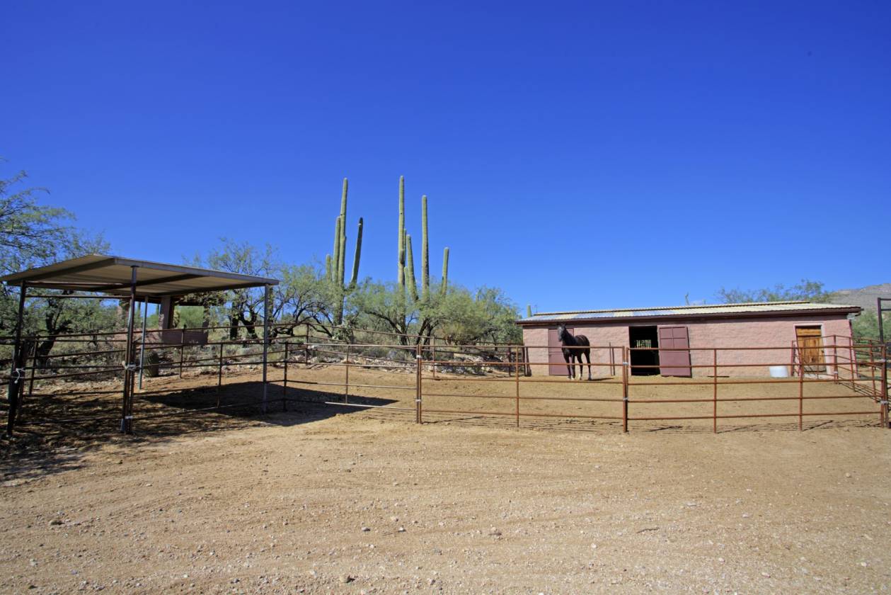 This architecturally striking burnt adobe ranch is surrounded by 4.74-acres of saguaro studded land and breathtaking views of the Rincon and Catalina Mountains. La Cebadilla Estates has its own private lake for fishing and scenic horse trails. Enjoy your equestrian oasis featuring over 1,650SF four-stall barn with wash stall, tack room, arena, round pen, paddock, and covered stall to satisfy all equestrian activities. Easily take your horse out the back gate onto the numerous horse trails with direct access to the Saguaro National Park East & Coronado National Forest.
