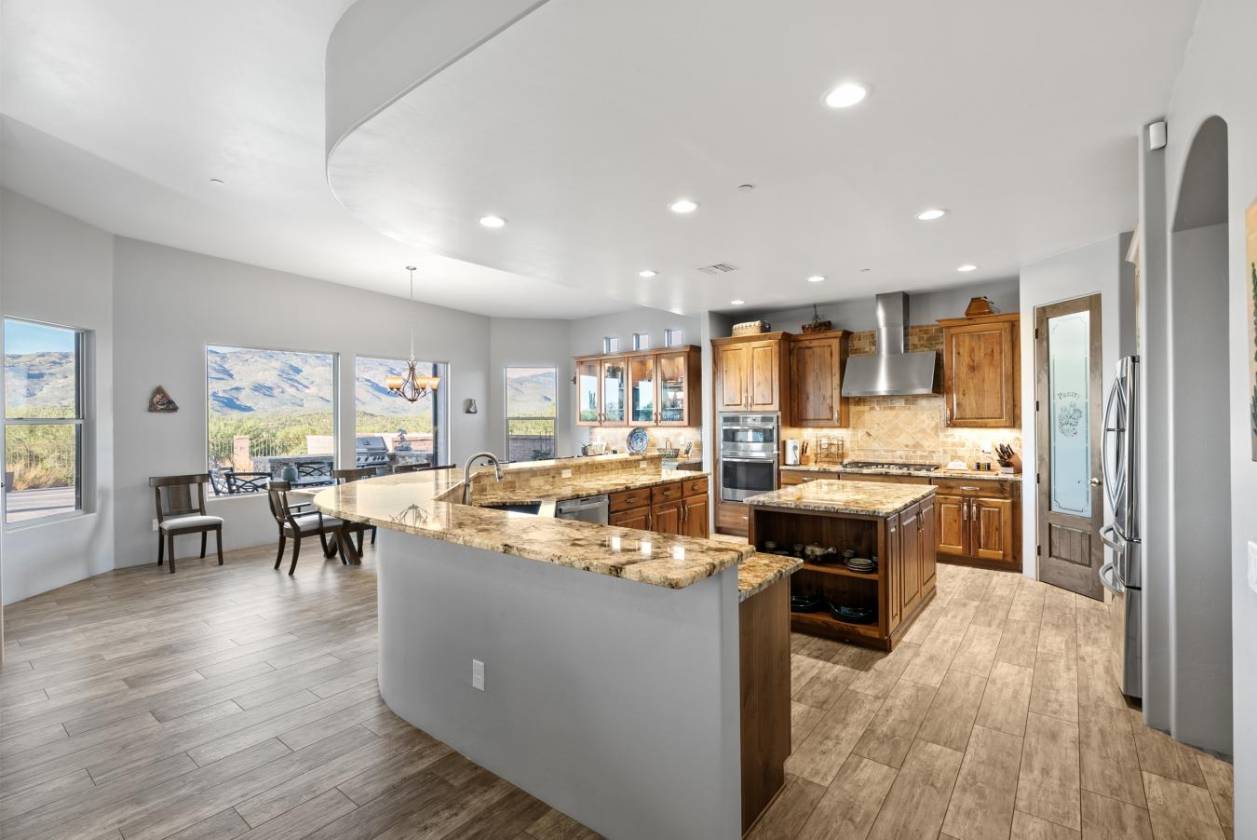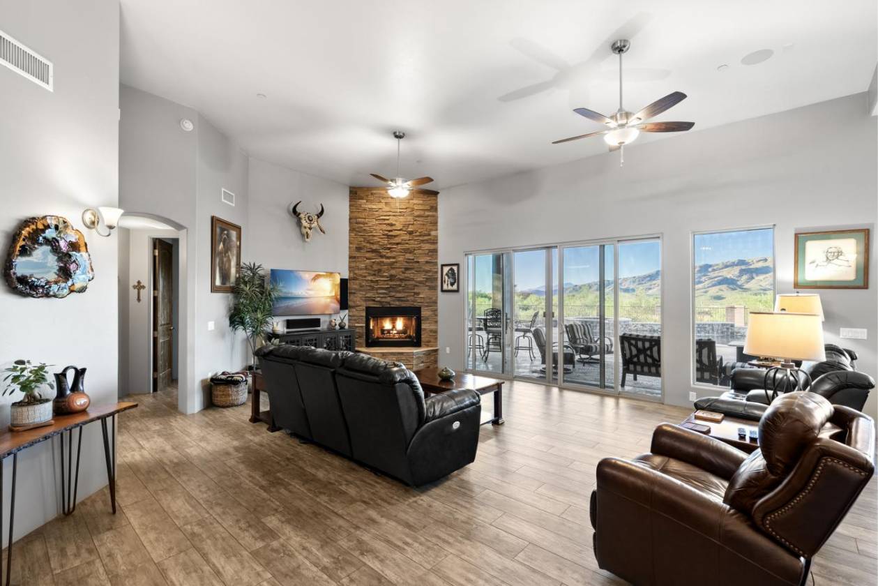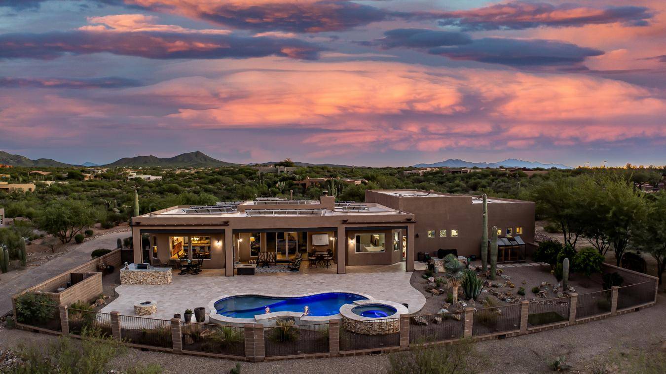 Experience true luxury in this Coyote Creek custom home featuring a heated saltwater pool and spa, travertine patio, and a full outdoor kitchen with dual-fuel BBQs, quartz counters, and fire pit. Inside, enjoy tile and natural stone finishes, granite counters, Monogram appliances, and surround sound in the living room, primary suite, and patio. The home includes a three-car garage with a fully integrated 2,000 sq ft climate-controlled shop and office. Paid solar, 400-amp service, and upgraded systems complete this energy-efficient desert retreat. *Inquire for full list of features.* Welcome to 15070 E Triangle Z Ranch Place, a showcase of luxury, efficiency, and craftsmanship in the gated community of Coyote Creek in Vail, Arizona. This 2019-built custom home offers approximately 2,691 square feet of living space on a 1.67-acre lot, blending natural beauty with modern design. It stands among the finest properties in Southern Arizona, designed for those who value both elegance and purpose. The home welcomes you with a grand double-door entry and open-concept layout that connects indoor and outdoor living. Tile floors accented with natural stone finishes flow throughout the main areas, while expansive windows frame sweeping desert and mountain views. The great room features a gas fireplace and a built-in surround sound system that extends to the primary suite and covered patio, creating a seamless entertainment experience throughout. The kitchen is the heart of the home and a true chef's space. Solid wood cabinetry, granite countertops, and professional-grade Monogram appliances make this space both functional and beautiful. The 16-foot breakfast bar with soft-close drawers, spice racks, and pull-out storage adds convenience, while the large refrigerator remains with the home. The open layout connects to the dining area and patio for effortless entertaining. The primary suite offers resort-level comfort with remote-controlled shades, integrated audio, and a serene view of the pool and backyard. The en suite bath features dual vanities, a seated makeup area, a linen closet, and a custom snail-style walk-in shower designed with natural stone. Every element speaks to the home's focus on quality materials and thoughtful design. Additional bedrooms include a full guest room with a tile-surround bath and a private guest suite with a half bath. A separate den with French doors provides flexible use as a home office, media room, or library. The outdoor spaces are designed for both relaxation and entertainment. The heated saltwater pool and spa, completed in 2025, are surrounded by travertine decking, while the covered patio includes fans, an outdoor TV, and a complete sound system. The outdoor kitchen features both gas and Santa Maria-style wood BBQs, a built-in oven, quartz countertops, and abundant storage. A custom gas fire pit, fruit orchard, and mature desert landscaping complete the experience. The lot is partially fenced and designed to manage water flow efficiently, combining privacy with function. A defining feature of this home is the integrated three-car garage and 2,000-square-foot climate-controlled shop built within the home's structure. This exceptional space includes 200-amp service, multiple 220V outlets, extensive lighting, air systems, and four mini-split units. A private office with its own bathroom, ceiling fan, and TV wiring makes it ideal for home-based business, hobby work, or RV storage. The shop's oversized roll-up access and automatic locking system make it as secure as it is functional. The property's systems are designed for performance and peace of mind. Paid solar with 46 panels dramatically reduces utility costs. A 400-amp electrical panel supports high-demand equipment and appliances. The home features two HVAC systems, two furnaces, a new water heater installed in 2025, a water softener, and a completely upgraded septic system with dual leach lines and a new pump system valued at $20,000. The roof was professionally sealed and the exterior received a three-coat paint finish in 2024, ensuring the home is move-in ready for years to come. Located within the award-winning Vail School District, Coyote Creek is known for its wide-open desert views, equestrian amenities, and miles of scenic trails. The community's gated entry provides privacy and security, while its proximity to Tucson offers convenience without compromise. This property combines the independence of desert ranch living with the refinement of modern luxury. Whether you are an outdoor enthusiast, collector, or entrepreneur, this home offers something rare: beauty, function, and self-sufficiency all in one. It is powered by solar energy, built for longevity, and designed for living fully in the Arizona desert. 15070 E Triangle Z Ranch Place is more than a residence. It is a statement of craftsmanship, comfort, and intelligent design. Every finish, system, and feature has been selected for quality and performance.